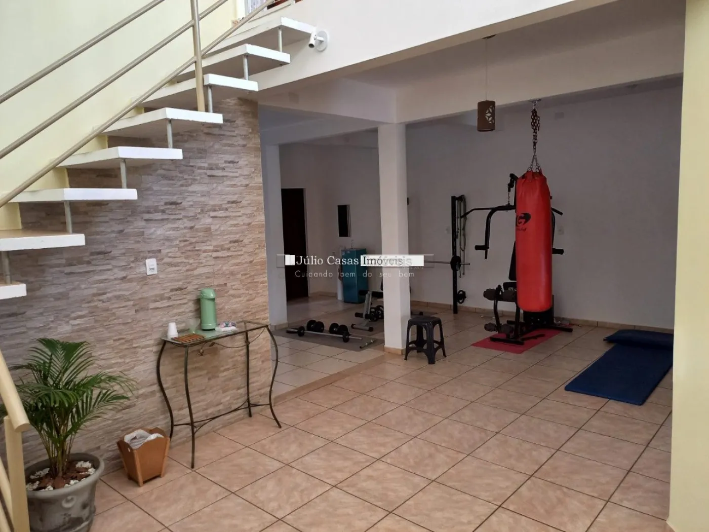 Sobrado em bairro na Zona oeste da Cidade, entrada portão automático, garagem para 02 veículos e uma motocicleta, porta principal acesso a academia, 01 dormitório, um banheiro, estúdio musical e área de serviço, Primeiro pavimento escada de acesso, 01 dormitório sendo suíte com closet, sala de tv, sala de leitura e 01 escritório. Segundo pavimento cozinha, despensa, 01 banheiro, mais um lavabo externo, churrasqueira com fogão à lenha, sala de jantar e sala de jogos. Bairro com total infra estrutura.