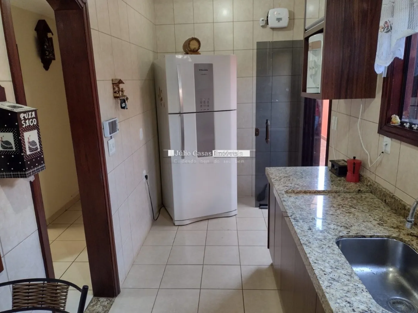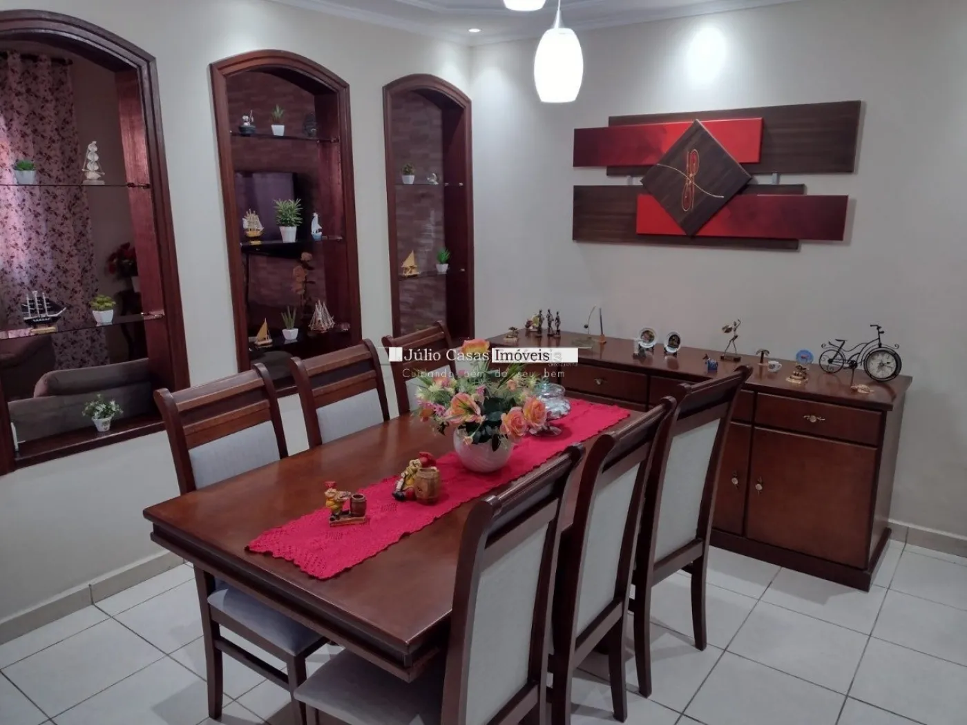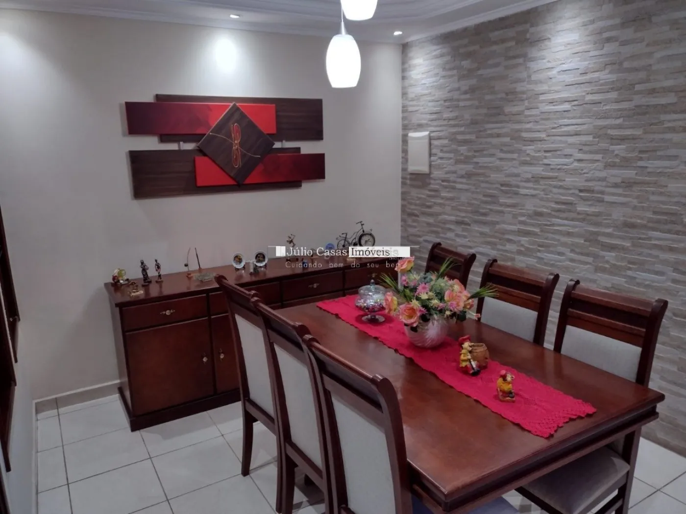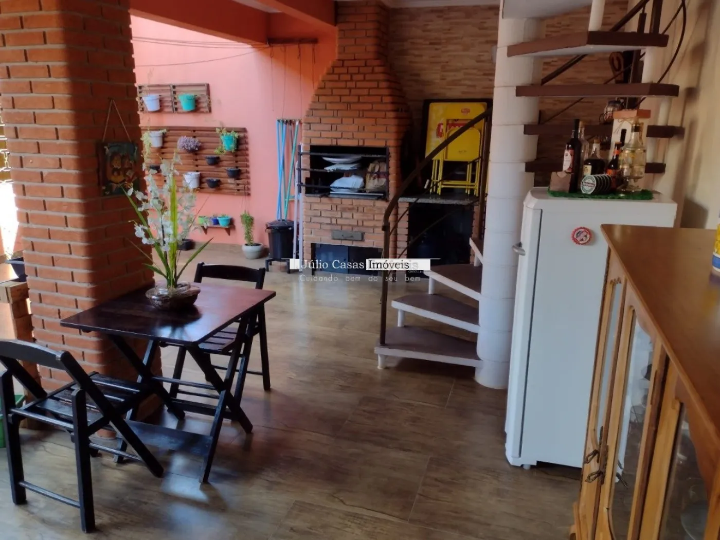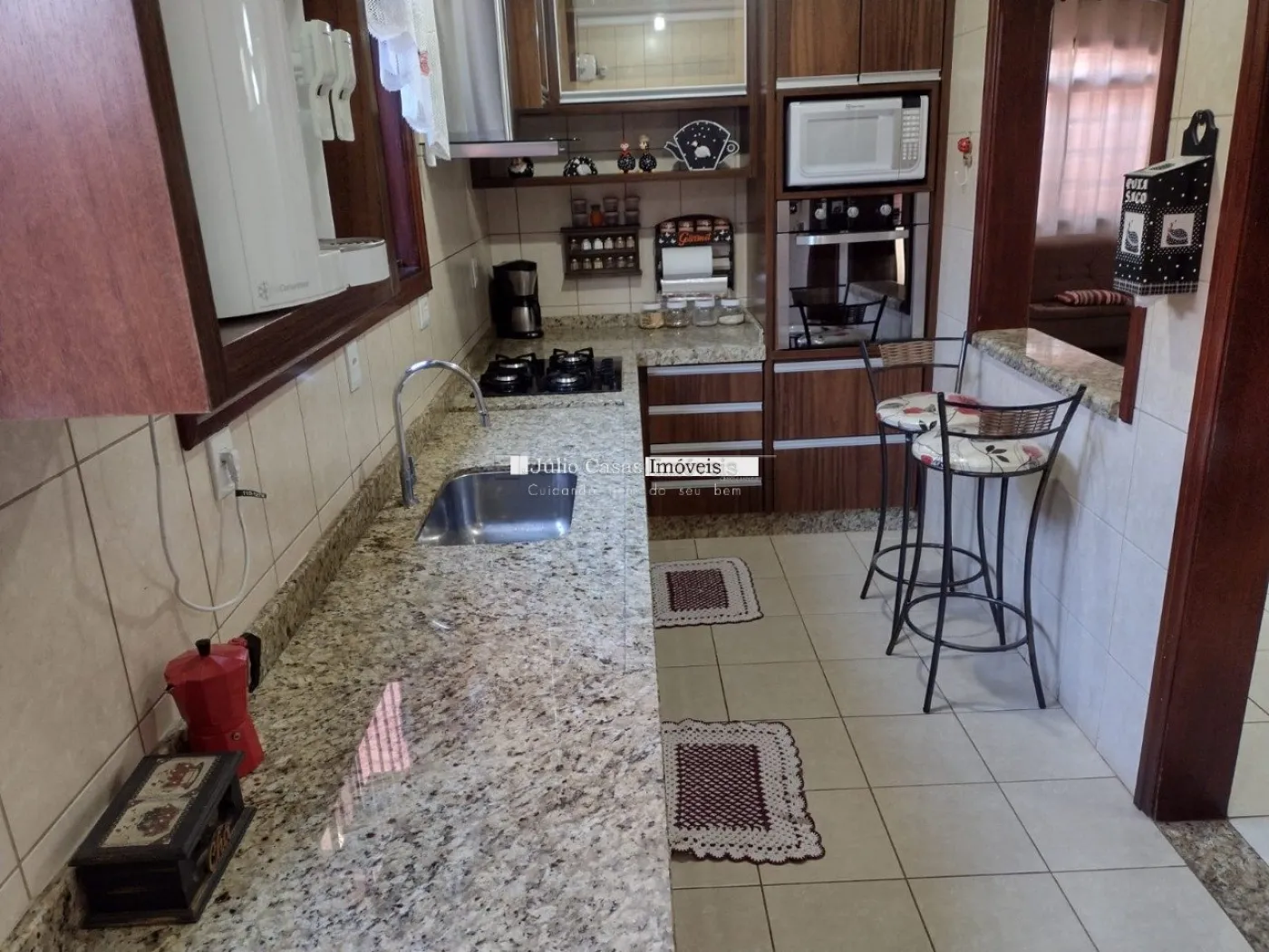 Composta por sala de estar e sala de jantar integradas por vãos revestidos por batentes de madeira compondo um ambiente harmonioso e elegante, com piso em cerâmica teto com sanca e luminárias de LED embutidas. Cozinha com paredes revestidas de azulejo, rica em modulados, balcão em granito São Gabriel, cooktop, forno à gás e micro-ondas embutidos. Dois amplos dormitórios com armários modulados, janelas de madeira e ar condicionado. Nos fundos belíssima área gourmet com churrasqueira, balcão de apoio, banheiro e uma prática lavanderia. No andar superior um quarto, um banheiro e uma despensa. Garagem coberta para dois veículos. Em localização privilegiada, próxima a comércios em geral como: supermercados, centro comercial, restaurantes, lanchonetes entre outros, com fácil acesso às principais avenidas que ligam ao centro da cidade e à rodovia Raposo Tavares