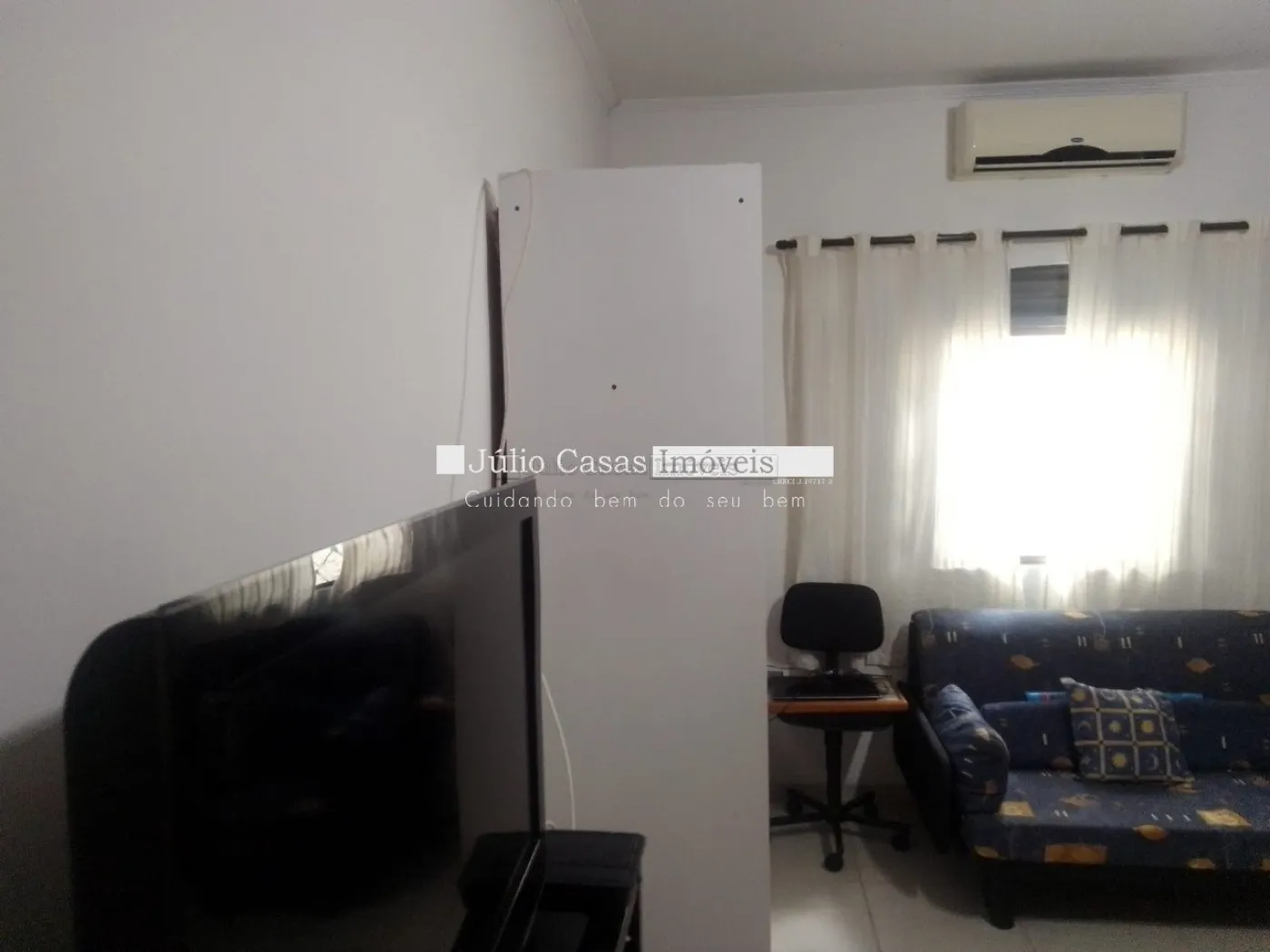 Dois dormitórios sendo uma suíte, com piso frio ar condicionado e com moldura em gesso.