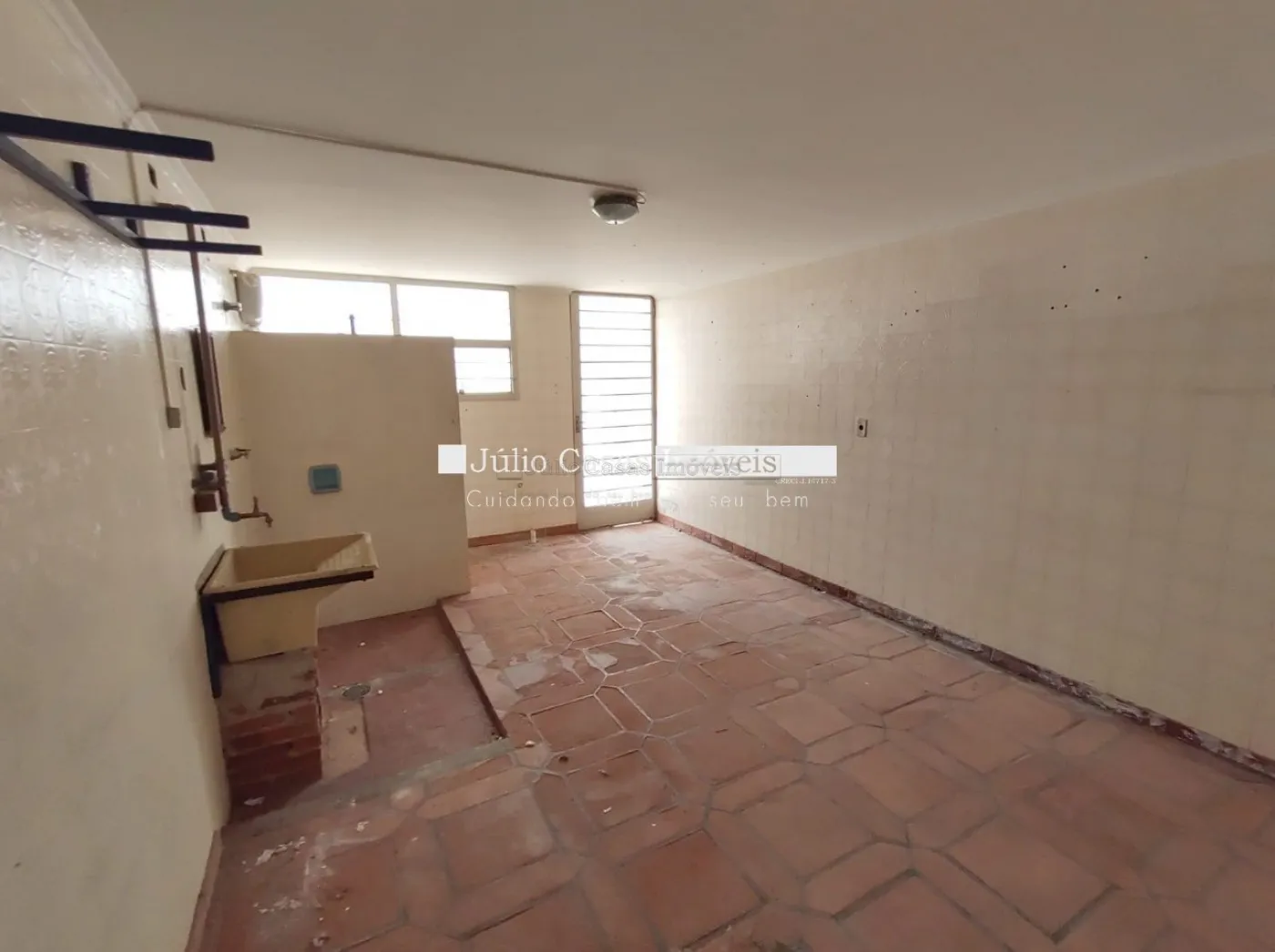 1 cozinha ampla, com piso em porcelanato cinza e paredes revestidas com azulejo branco até a altura do teto, armários e gabinetes em madeira branca, bancadas em granito preto São Gabriel, Exaustor e fogão de 5 bocas de gaveta instalados, janelas em alumínio preto,1 área de serviços com paredes revestidas com tijolo a vista, 1 tanque com cuba dupla em cerâmica, varais de teto instalados.
