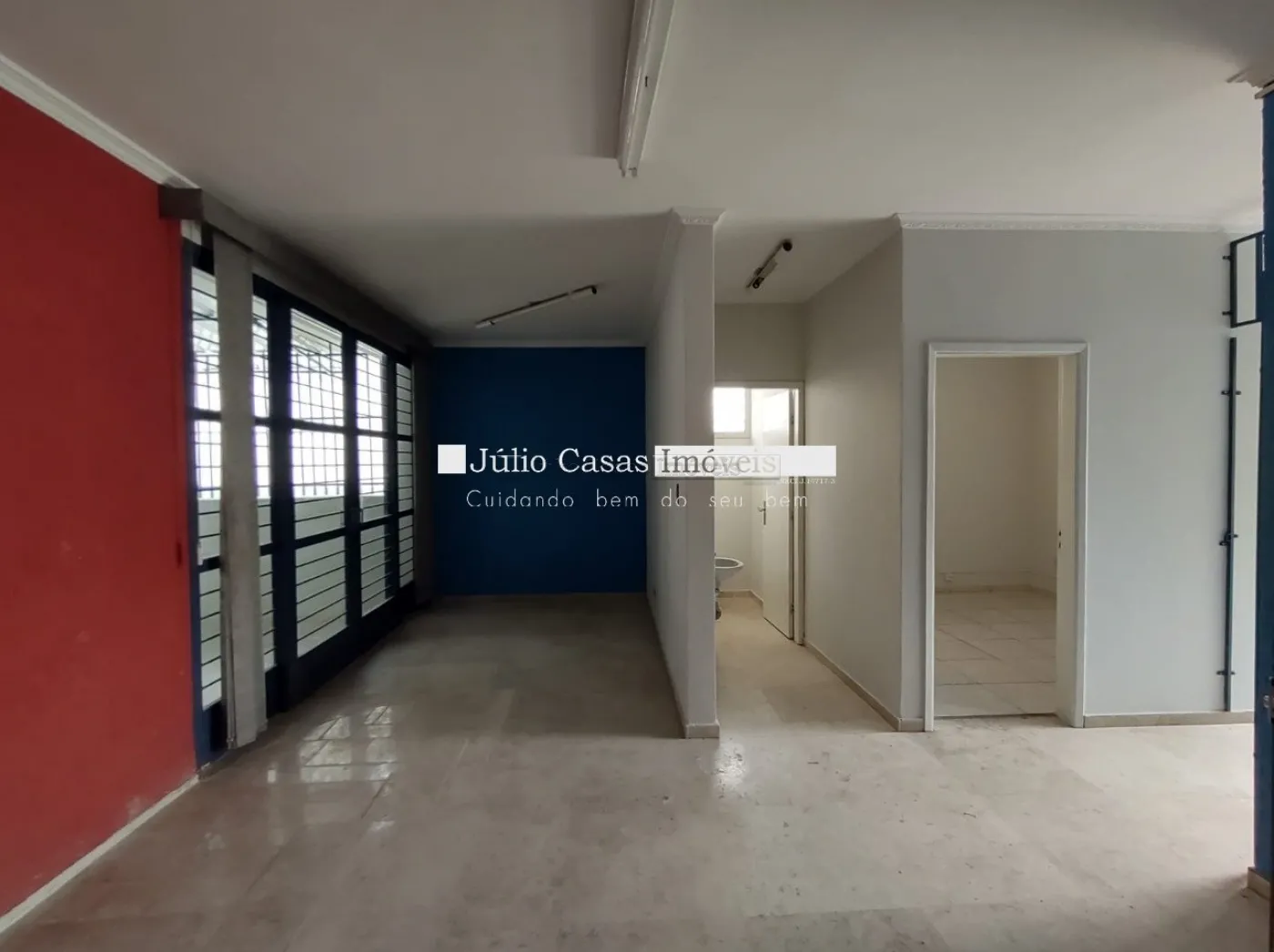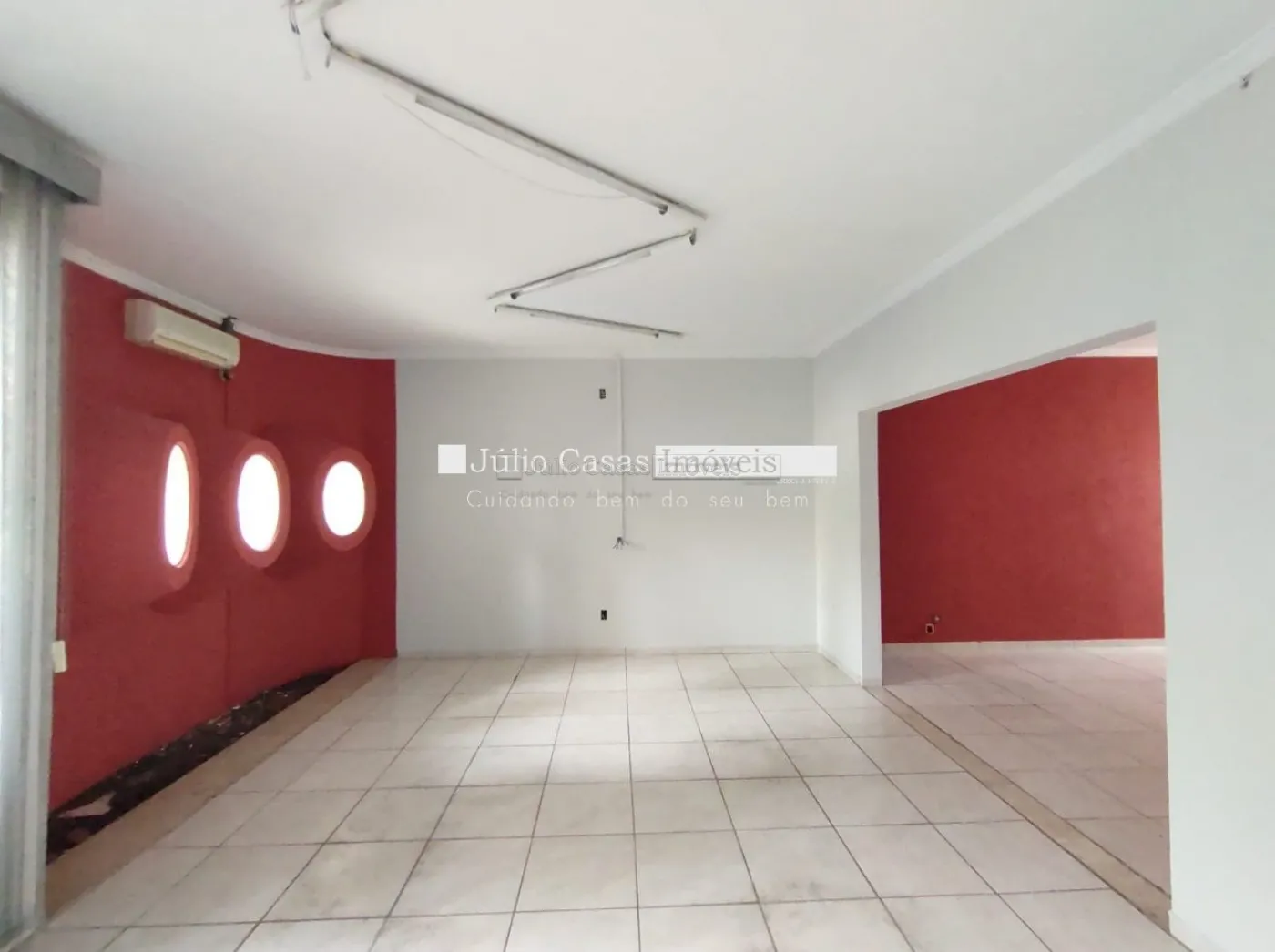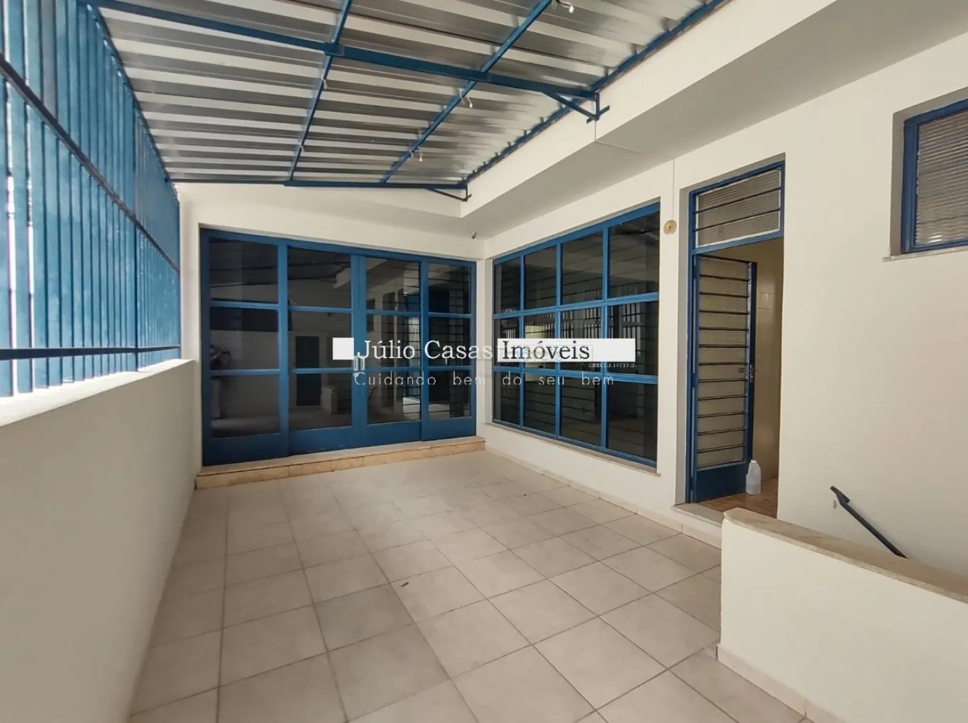 1 salão comercial com 210 m2 de piso, revestido em porcelanato, paredes acabadas com massa corrida, lâmpadas fluorescentes,2 banheiros com piso em porcelanato, bancadas em granito Granito Amêndoa Light, toalheiros e saboneteiras instalados, revestimento de parede tipo travertino até a altura do teto, louças no tom de bege, portas em madeira de embutia envernizadas, espelhos instalados, teto em gesso com molduras, um pequeno quintal com piso em cerâmica com 1 tanque, amplas janelas em alumínio preto com pintura eletrostática , porta frontal em blindex fumê em toda a fachada, um estacionamento coberto para 2 automóveis pequenos, com piso em pedra Miracema rosa anti derrapante, uma porta com roldanas superiores em aço conferindo total segurança ao imóvel.