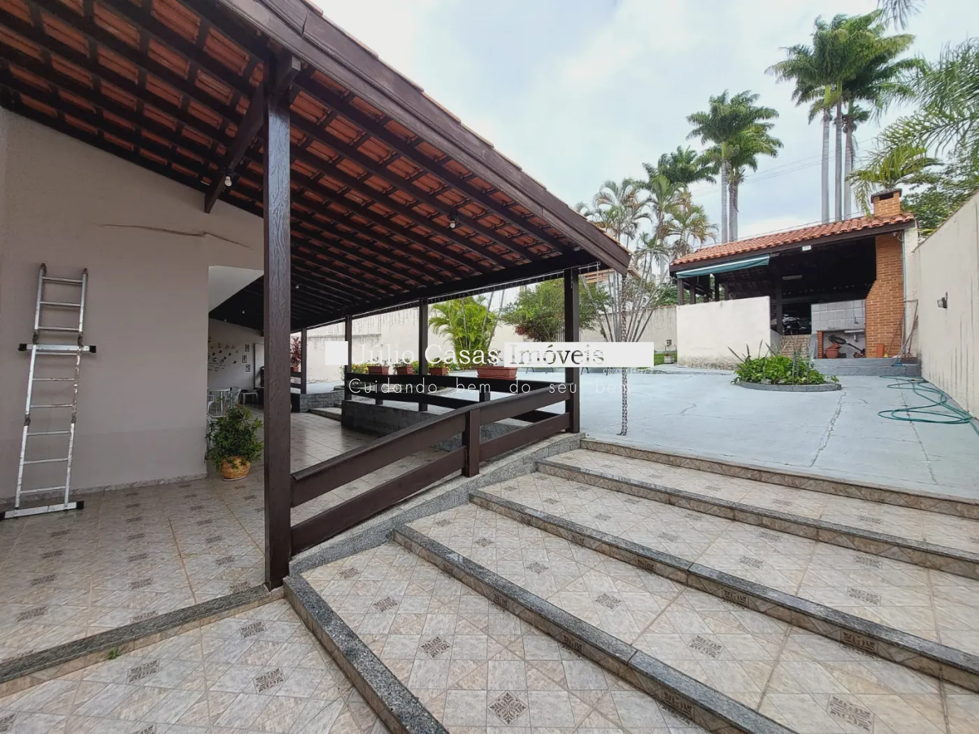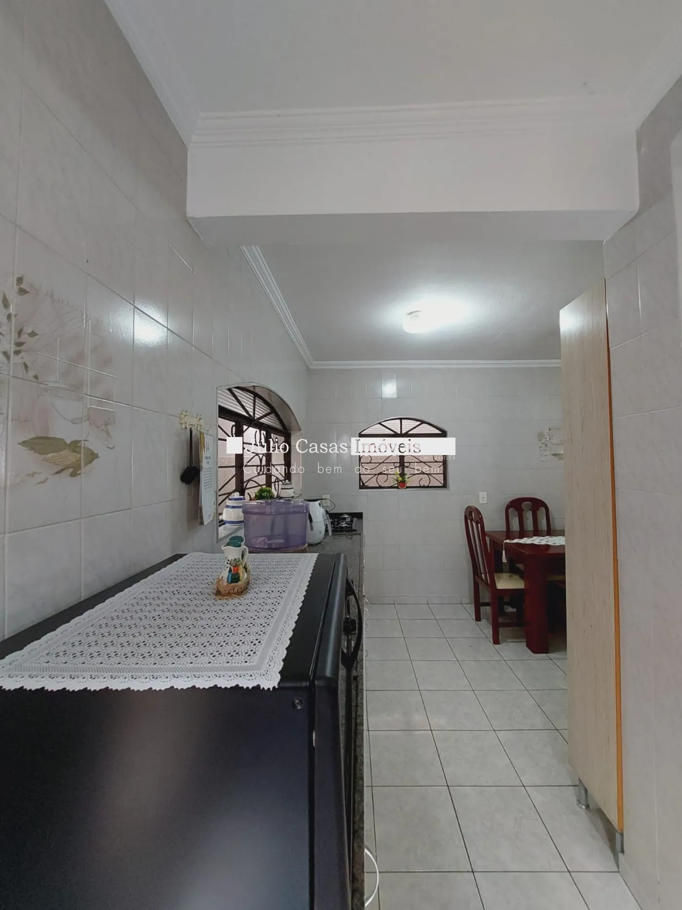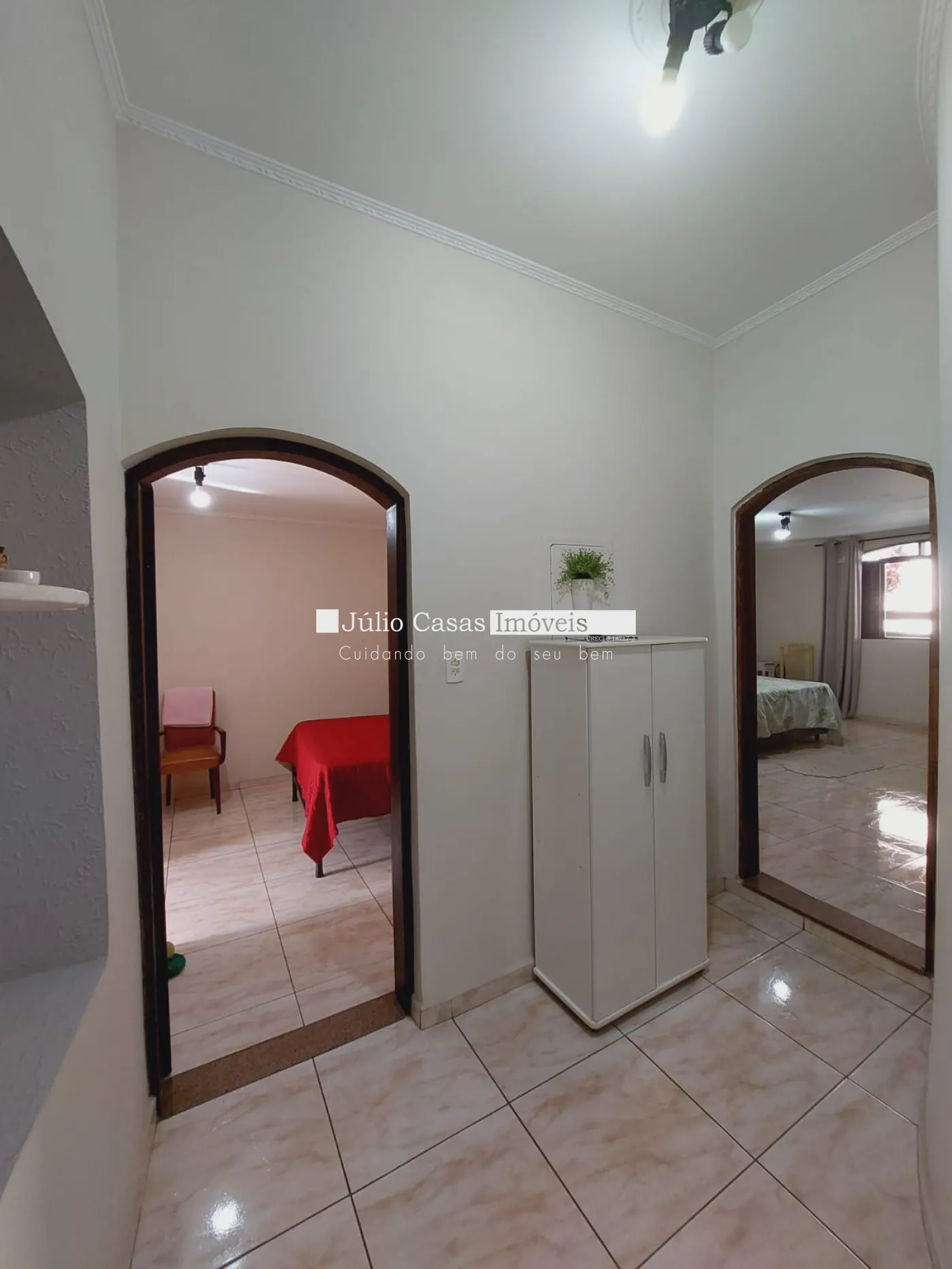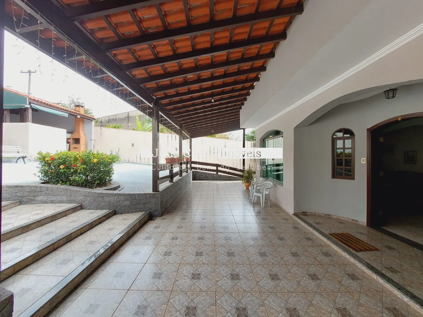 Casa com sala de estar, sala de jantar, sala de tv, 3 dormitórios sendo 1 suíte, 1 wc social, escritório, 2 cozinhas, área de serviço, quintal grande com jardim, sala usada como salão de cabeleireiro, garagem para 2 veículos cobertos, e 5 veículos descobertos.