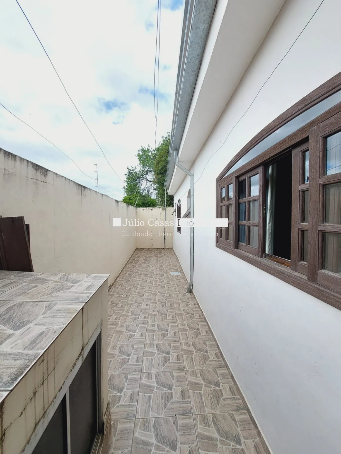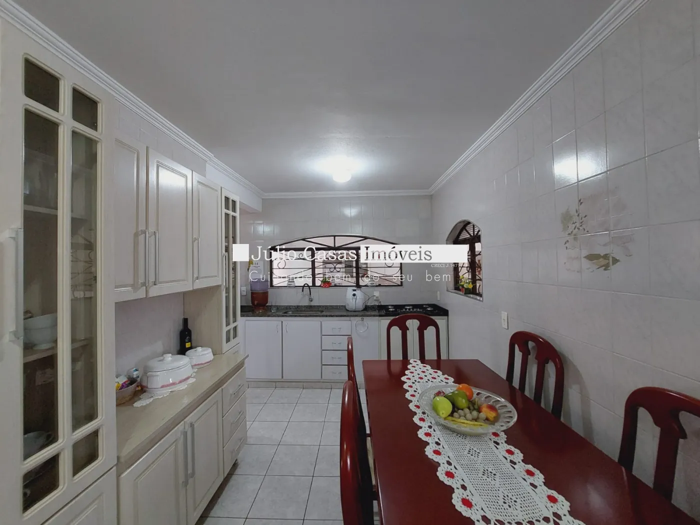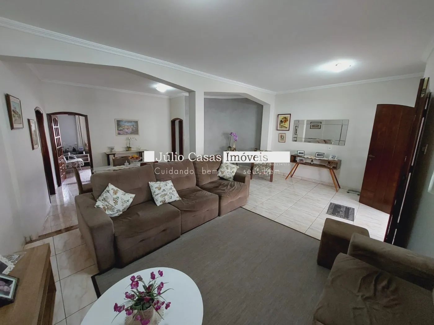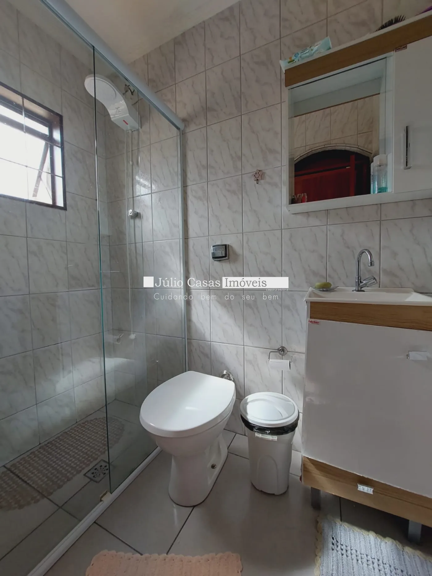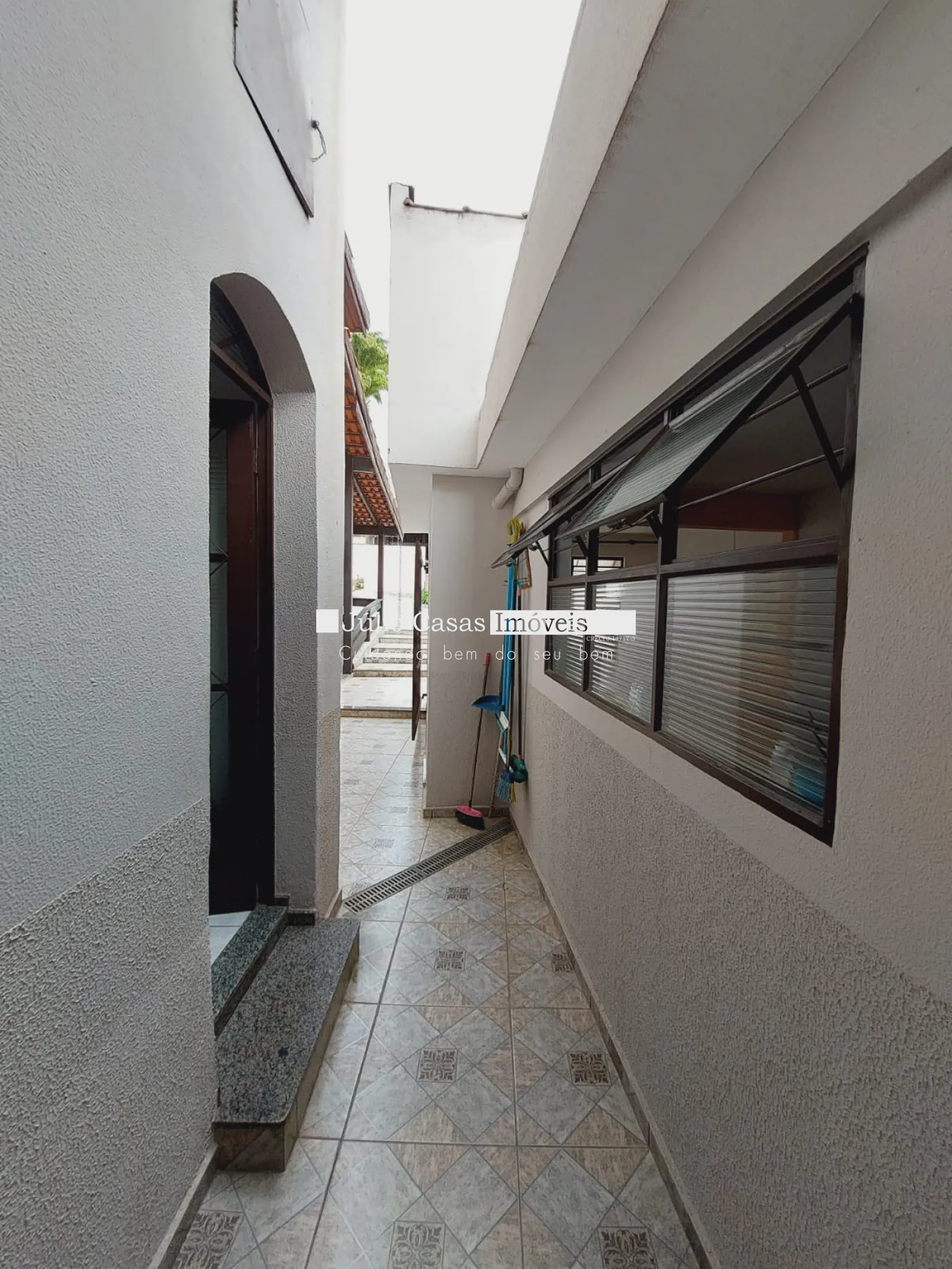 Casa com sala de estar, sala de jantar, sala de tv, 3 dormitórios sendo 1 suíte, 1 wc social, escritório, 2 cozinhas, área de serviço, quintal grande com jardim, sala usada como salão de cabeleireiro, garagem para 2 veículos cobertos, e 5 veículos descobertos.