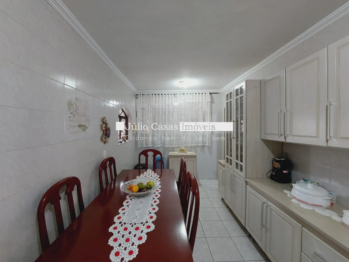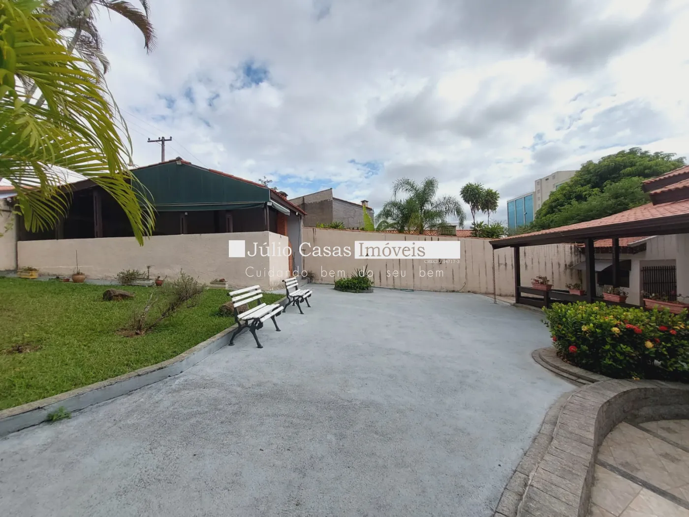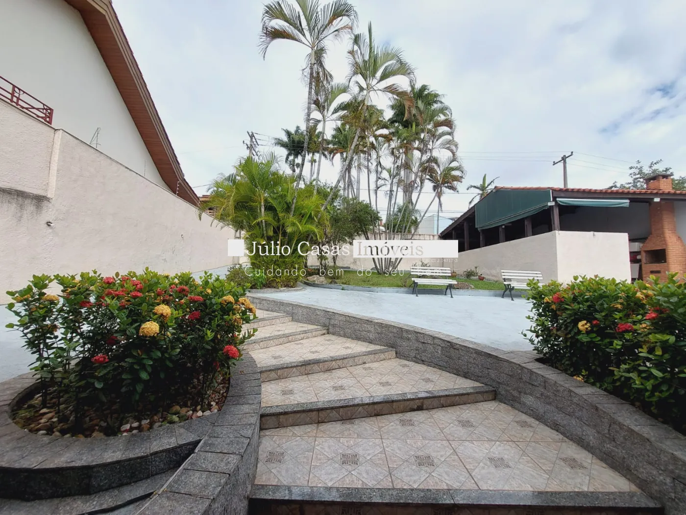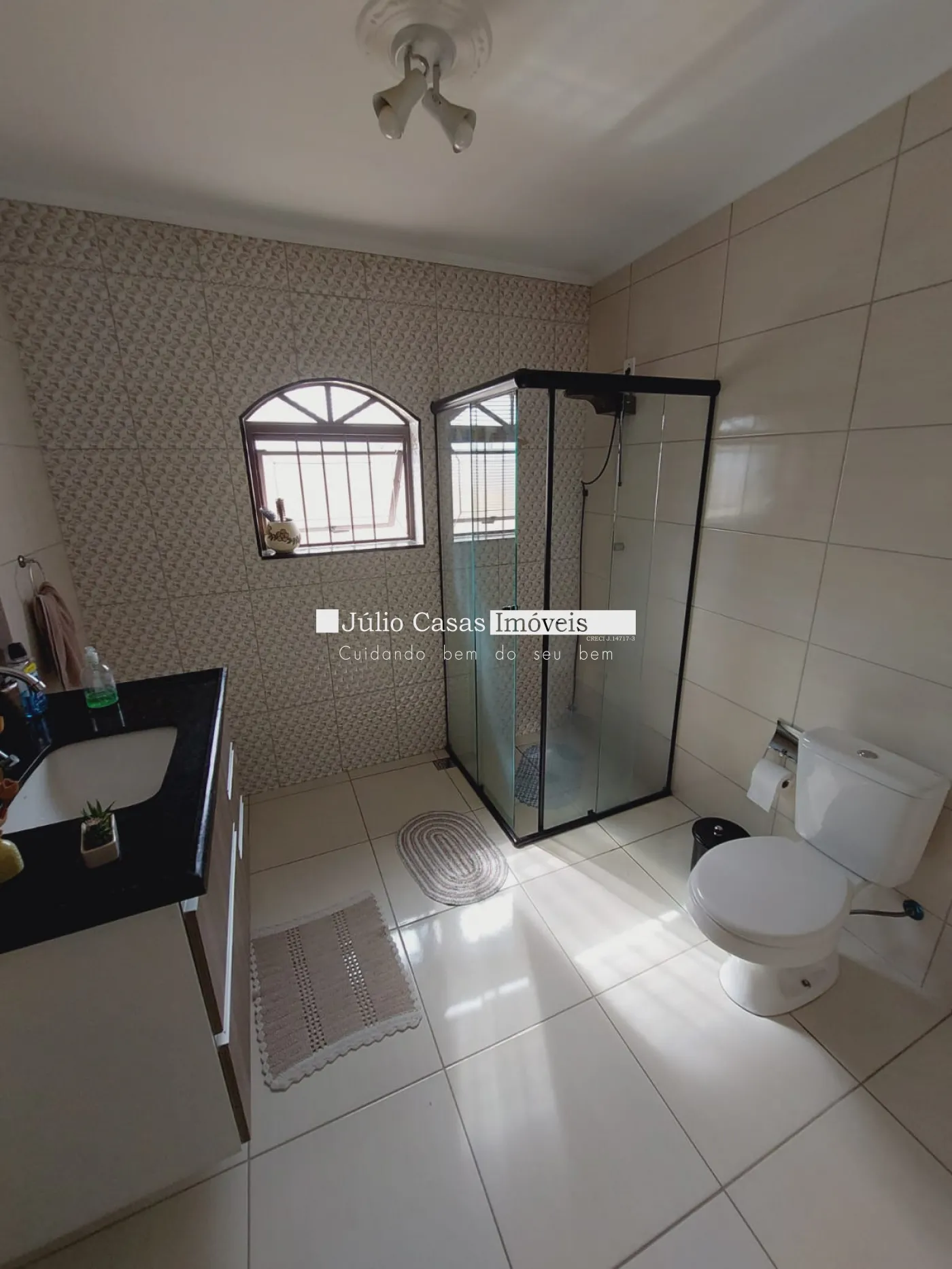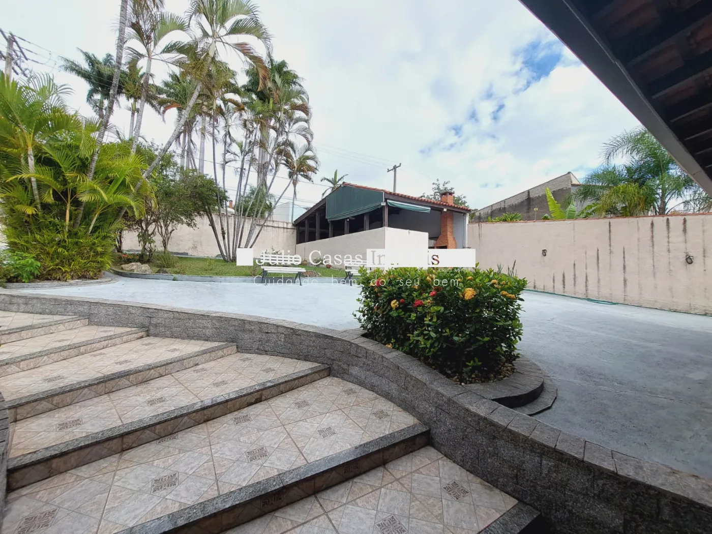 Casa com sala de estar, sala de jantar, sala de tv, 3 dormitórios sendo 1 suíte, 1 wc social, escritório, 2 cozinhas, área de serviço, quintal grande com jardim, sala usada como salão de cabeleireiro, garagem para 2 veículos cobertos, e 5 veículos descobertos.