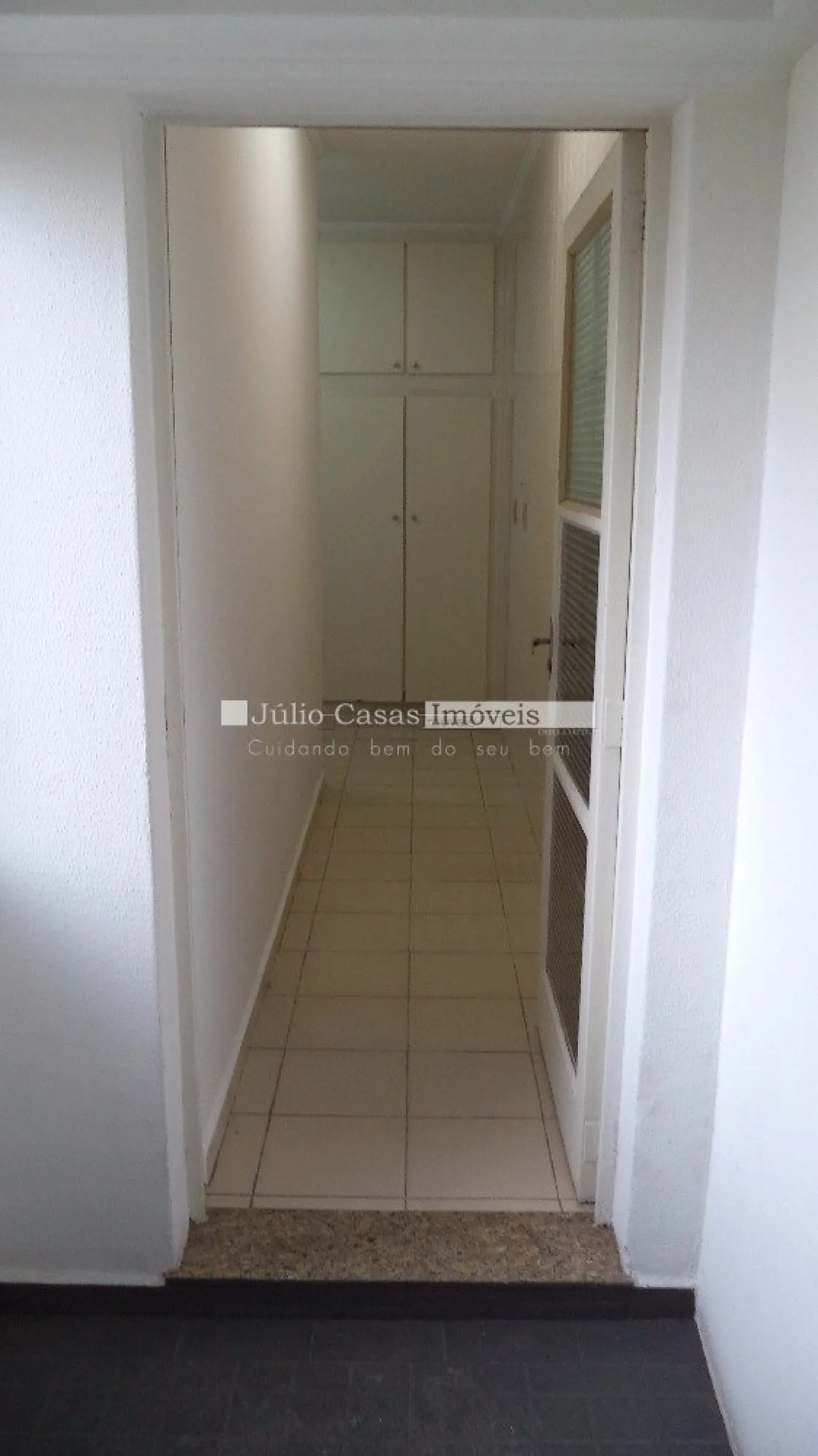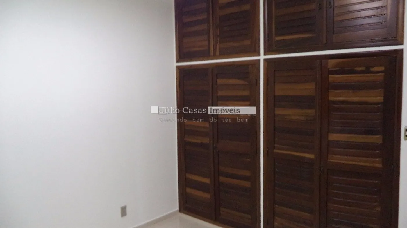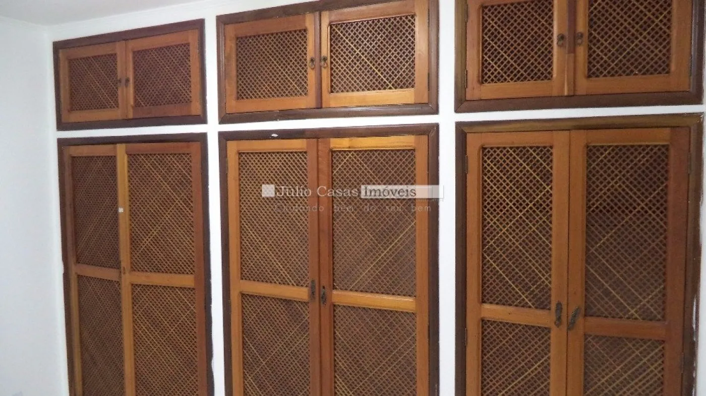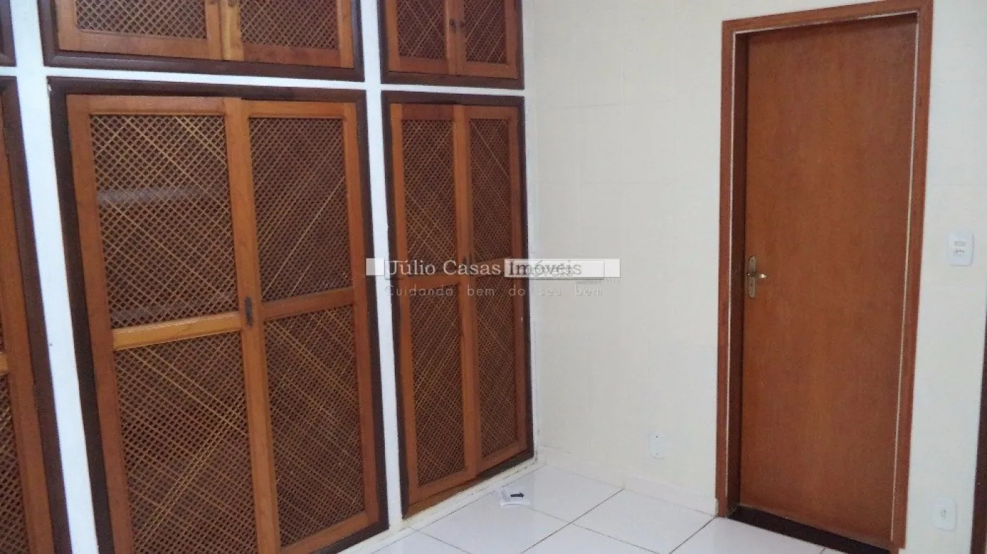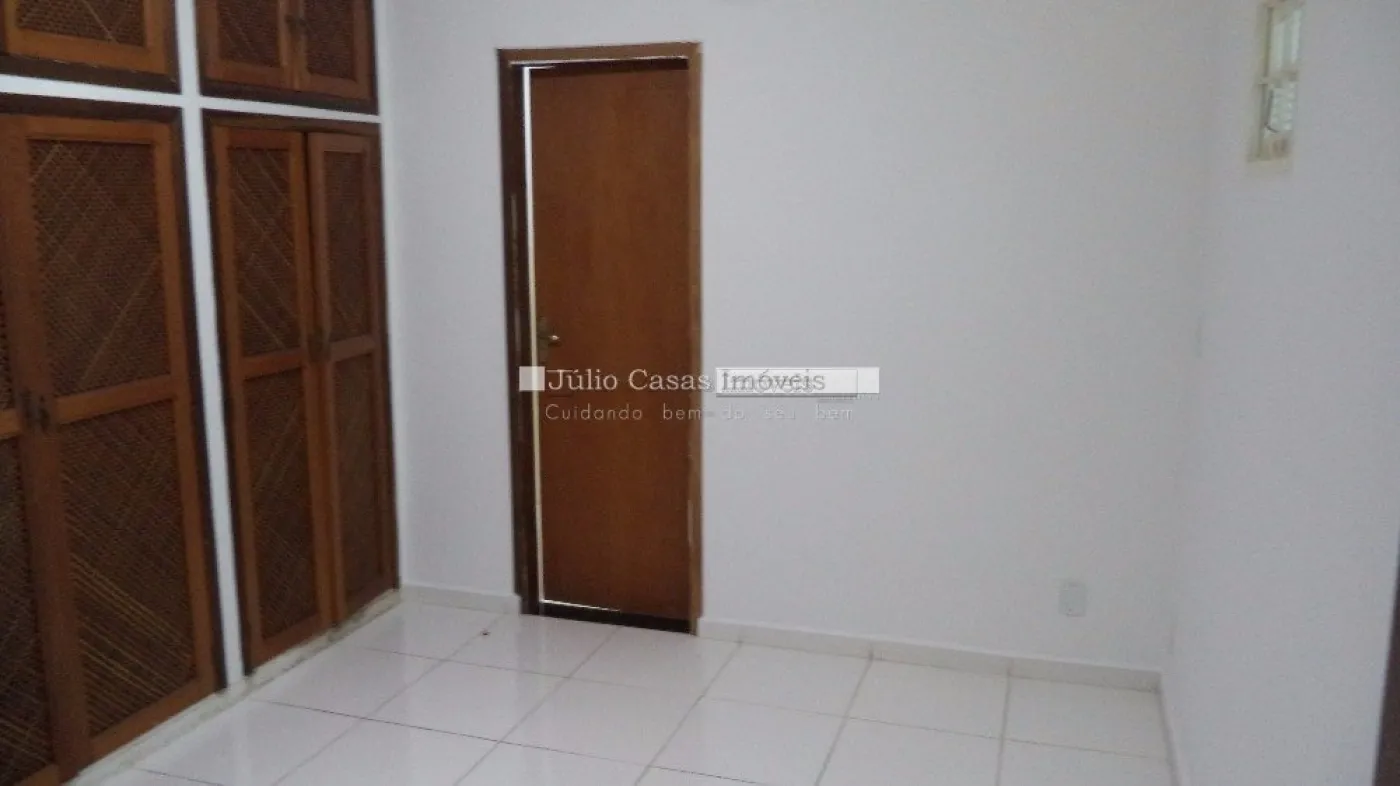 Os ambientes são revestidos com porcelanato nas recepções e em duas salas do piso superior, enquanto os demais ambientes possuem piso cerâmico. A cozinha, a copa e os banheiros são revestidos com azulejo até o teto.