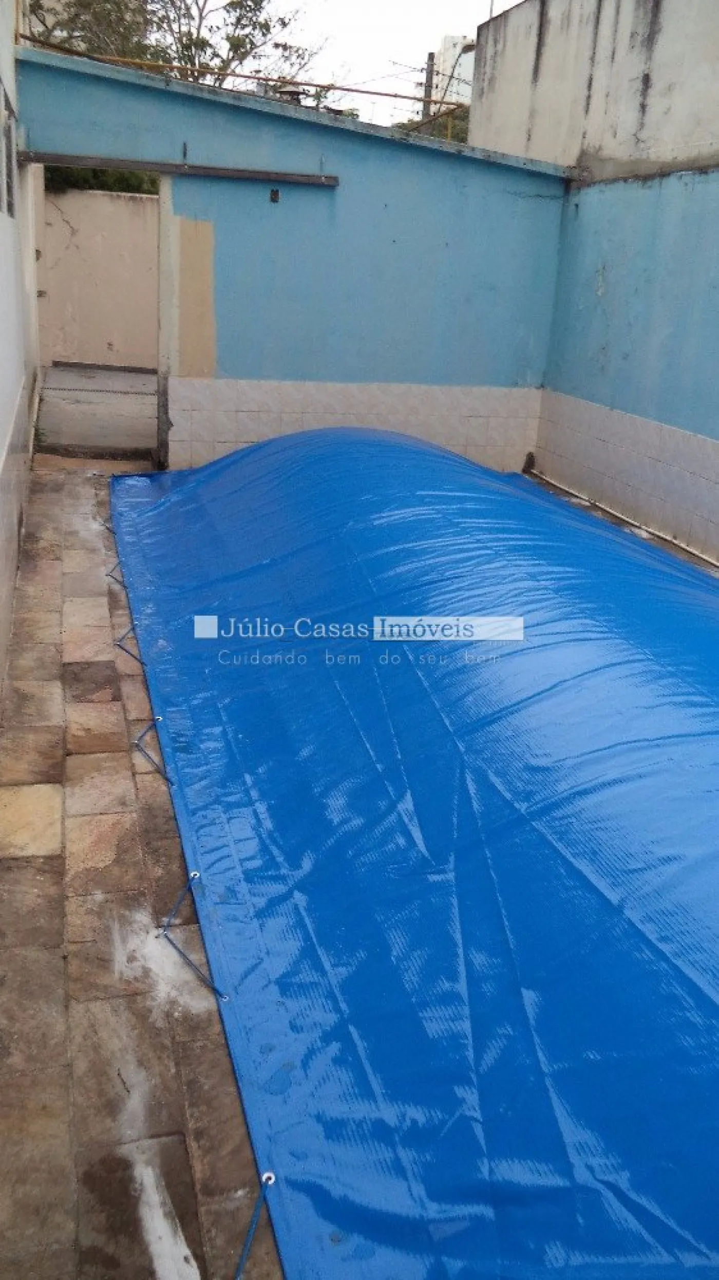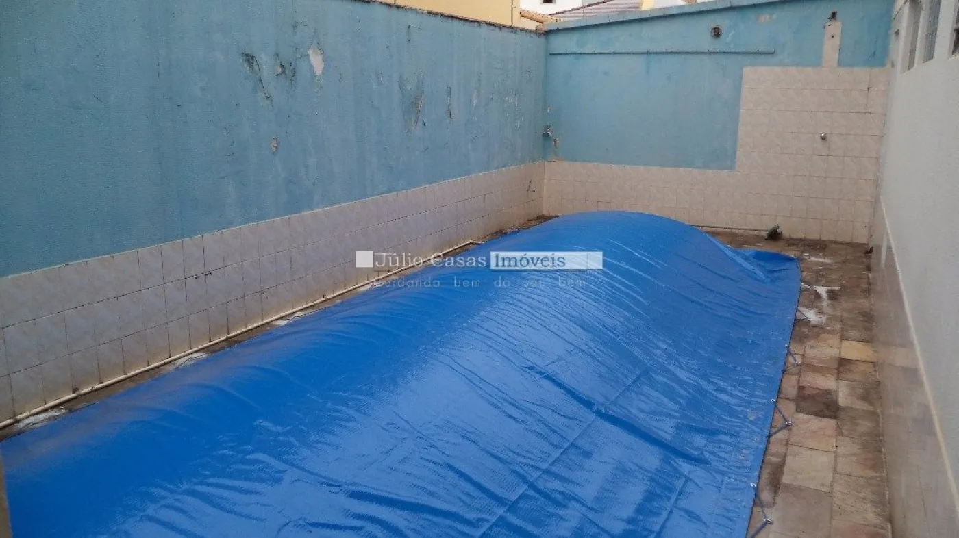 A garagem acomoda nove carros, sendo quatro vagas cobertas. A área externa inclui uma piscina e churrasqueira, proporcionando espaços de lazer e convivência.