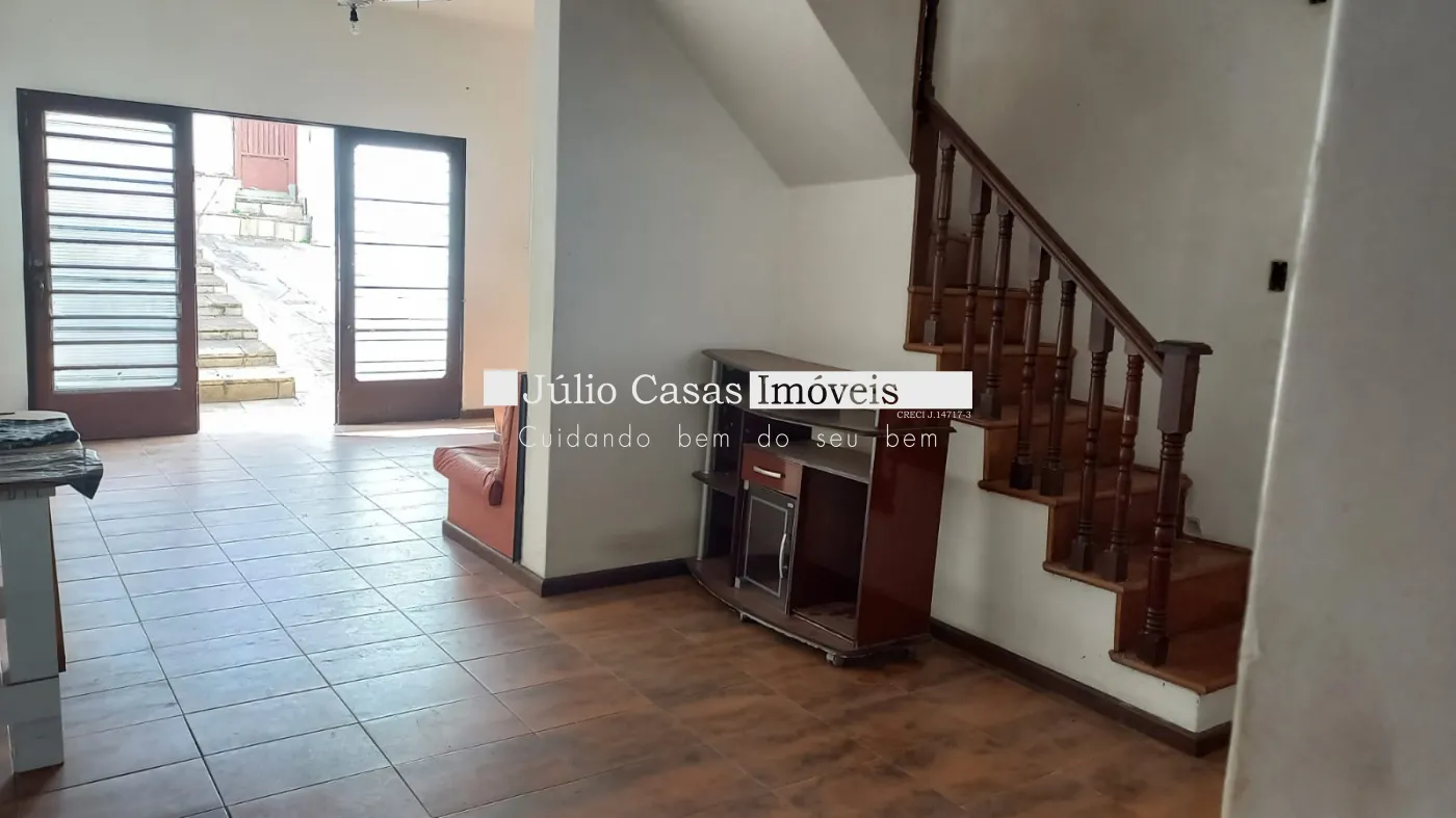 A casa é composta por duas unidades: Casa 1 (piso inferior) com sala, cozinha, 03 dormitórios e banheiro social, e Casa 2 (piso superior) com sala, escritório, cozinha, 03 quartos e banheiro. As casas têm acesso uma à outra, oferecendo flexibilidade para uso.