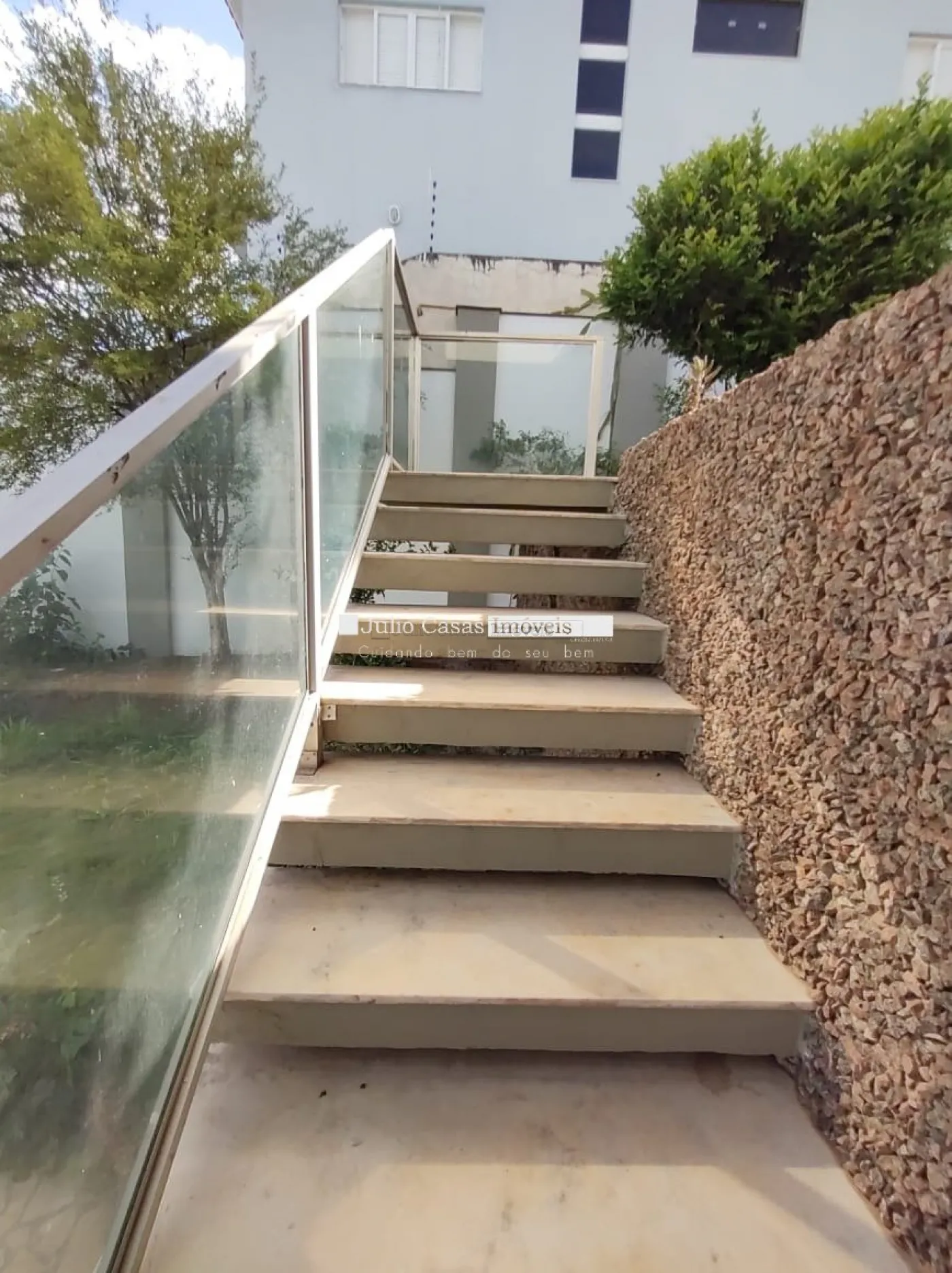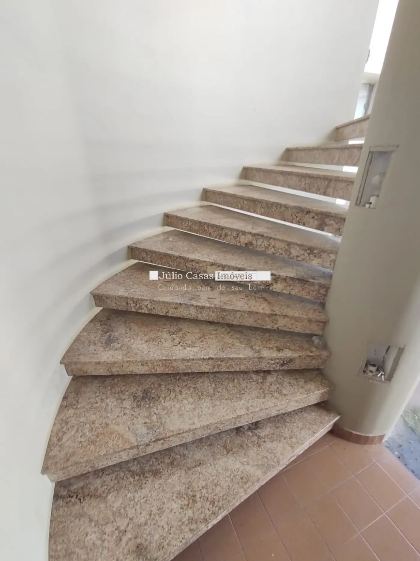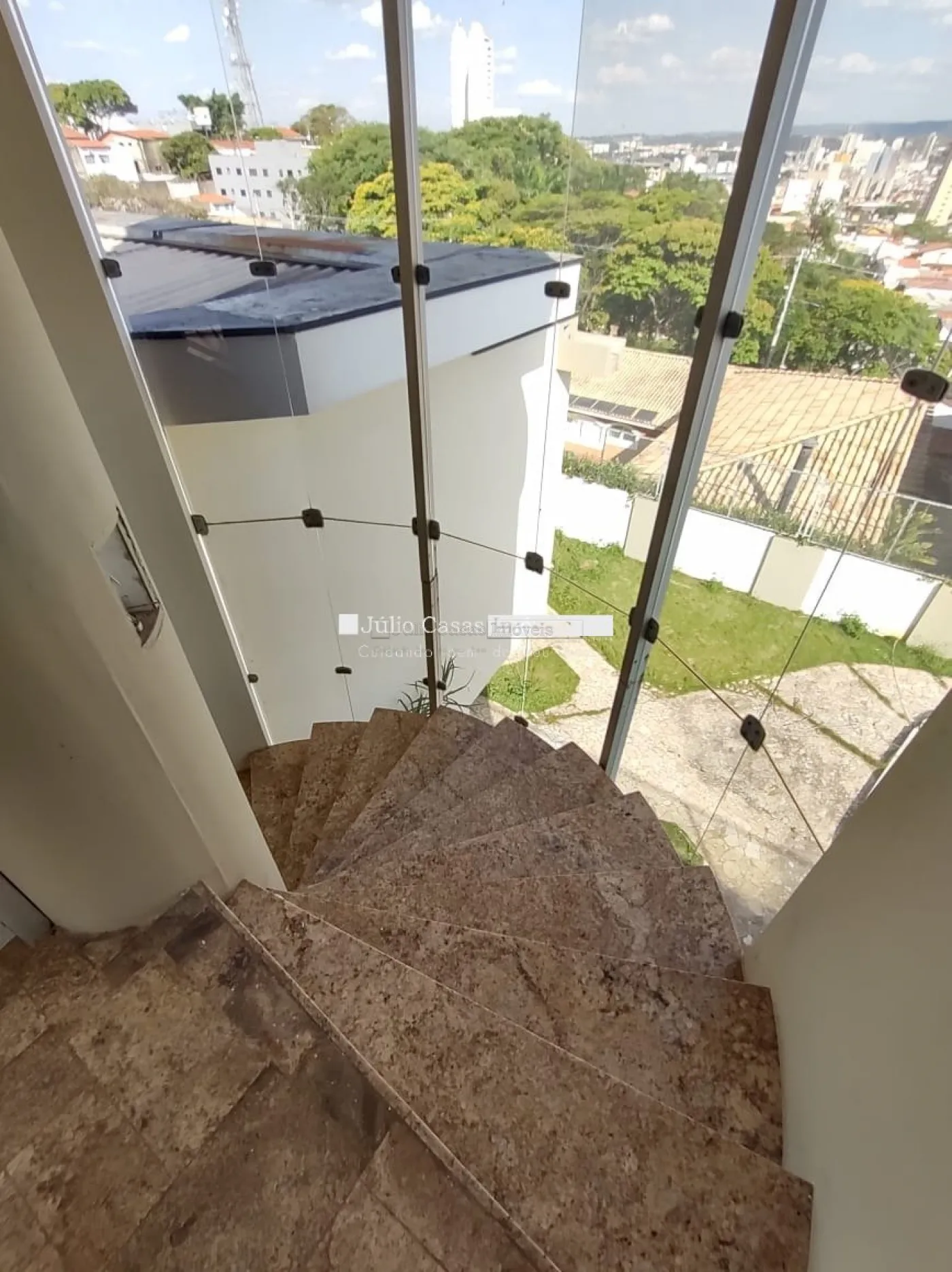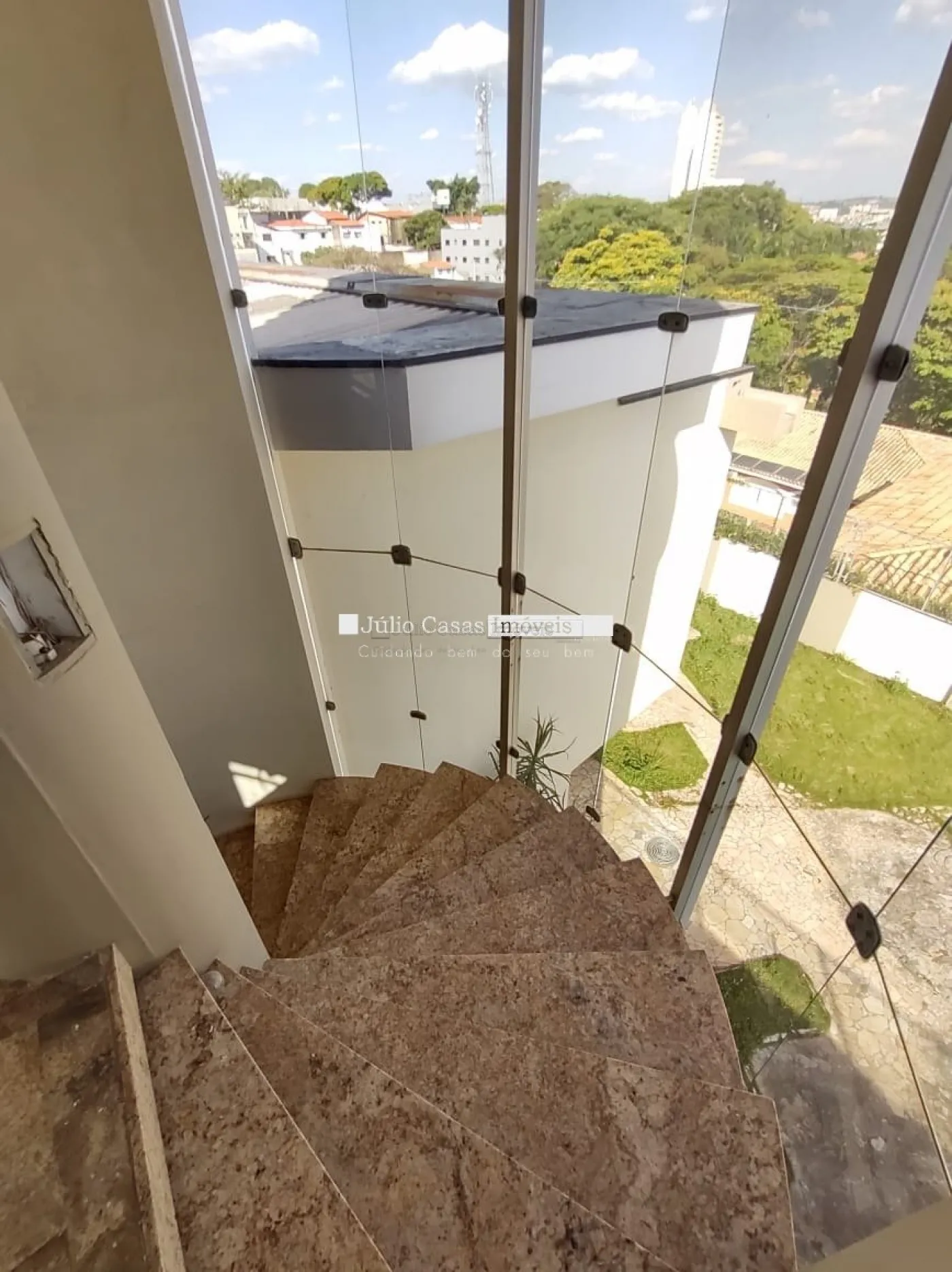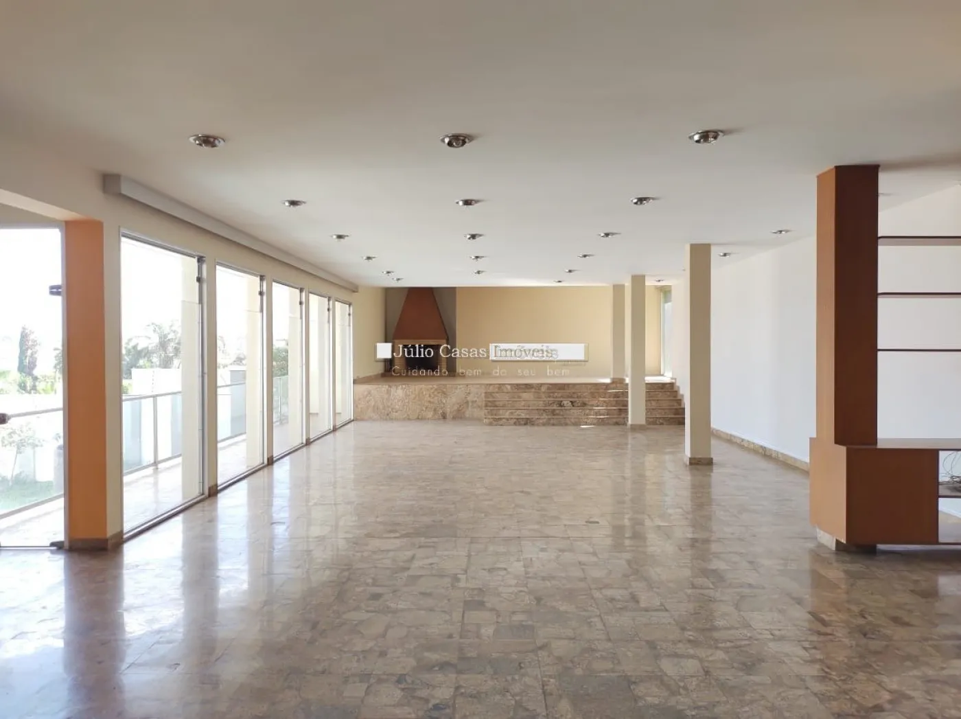 No piso superior, conta com 3 suítes grandes com varandas (sendo 1 suíte máster), sala para 2 ambientes, sala de jantar, sala com lareira, sala de TV, lavabo, escritório, cozinha modulada com copa e despensa com prateleiras em mármore.