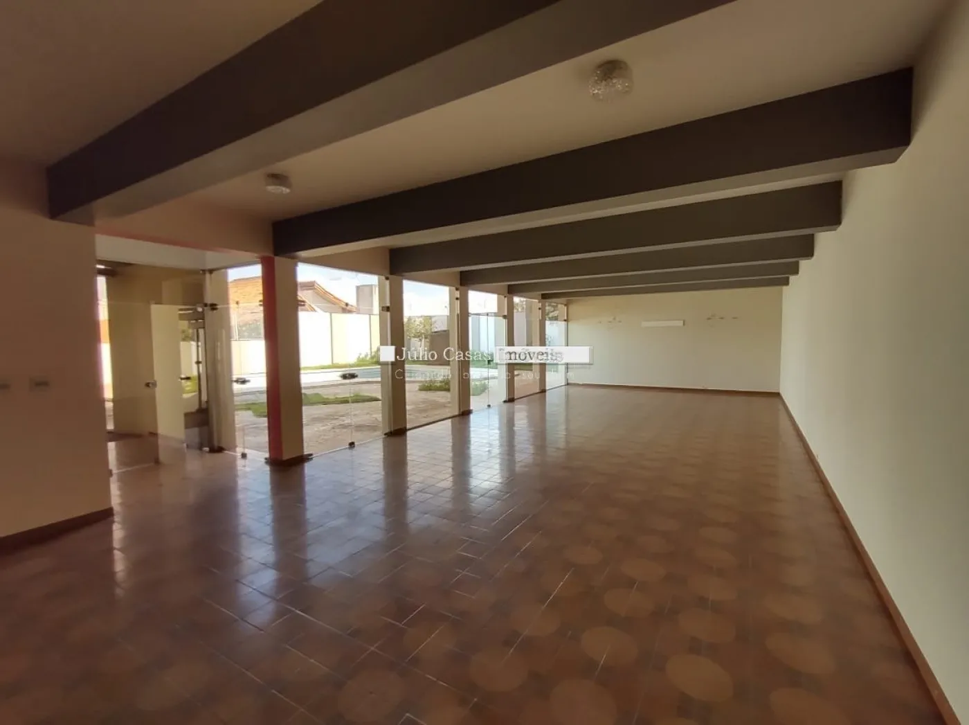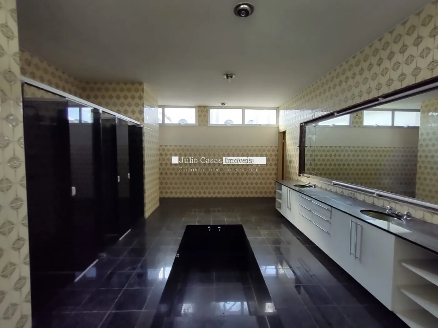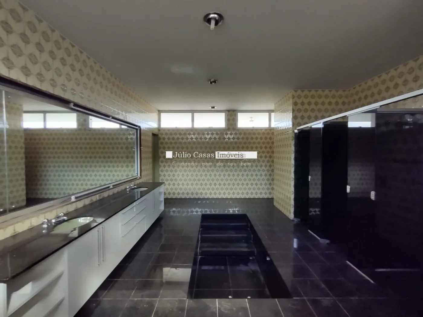 No térreo, possui 2 suítes, lavanderia ampla, salão de festas, salão de jogos, copa, churrasqueira com pia, sauna com banheiro, piscina, banheiro para piscina, depósito e garagem coberta para 5 carros.