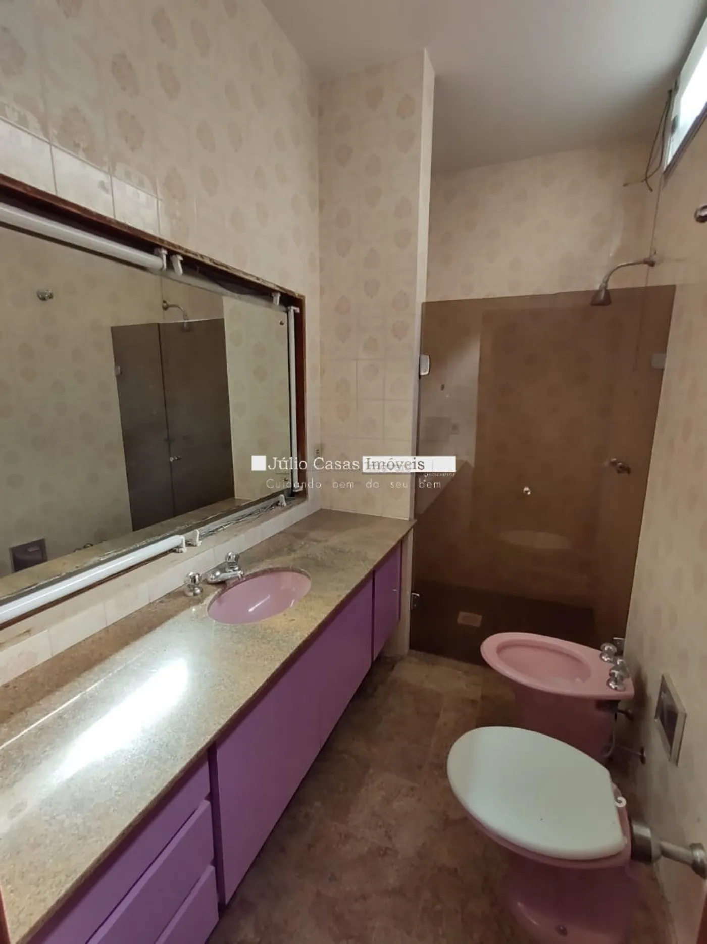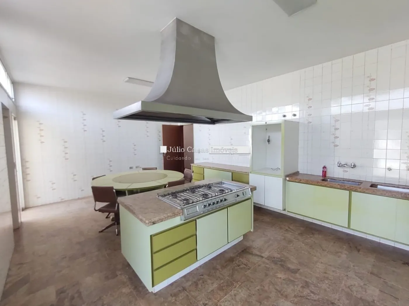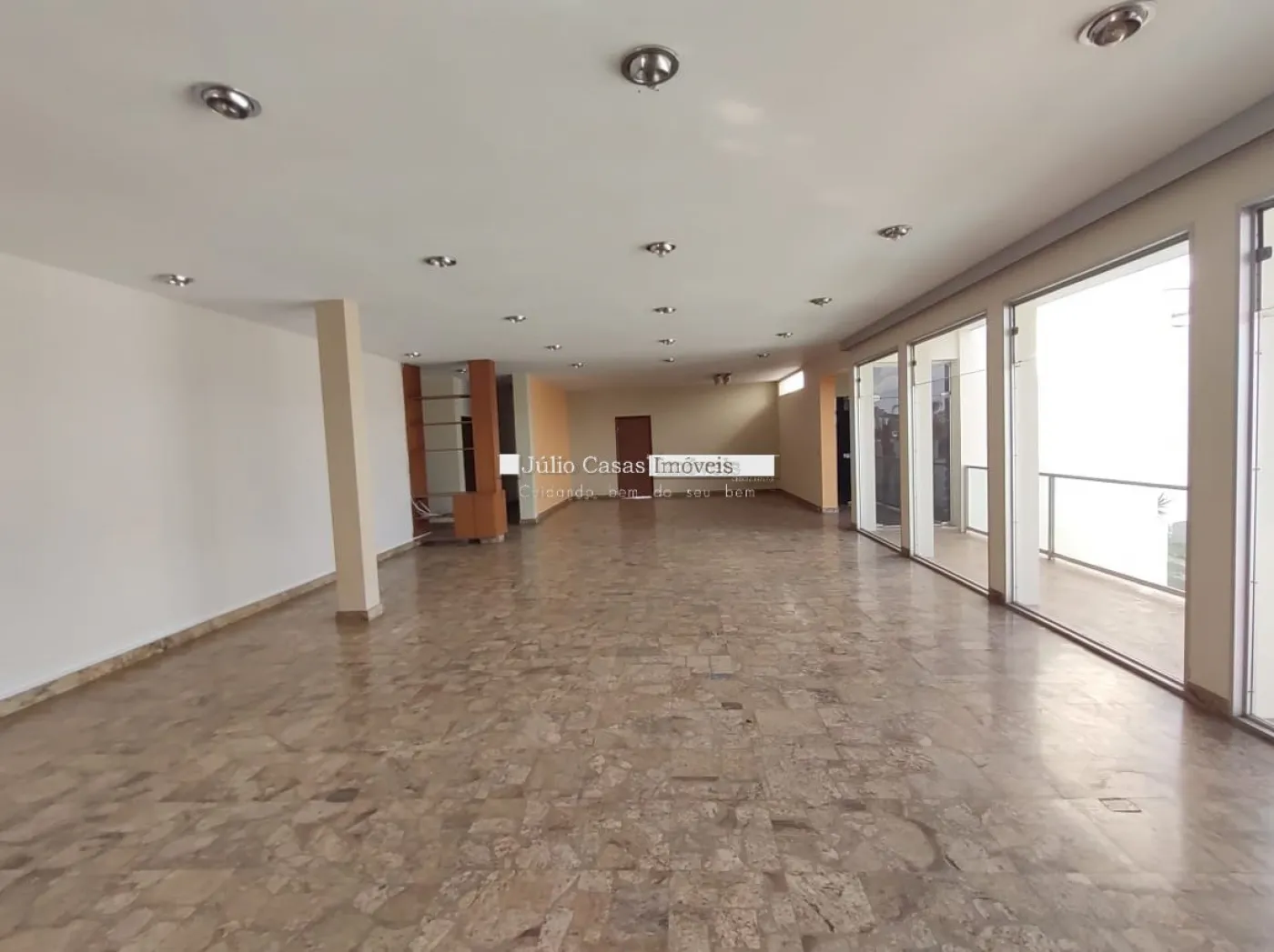 No térreo, possui 2 suítes, lavanderia ampla, salão de festas, salão de jogos, copa, churrasqueira com pia, sauna com banheiro, piscina, banheiro para piscina, depósito e garagem coberta para 5 carros.