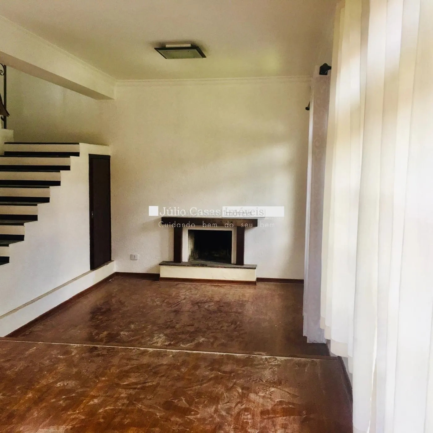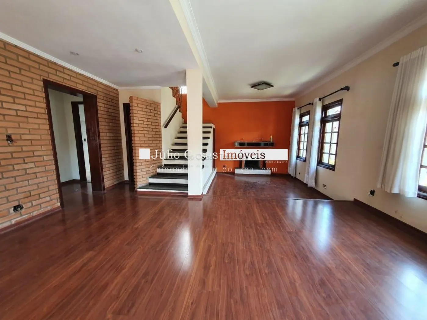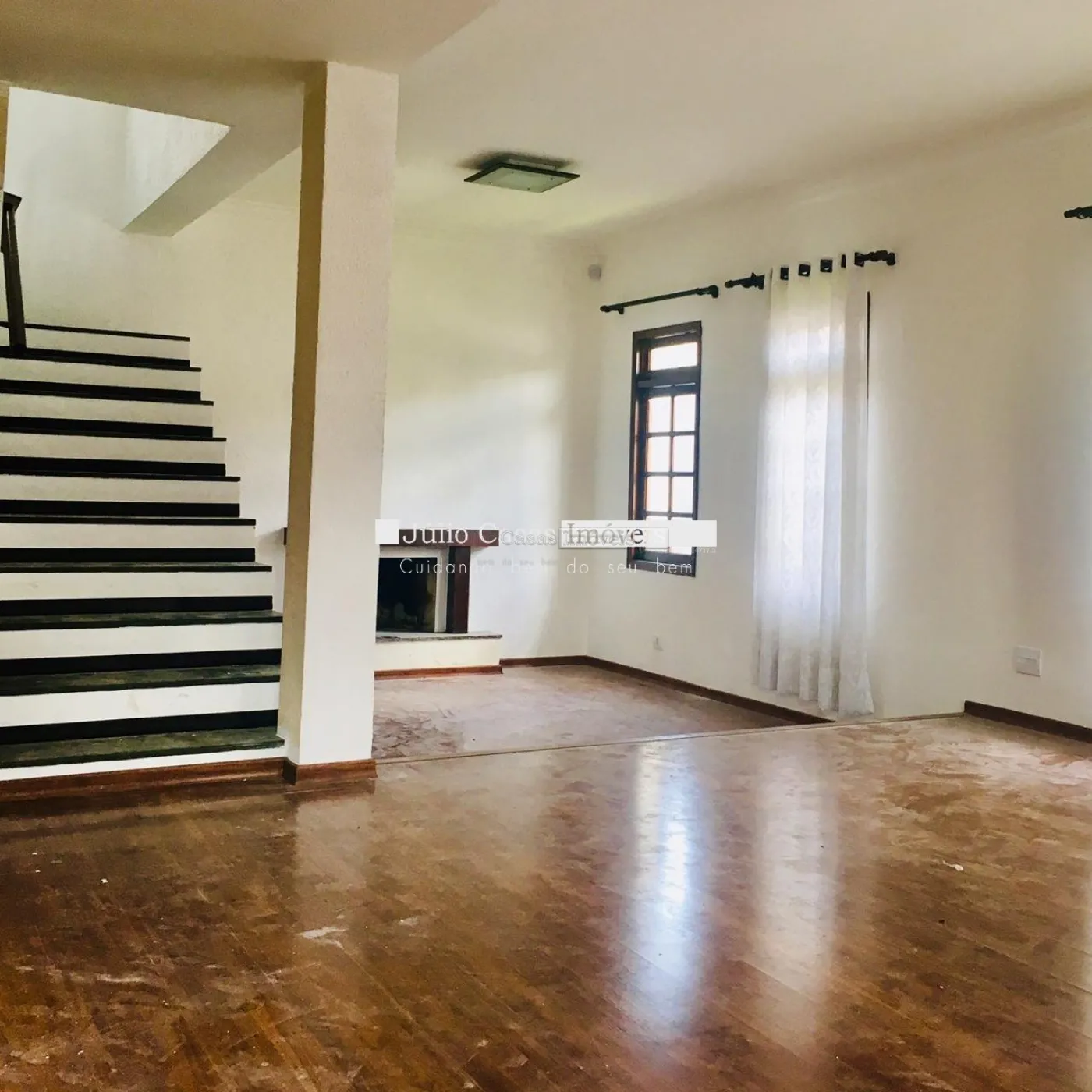 Sobrado com Sala 2 ambientes, pisos em madeira, lareira, cozinha ampla com gabinetes, lavanderia, 4 quartos modulados, 1 suíte, todos em piso madeira