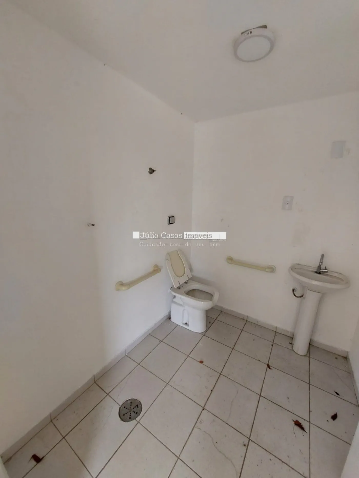 No andar superior, o espaço é dividido em seis salas fechadas com drywall, o que permite a flexibilidade de ampliar os ambientes conforme necessário. O imóvel possui um total de cinco banheiros, incluindo um banheiro adaptado para pessoas com deficiência (PCD), atendendo às normas de acessibilidade.