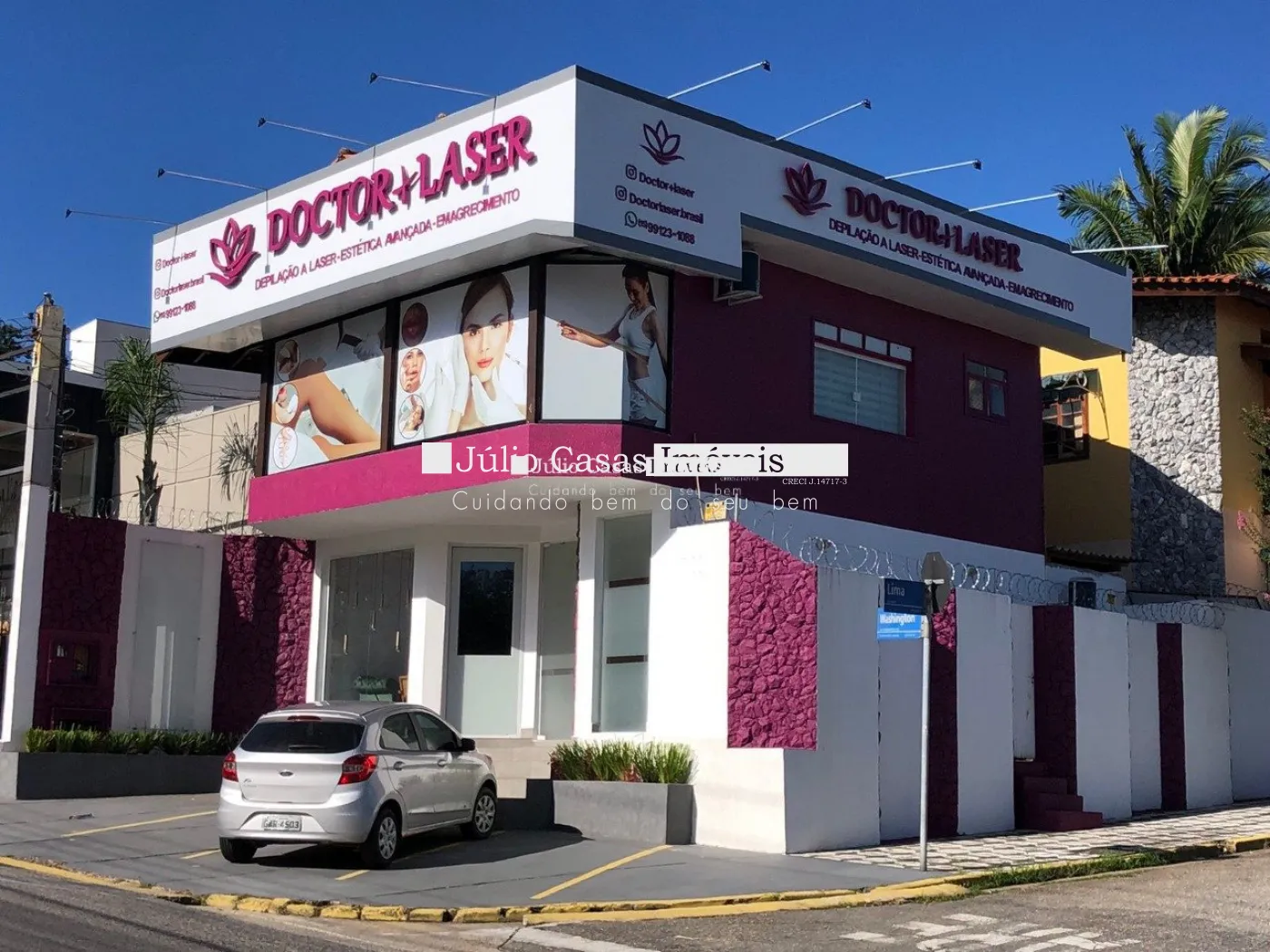 Lindo prédio comercial de esquina, com 3 vagas frontais são dois pavimentos, toda frente em vidro temperado translúcido, espaço para publicidade, rampa de acesso ao salão principal com sanca de gesso e iluminação embutida, lavabo e copa/cozinha com extensa pia com gabinete no piso térreo, escada revestida de granito com proteção em vidro translúcido temperado para acesso ao piso superior com uma sala com armário , wc com gabinete e box de vidro, área para exposição toda em vidro translúcido de fronte a avenida. Casa ao fundo com 2 salões e dois e wc.