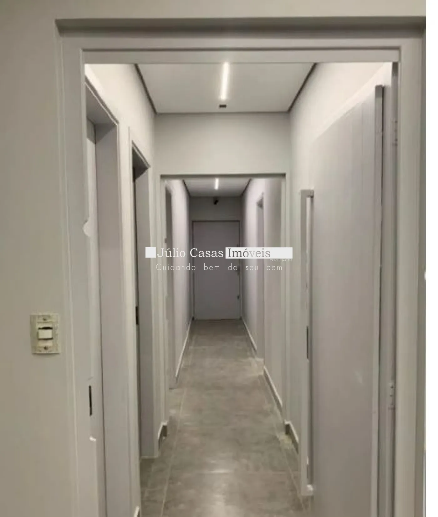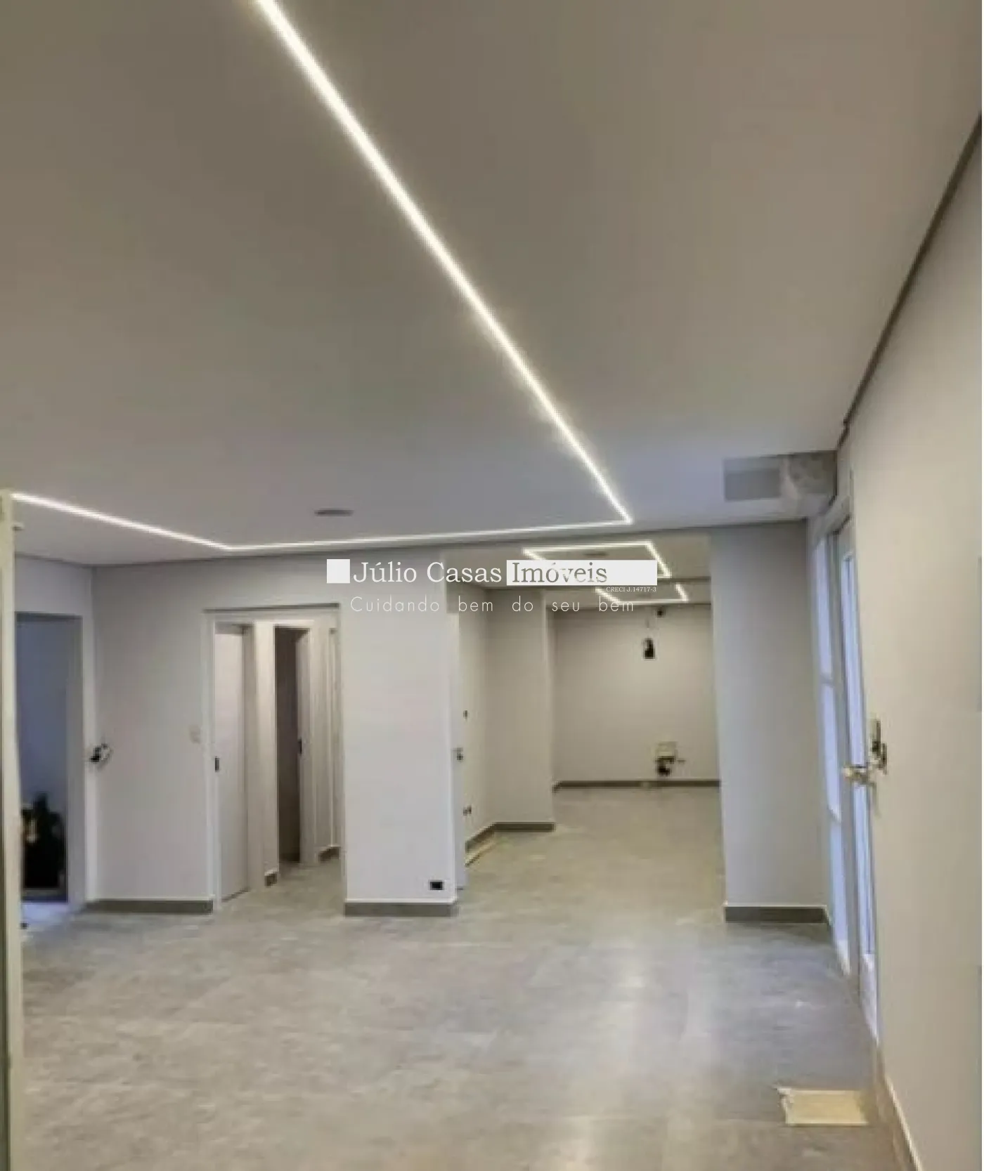 No piso inferior: uma bela recepção, salão em L, com dois ambientes, 02 Salas abertas e contíguas, um escritório em piso de madeira. 03 banheiros, uma ampla cozinha, área de serviço e depósito com entrada para veículos de pequeno e médio porte, com 5m de largura por 2,20m de altura, protegida com portão eletrônico e portas de aço;