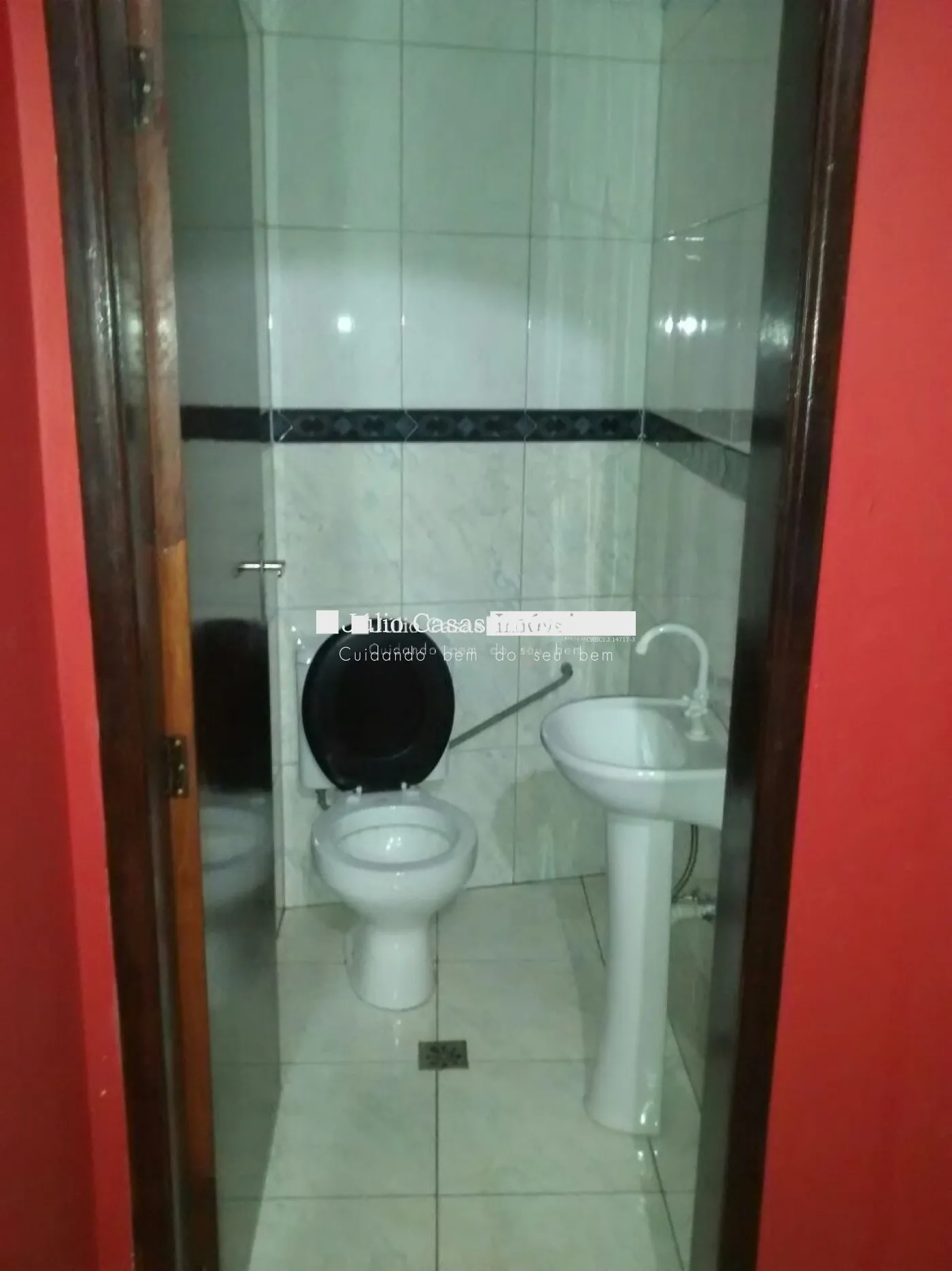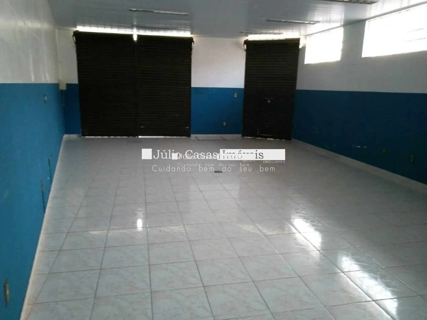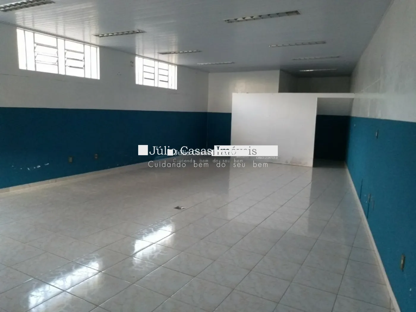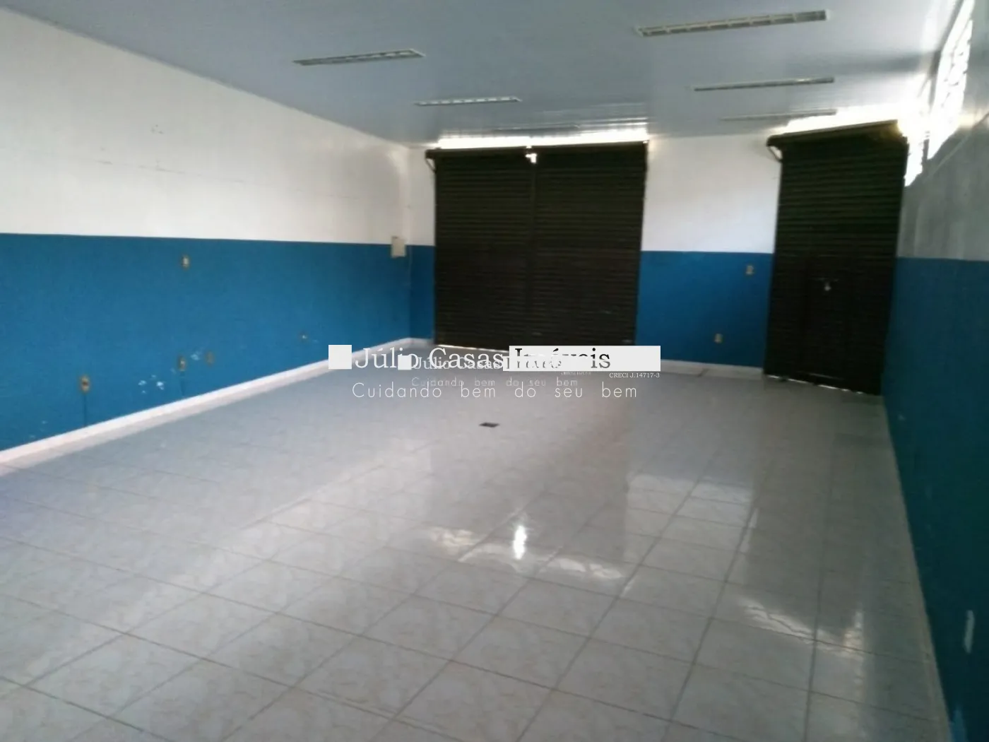Salão comercial com 90m² de área coberta + 16m² de área aberta, com dois banheiros, todo com a acabamento em piso cerâmico e pé direito de 4 metros. Recuo para 3 vagas de garagem.