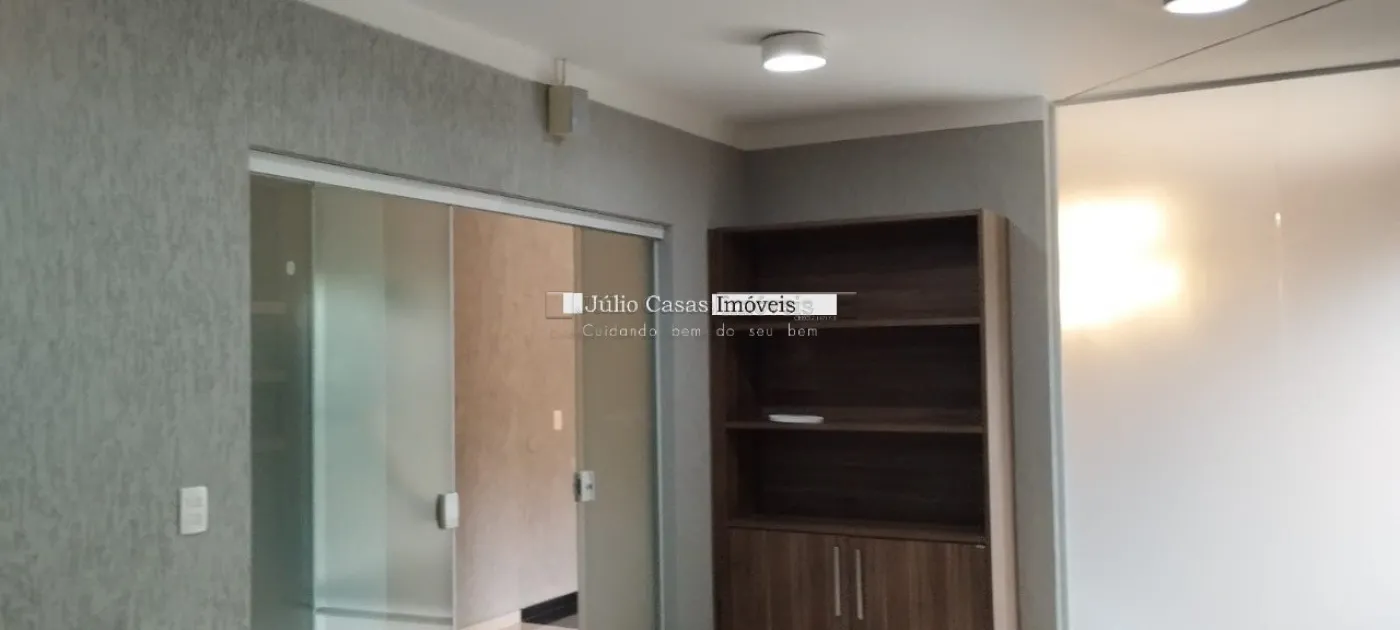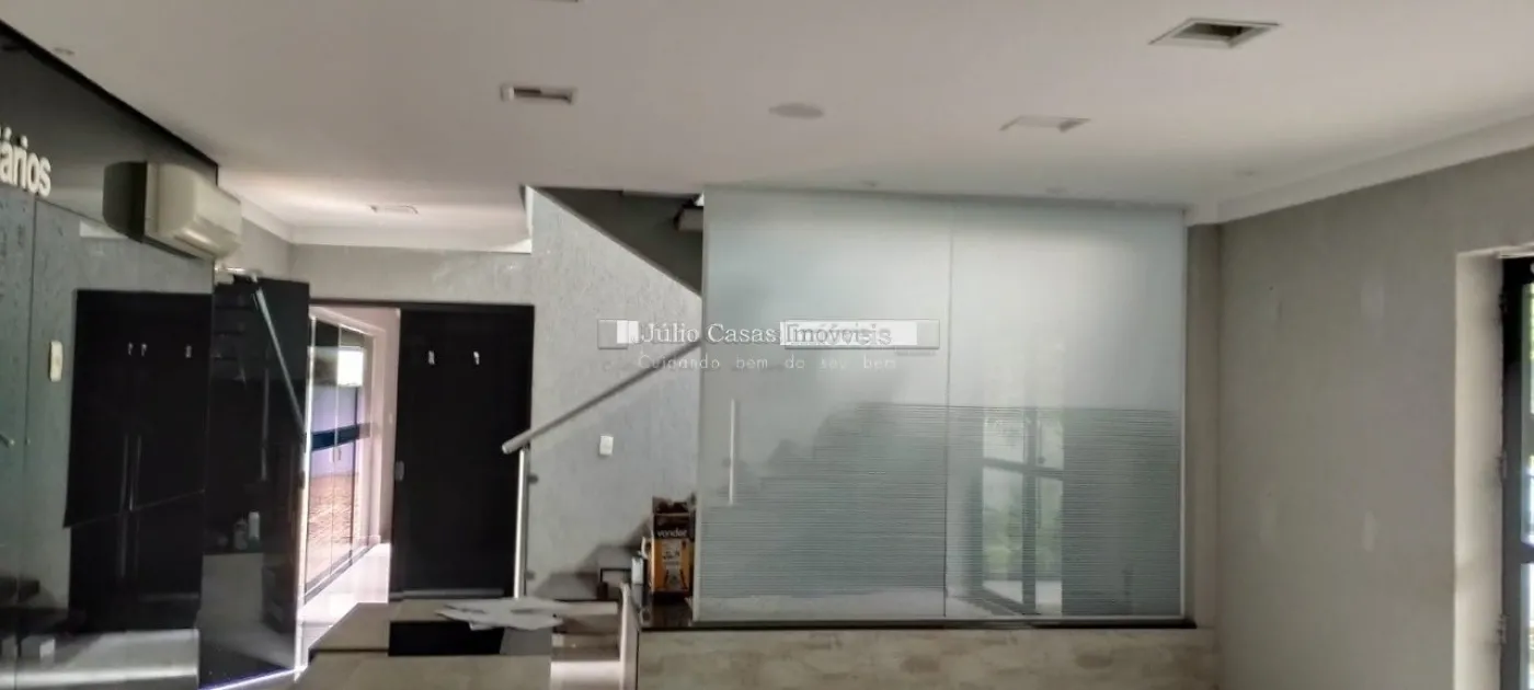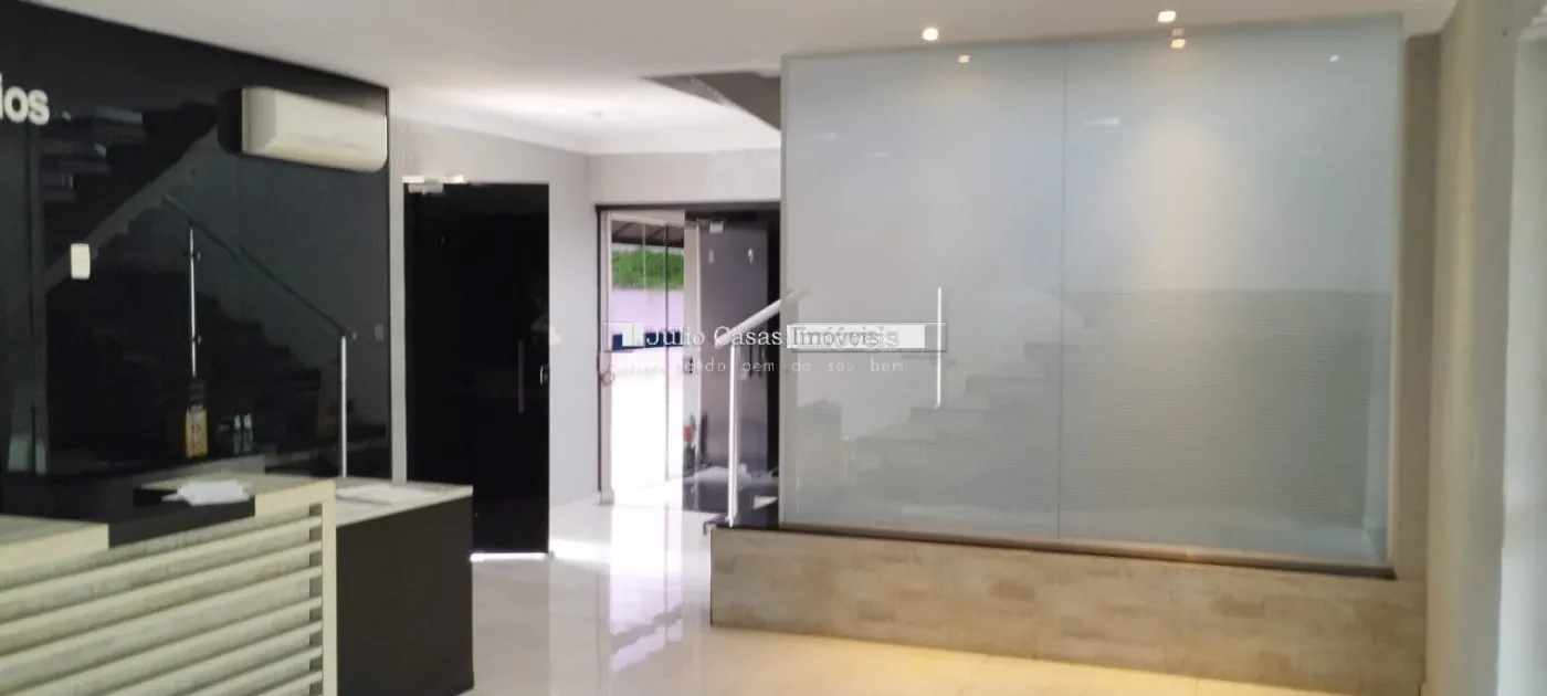 Excelente prédio comercial com recepção,(parte de drywall, podendo ser reversível), balcão de atendimento, banheiros para publico externo (inclusive para cadeirantes), escada em granito, com guarda corpo em vidro temperado e corrimão em aço inoxidável, diversas salas com móvel de marcenaria com banheiro conjugado, sala de espera, sala de reunião, sala para arquivo, todos os ambientes com ar condicionado, parede com textura, espaço grande para copa, com fogão, coifa e pia de apoio, estacionamento interno para aproximadamente 12 veículos, portão basculante automático, parte externa 08 veículos, banheiros com pia em granito, revestimento e piso em porcelanato, fachada imponente toda em vidro e design moderno.