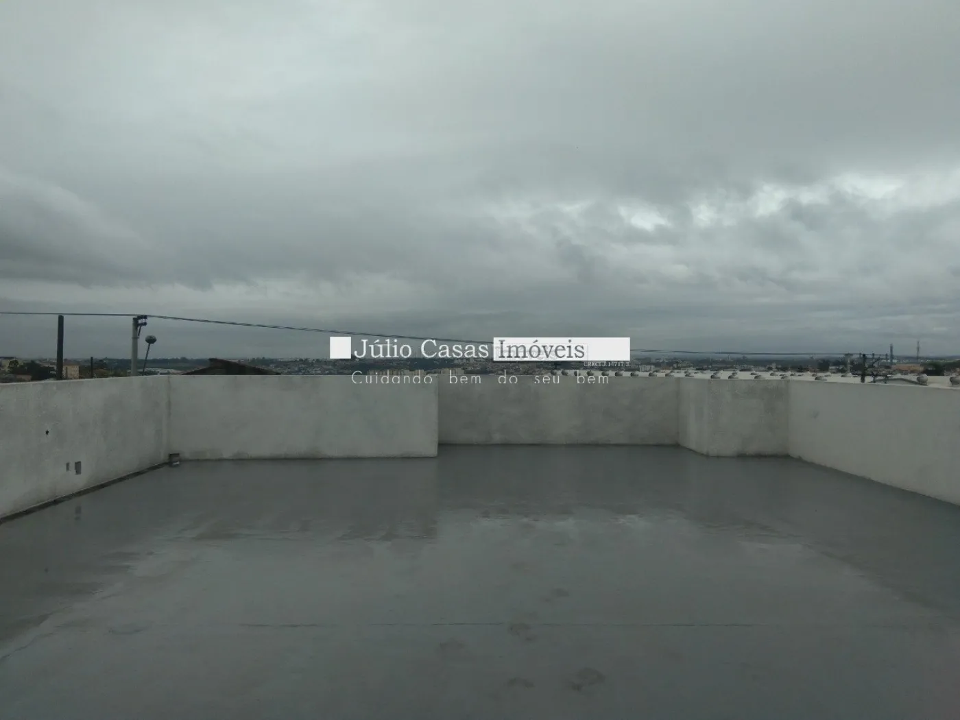 estrutura de vigas e lajes em concreto armado, 2 reservatórios de água com capacidade de 1000lts cada, telhado com madeiramento em peroba Rosa, telhas em fibro cimento onduladas. Grades internas de acesso a escada para proteção de crianças e idosos.
