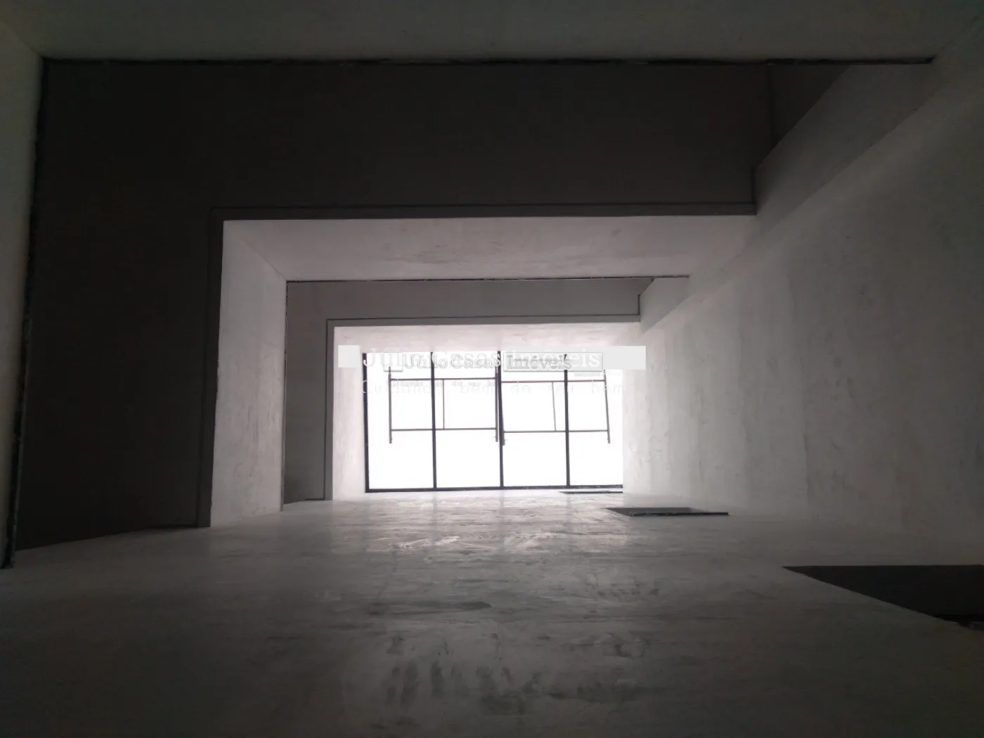 1 salão comercial com 210 m2 de piso, revestido em porcelanato, paredes acabadas com massa corrida, lâmpadas fluorescentes,2 banheiros com piso em porcelanato, bancadas em granito Granito Amêndoa Light, toalheiros e saboneteiras instalados, revestimento de parede tipo travertino até a altura do teto, louças no tom de bege, portas em madeira de embutia envernizadas, espelhos instalados, teto em gesso com molduras, um pequeno quintal com piso em cerâmica com 1 tanque, amplas janelas em alumínio preto com pintura eletrostática , porta frontal em blindex fumê em toda a fachada, um estacionamento coberto para 2 automóveis pequenos, com piso em pedra Miracema rosa anti derrapante, uma porta com roldanas superiores em aço conferindo total segurança ao imóvel.