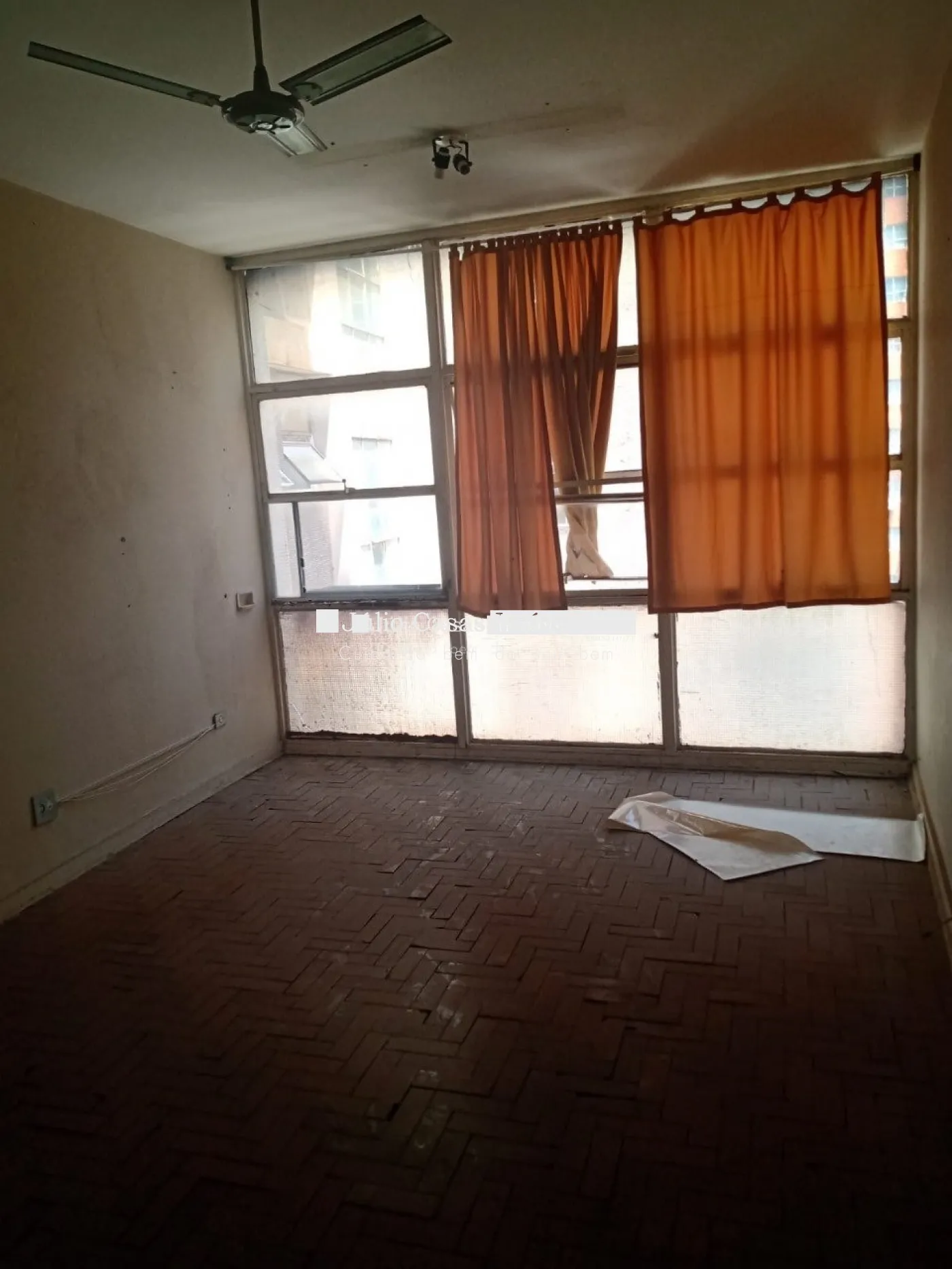 Sala ideal para um escritório, ou consultório de psicologia ou algo assim. Todo em piso de taco, ampla janela permitindo boa iluminação, ventilador de teto e 1 banheiro