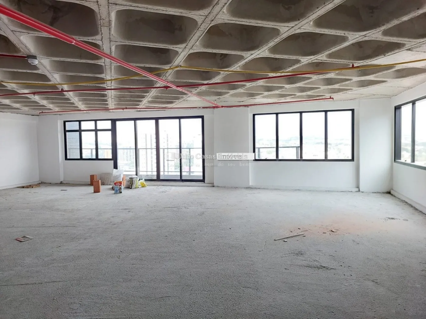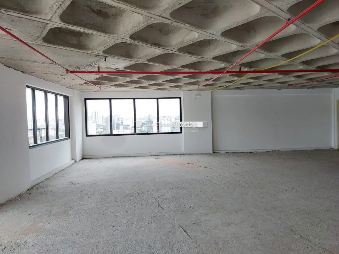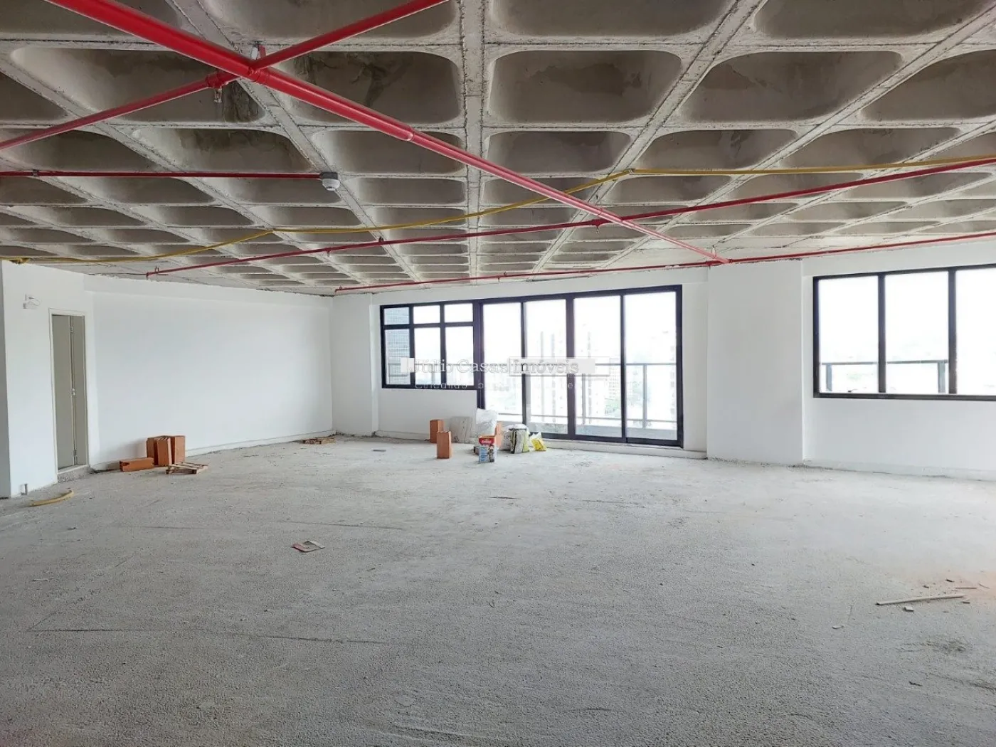 Lajes corporativas com 182 metros², com rebaixo na laje para instalação de piso elevado com 3 banheiros, com 4 vagas cobertas.