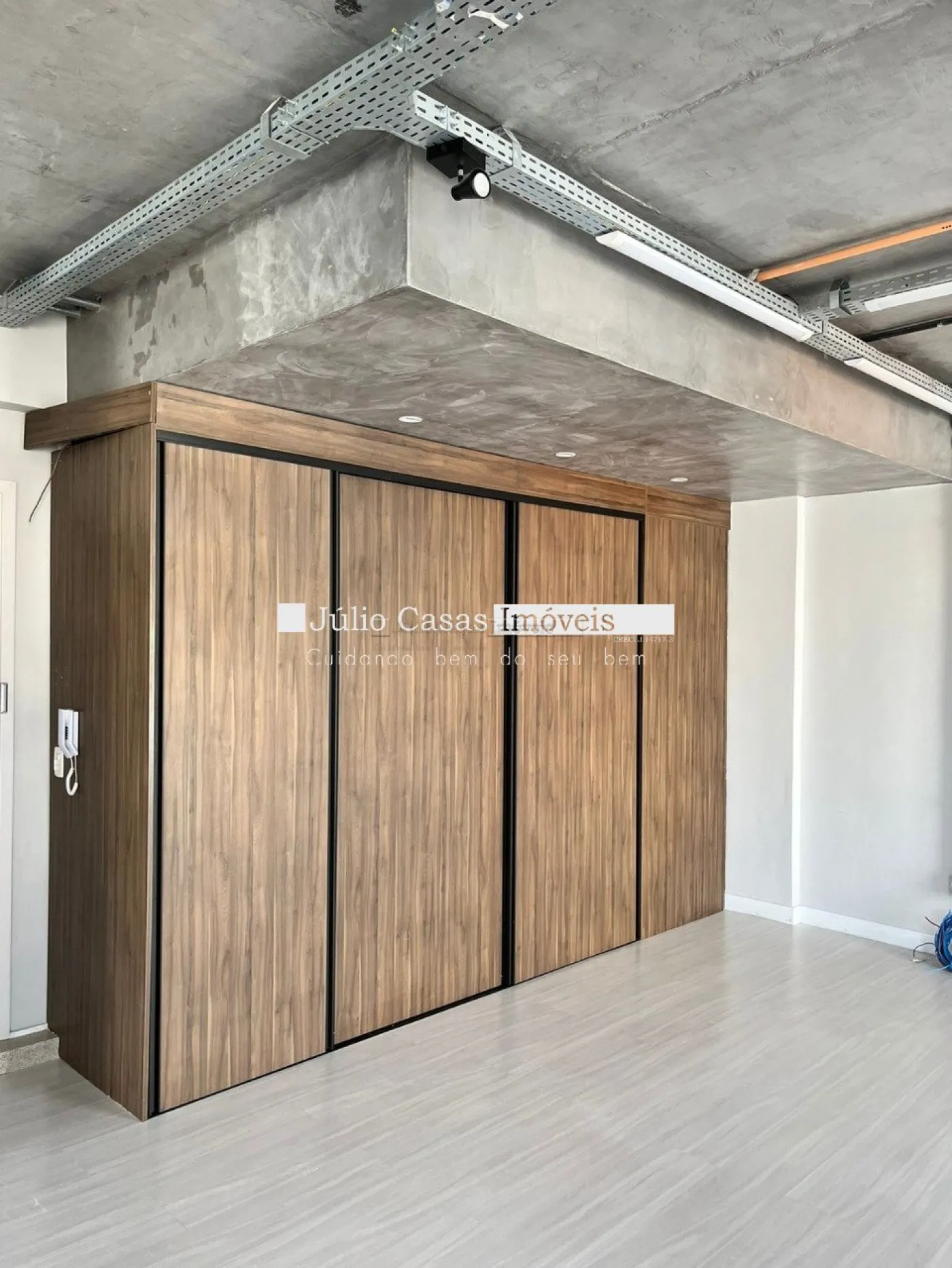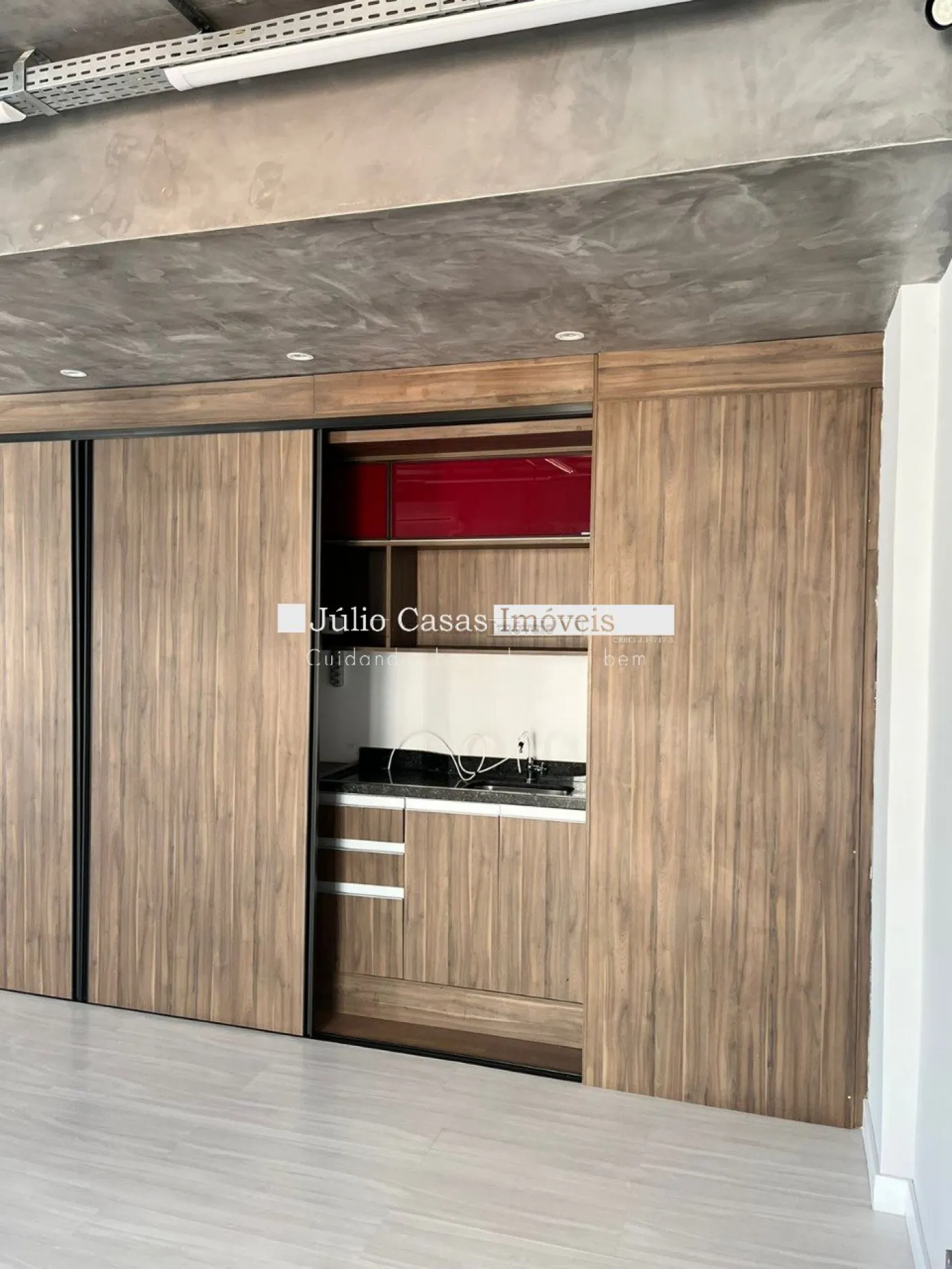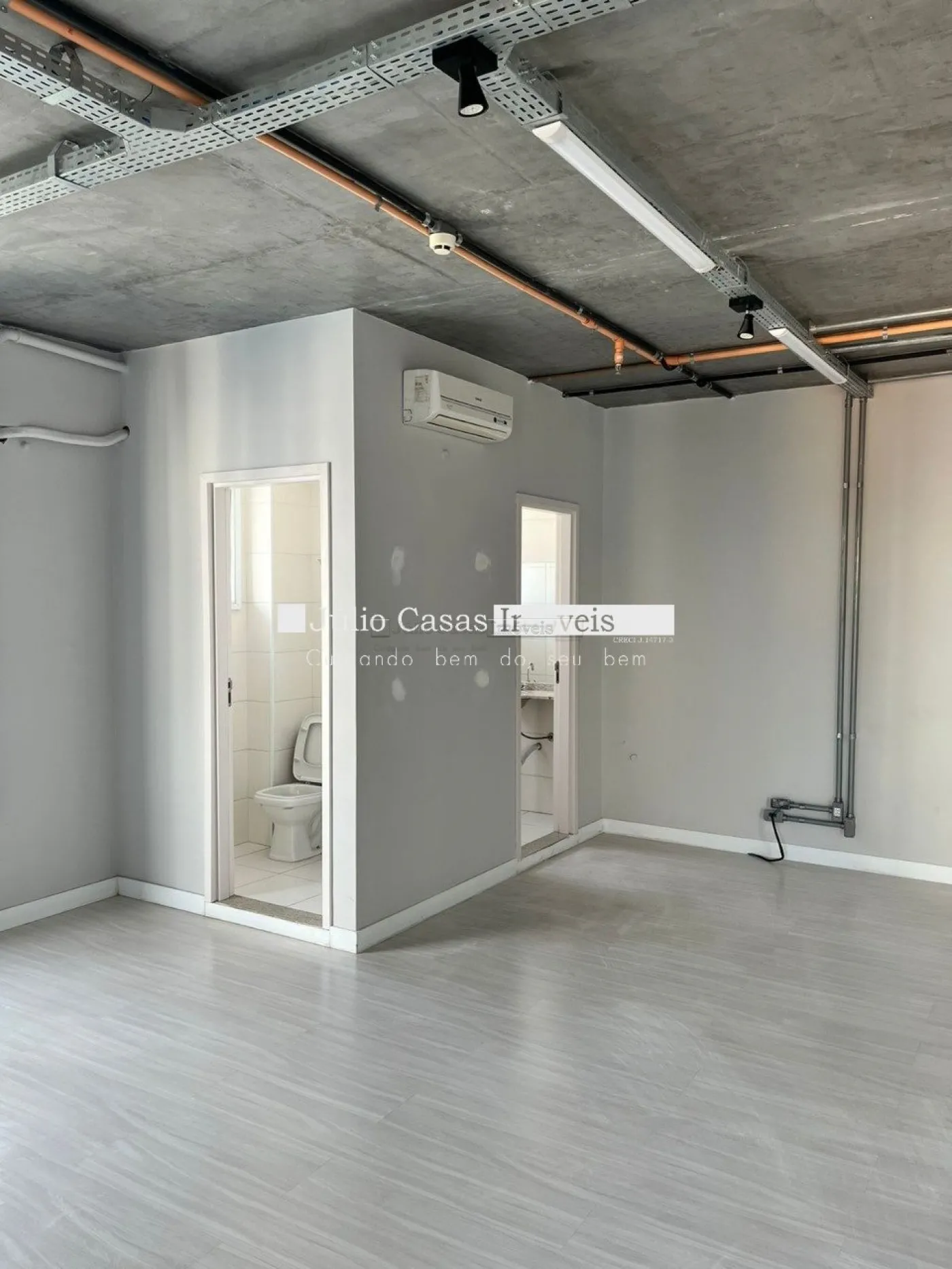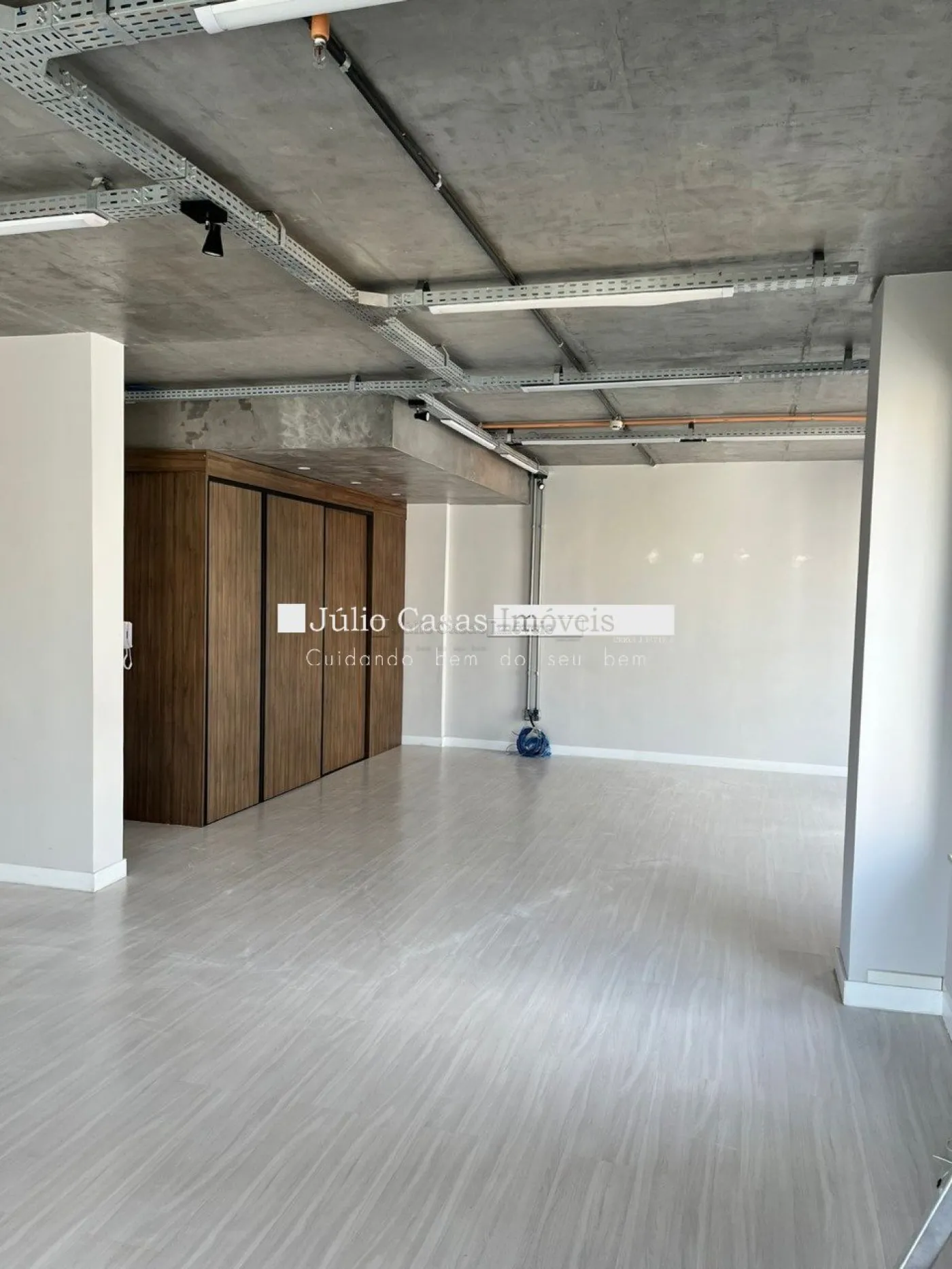 Toda com piso revestido em laminado de madeira, 4 aparelhos de ar condicionado, luminárias de LED, bancada com pia, armário para produtos de limpeza e copa embutida, portas com fechadura digital, dois banheiros e duas vagas de garagem cobertas.