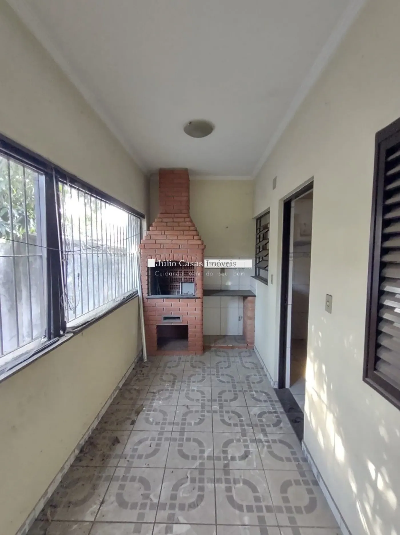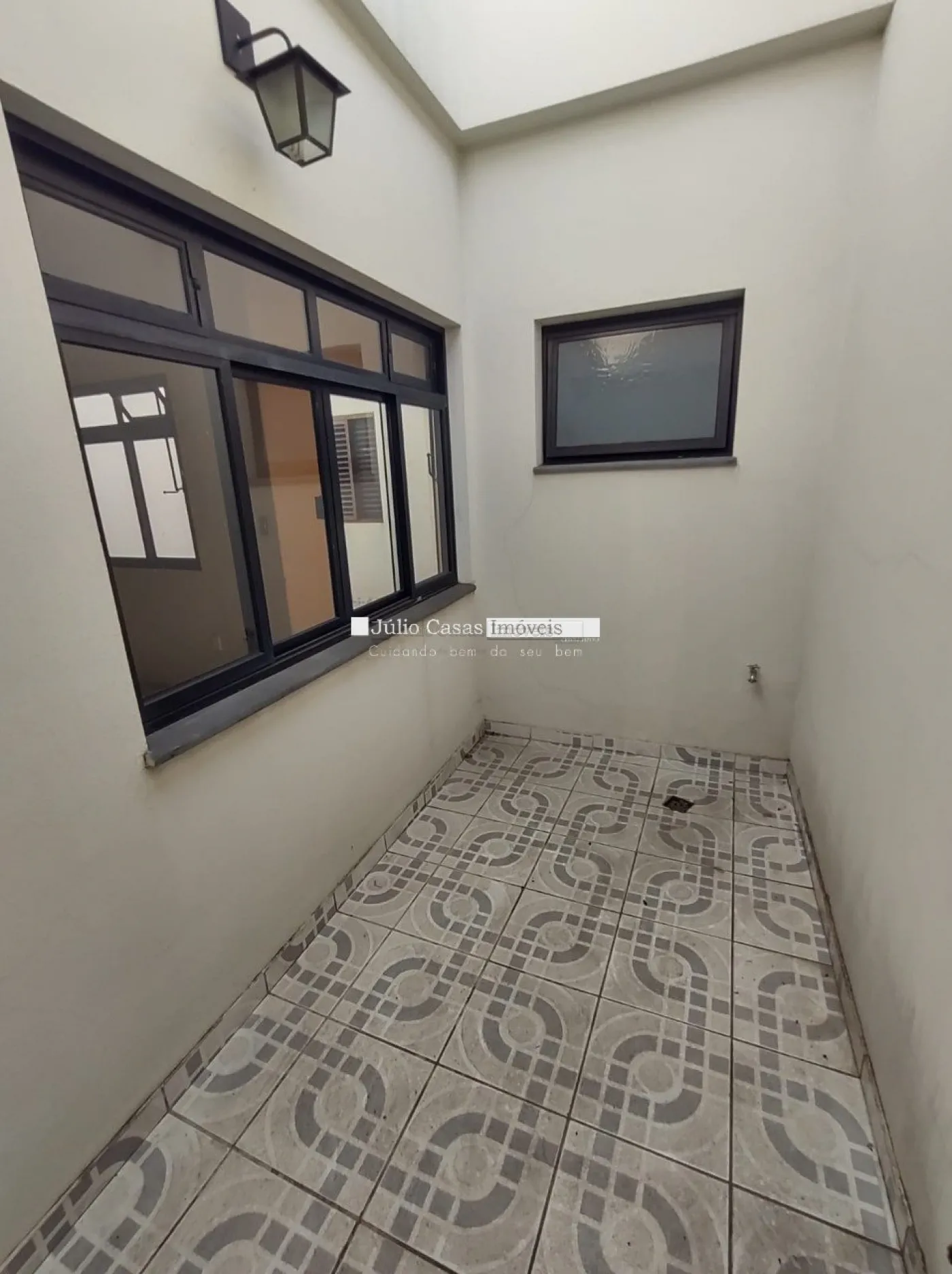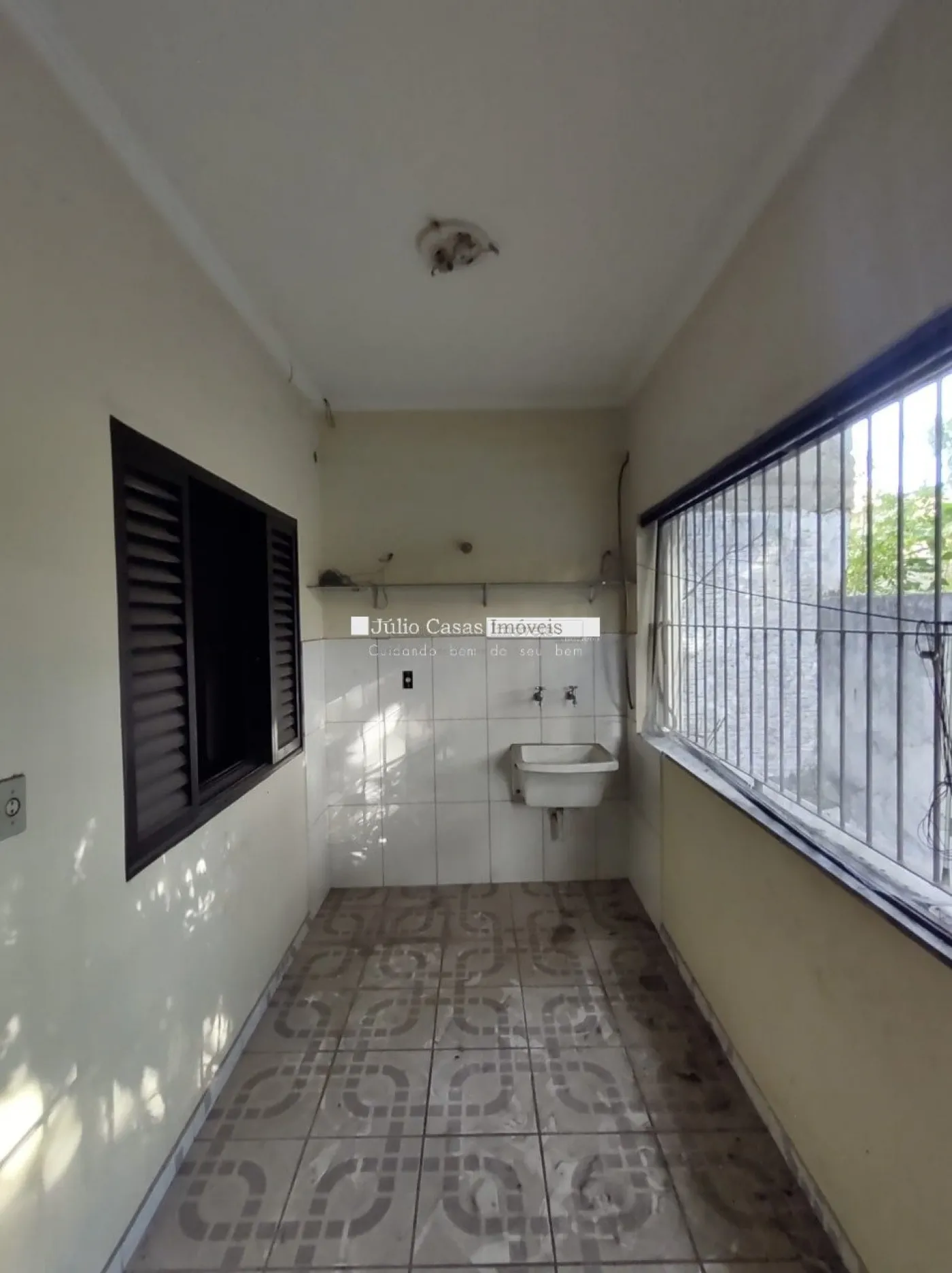 Estrutura funcional com dois banheiros, área de luz e área de serviço.