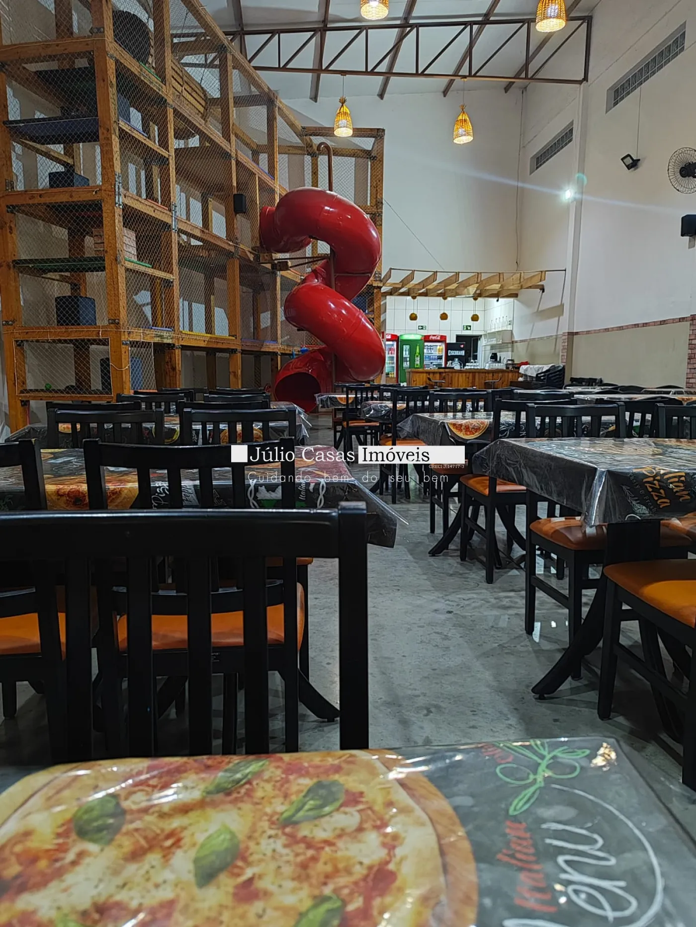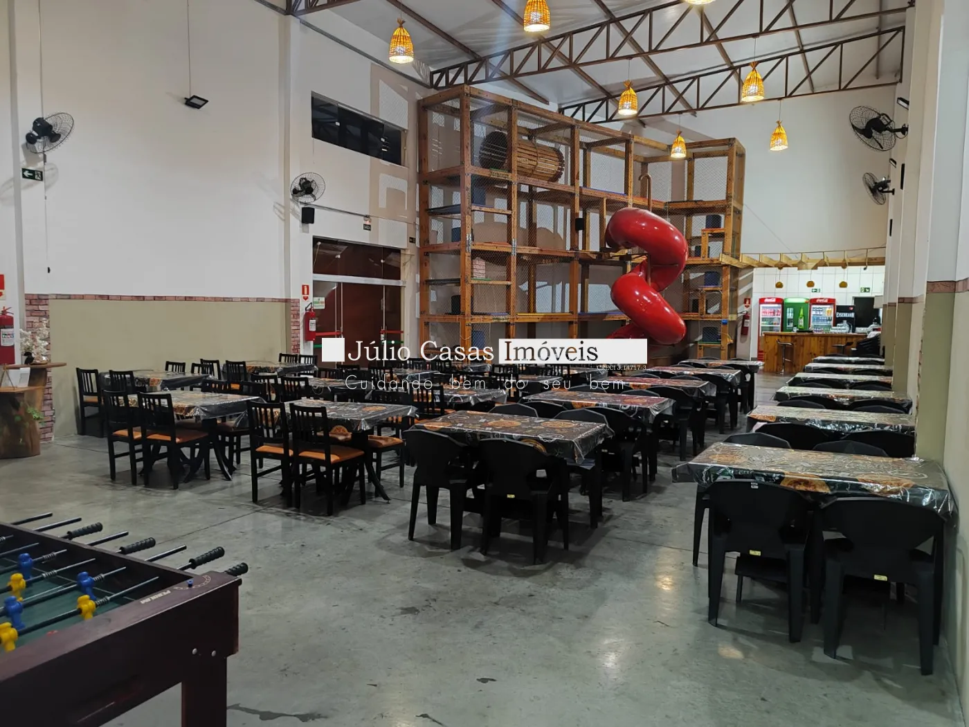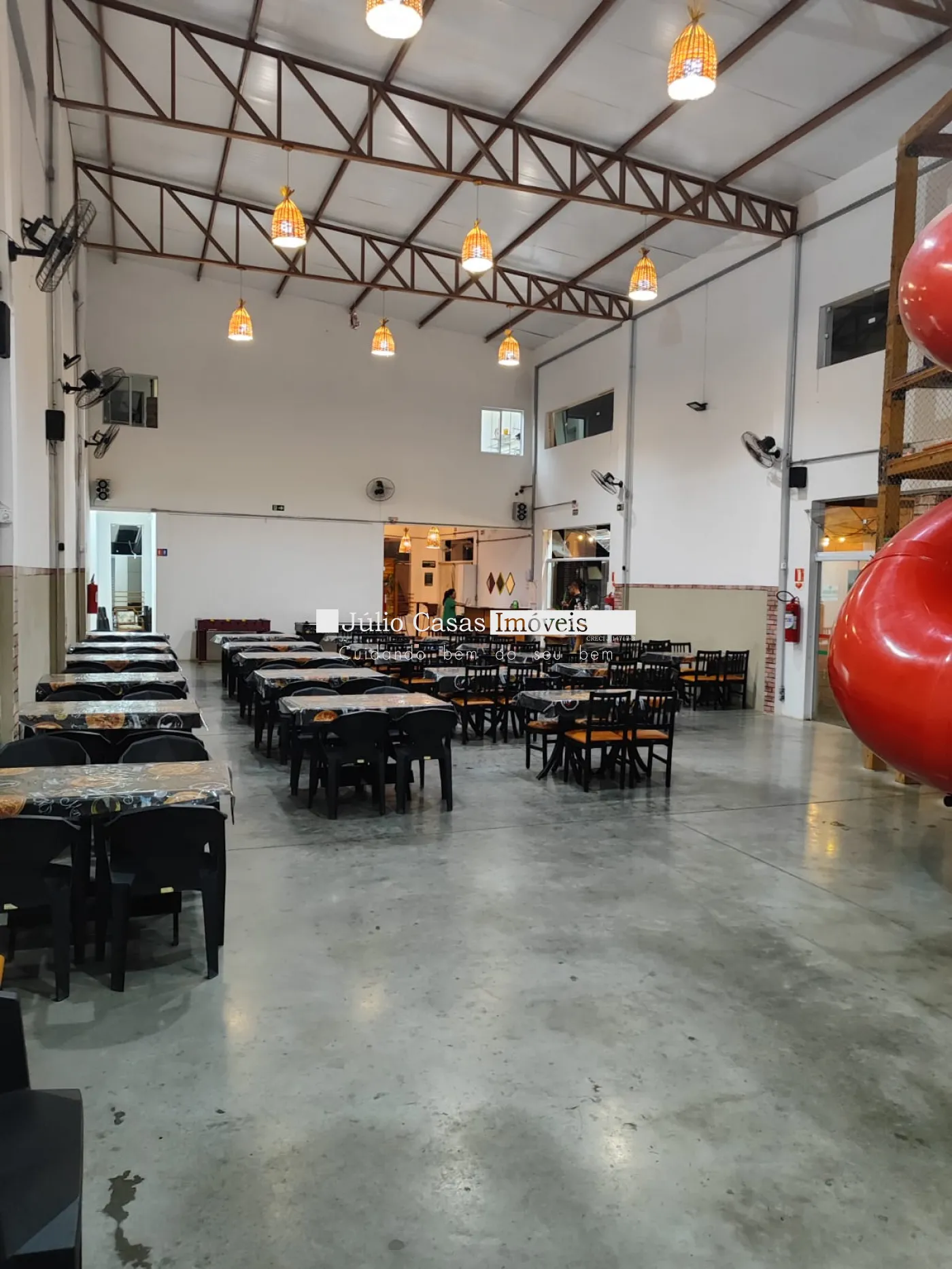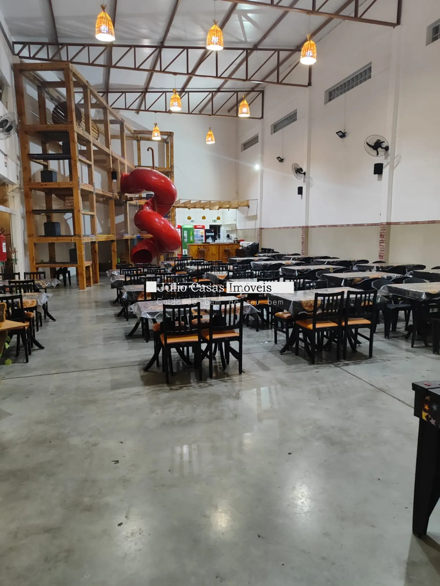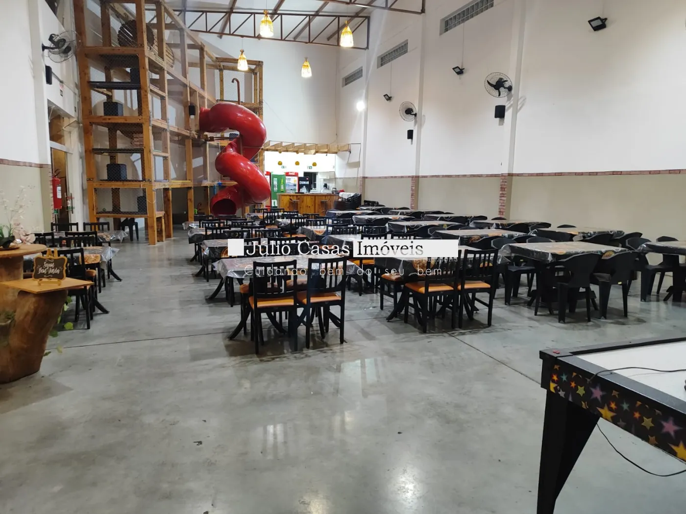 Salão com 2 cozinhas, 4 wc, estacionamento para até 8 veículos.