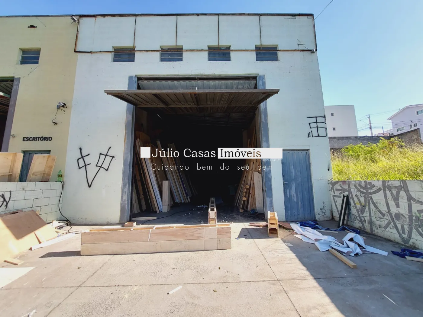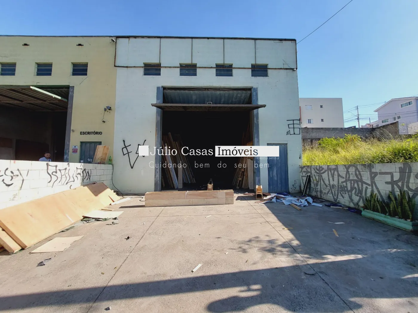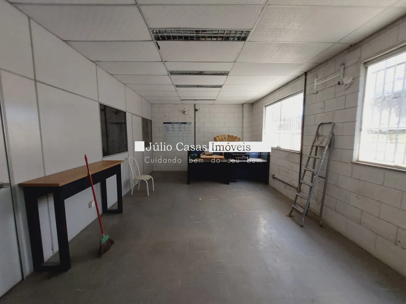 Galpão com mezanino para escritório, andar térreo com copa e 2wc.