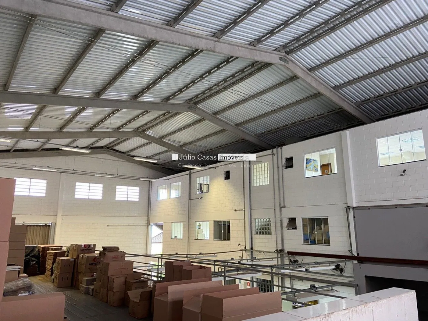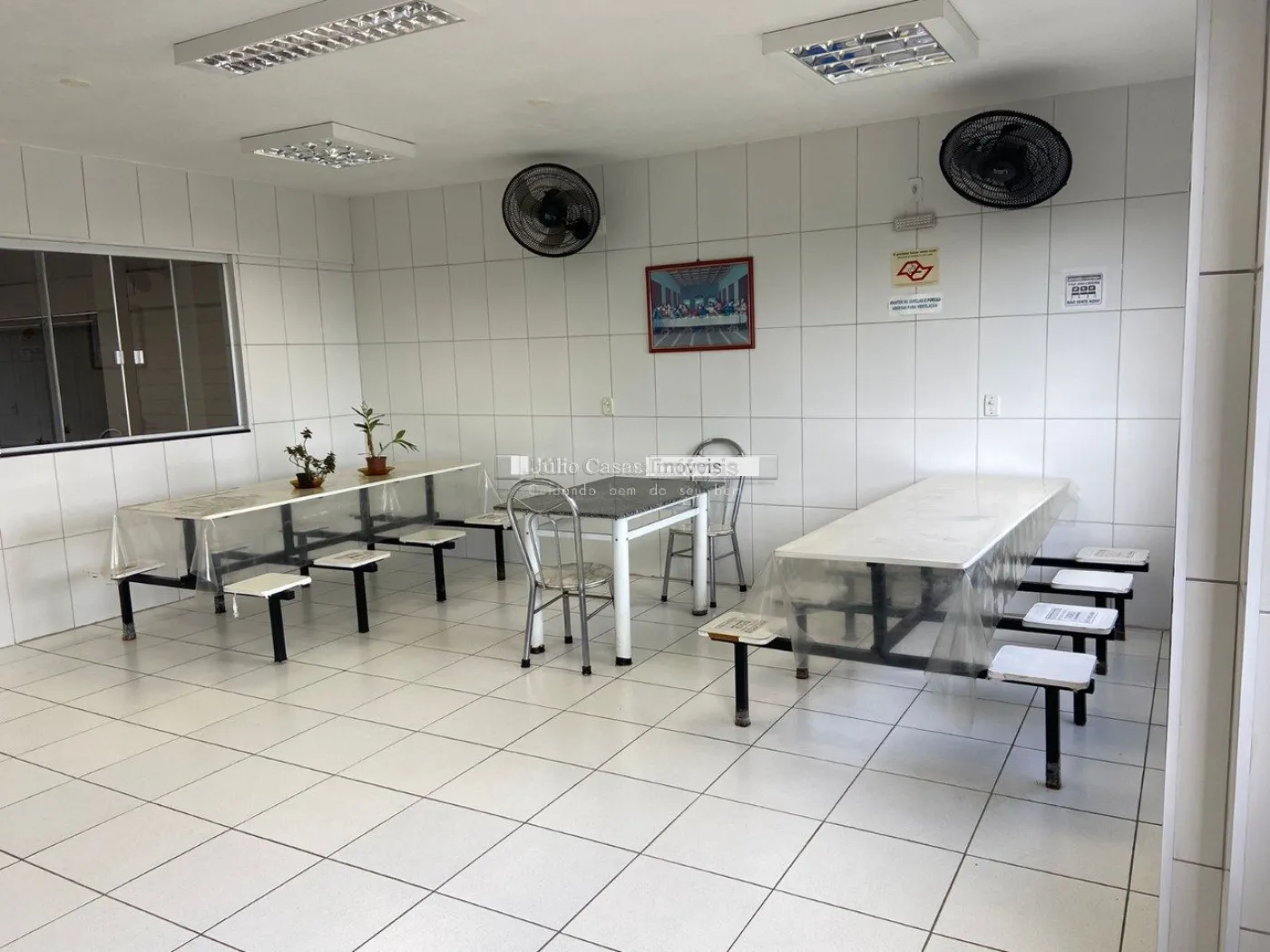 Ótimo Galpão medindo 20x30 com mezanino de 1000m2. O imóvel tem vestiários femininos e masculino no piso térreo com 2 box para chuveiros, 2 sanitários comuns e 1 para PCD em cada ambiente. No 1o andar você tem refeitório com ventiladores para auxiliar na ventilação, sala de TV sala com banheiro e mezanino. No 2o andar são 2 escritórios grandes com forro, amplas janelas em vidro para iluminação natural e 2 banheiros cada. Escadas em granito e corrimão em aço inox, pisos em porcelanato e vinílico nos escritórios. O piso da fábrica é em concreto polido com espessura de 15 cm e bloquetes no pátio com intervalo de 13,5 cm