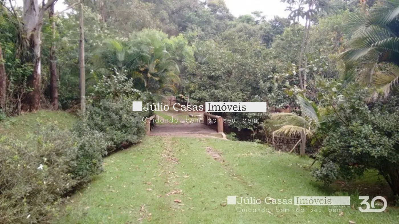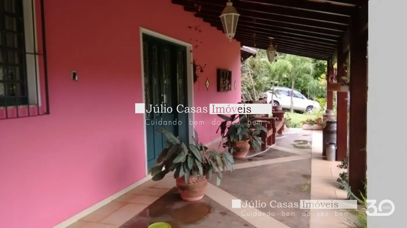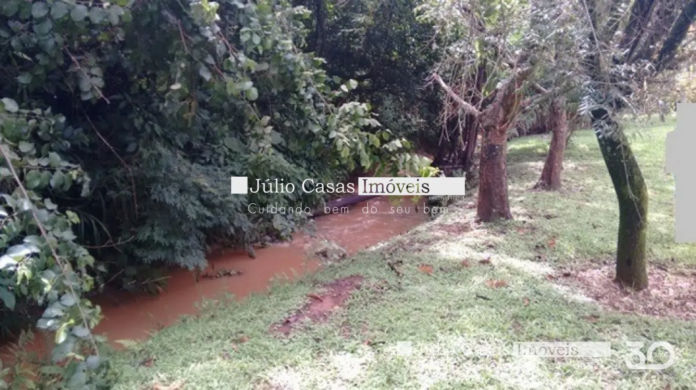 Chácara arborizada com encontro rio Inhaíba, casa principal e casa do caseiro.