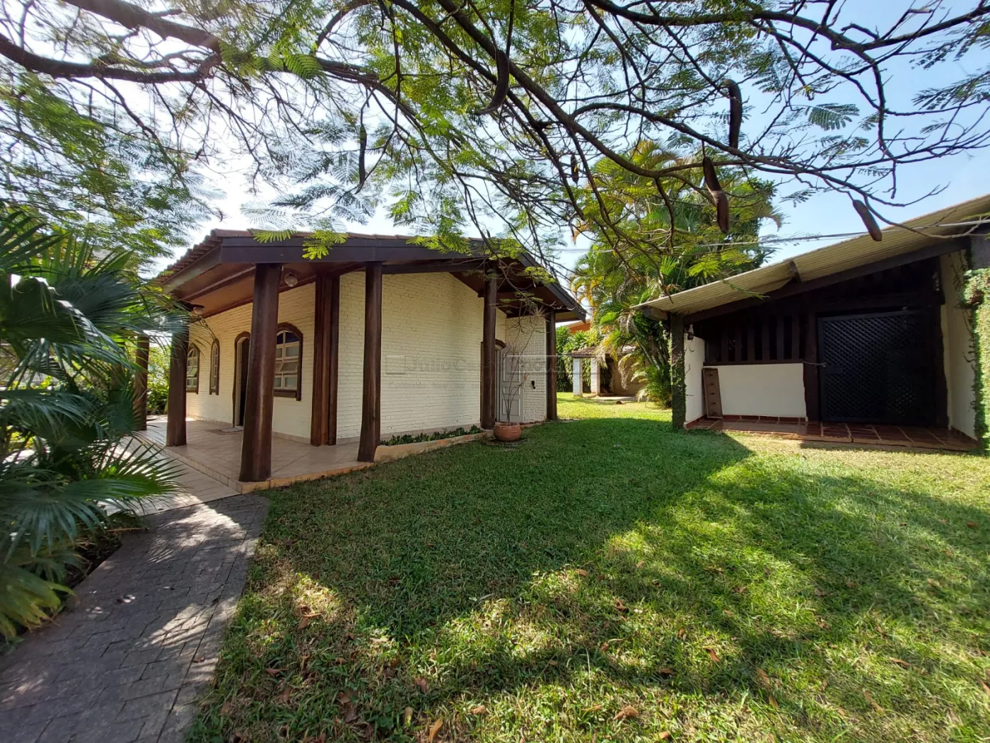Além disso, a propriedade inclui uma casa de caseiro. A casa principal oferece três salas, três quartos (sendo um suíte), um banheiro social, uma ampla copa-cozinha e uma encantadora varanda. Há também um quiosque com um belo paisagismo. A garagem coberta acomoda dois veículos, com espaço adicional para vários veículos ao ar livre.
