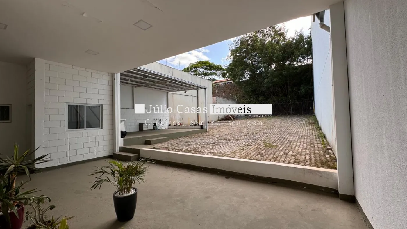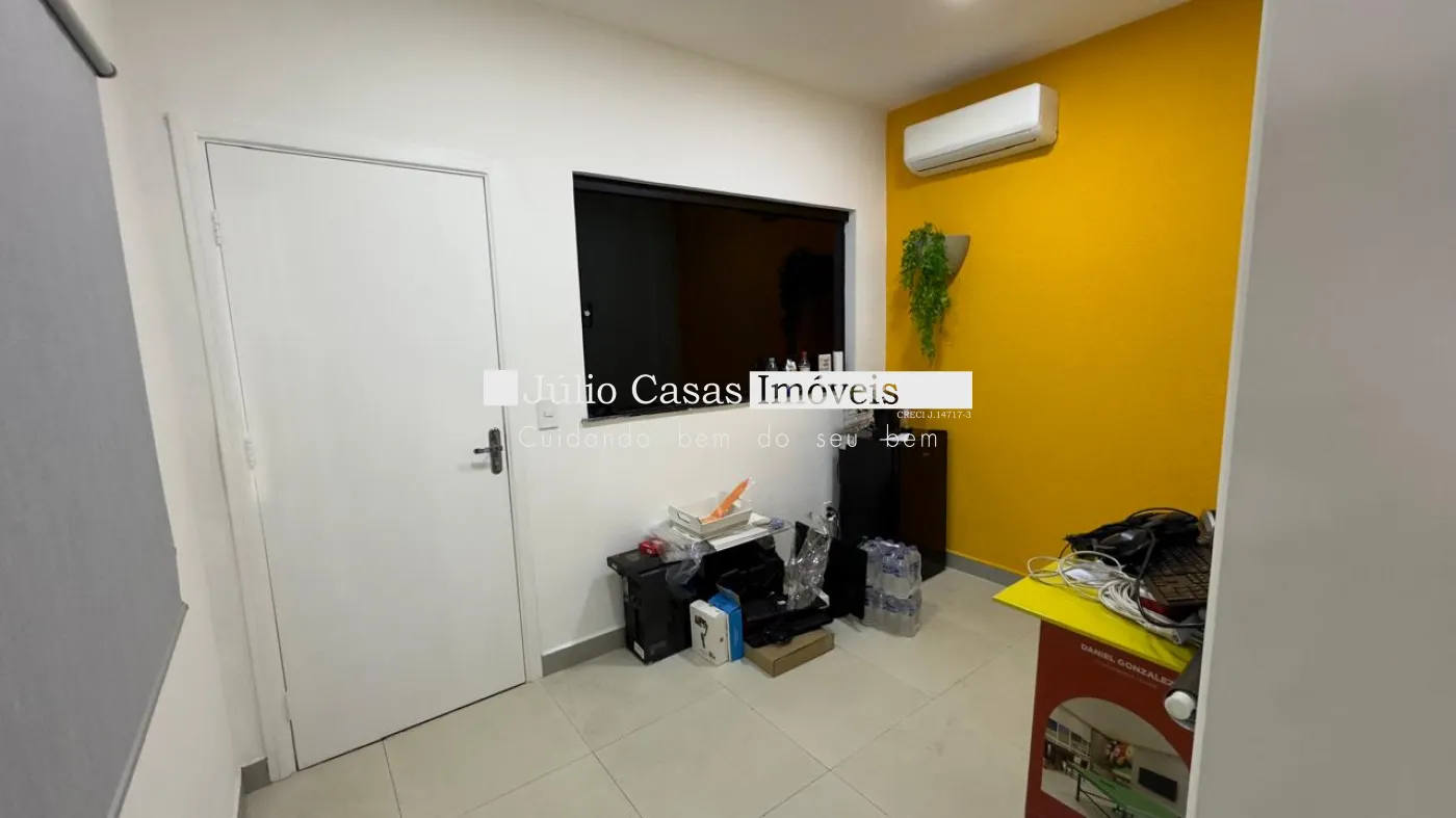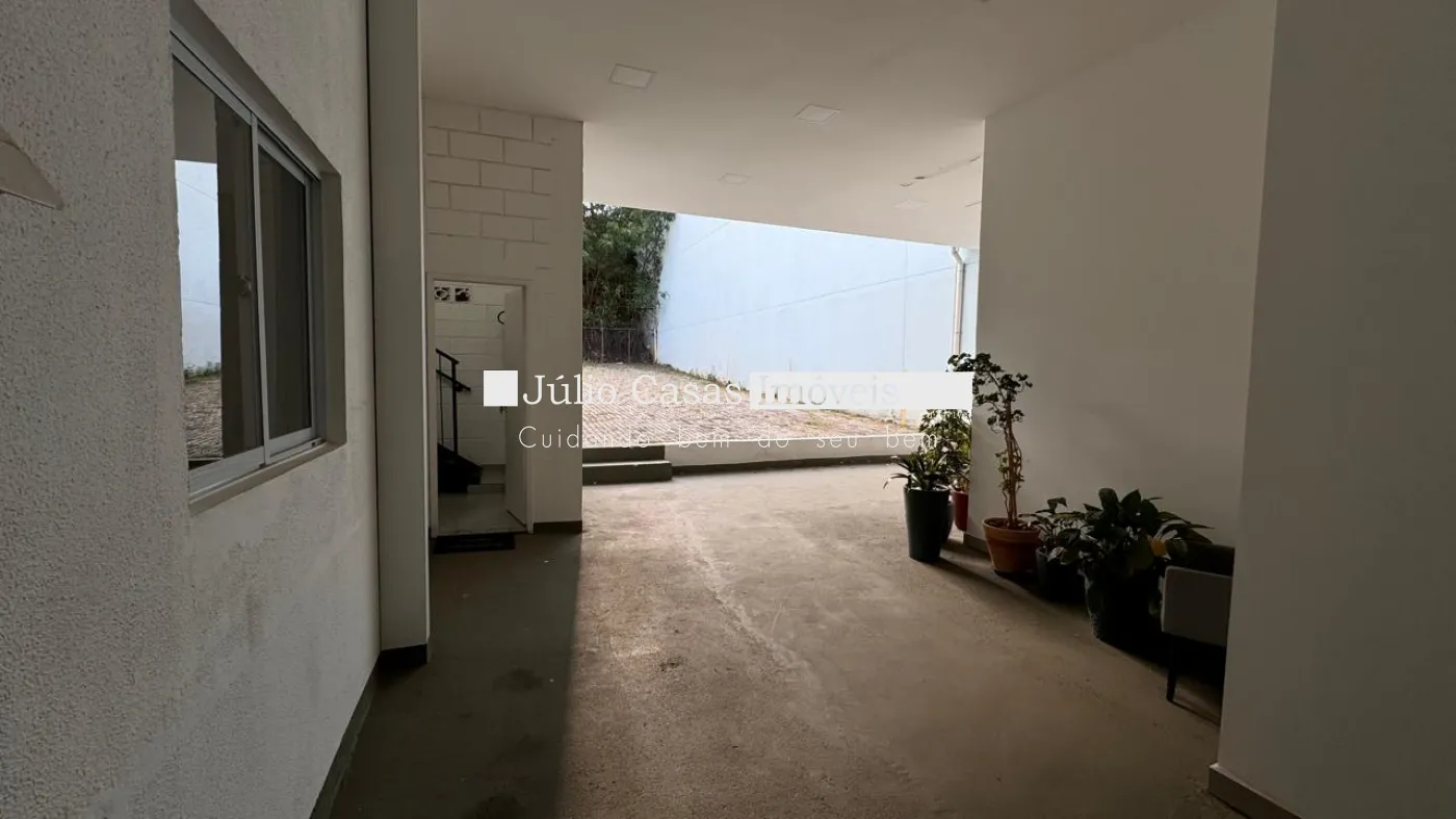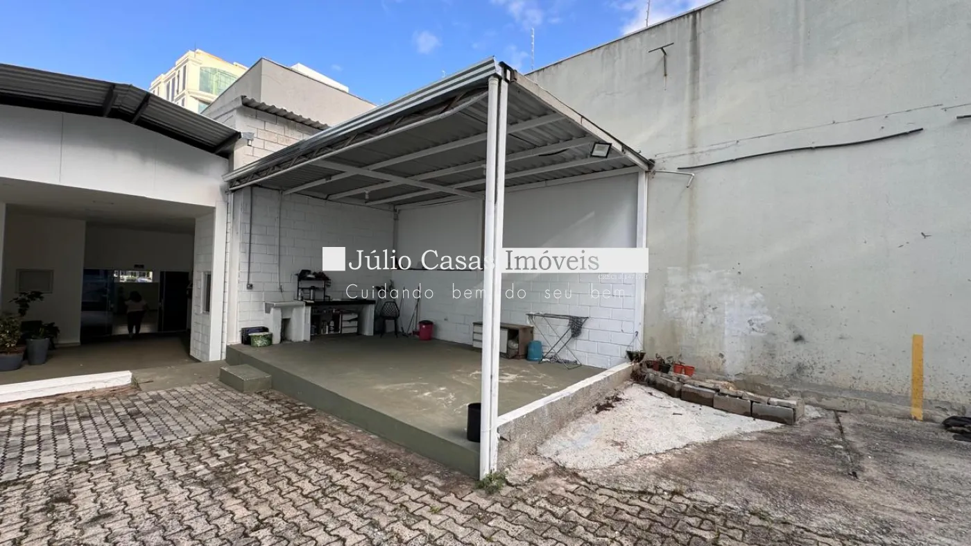 Nos fundos, há dois banheiros, um deles com acessibilidade. O espaço também conta com um box coberto para lavagem de carros e duas salas que podem ser utilizadas como escritório ou depósito.