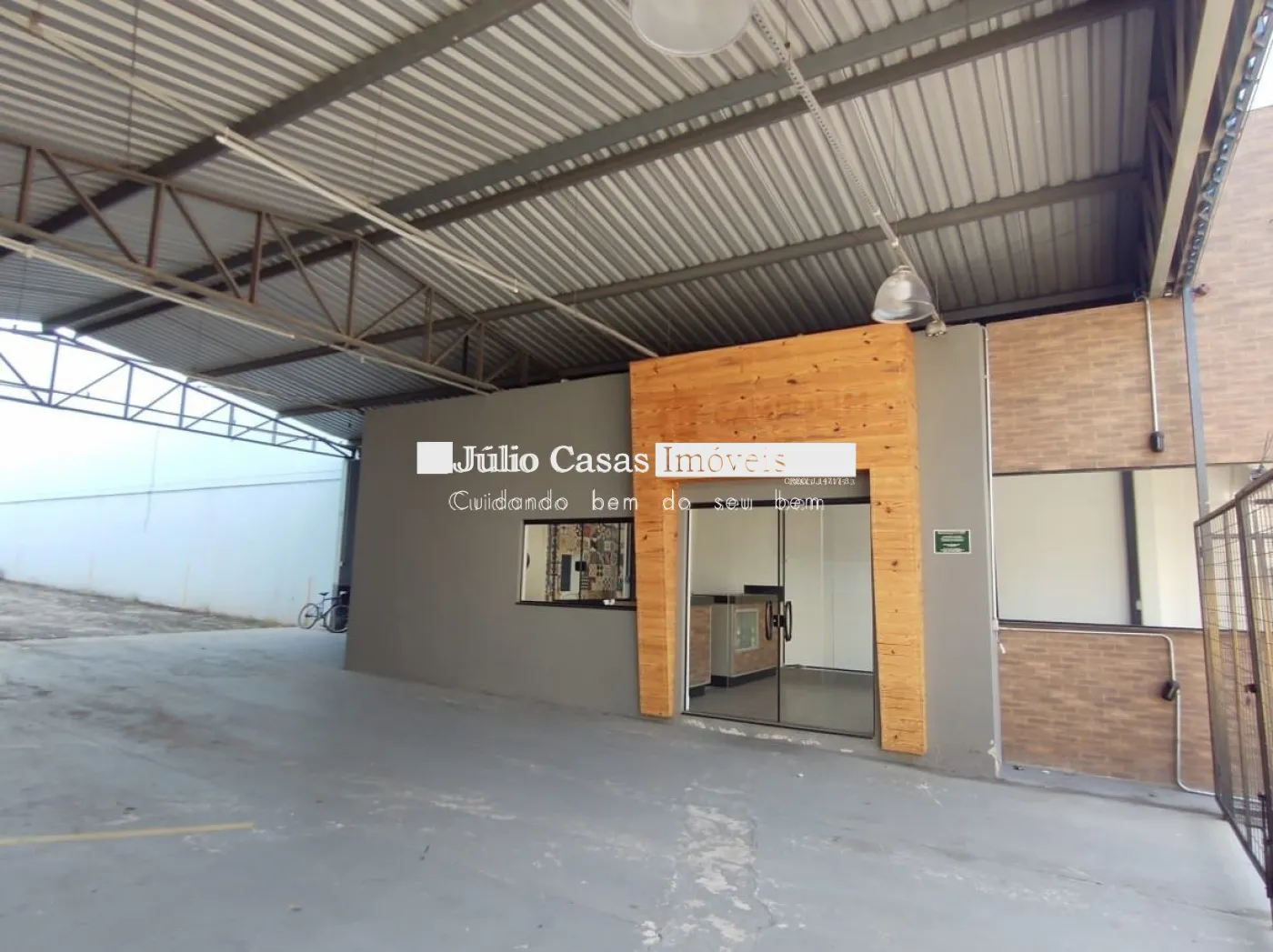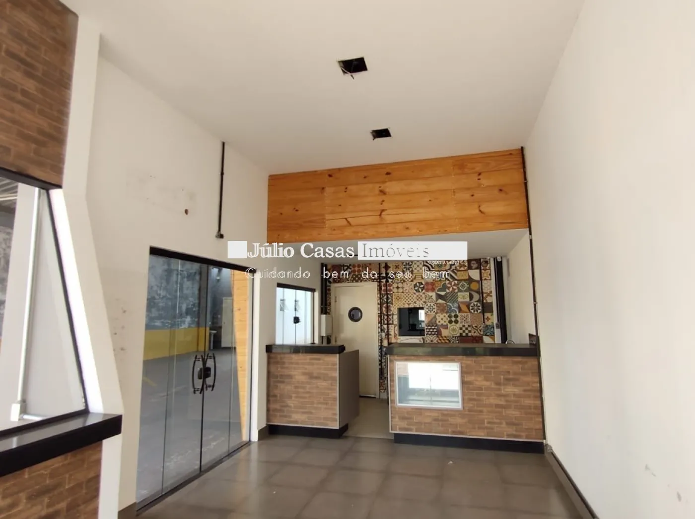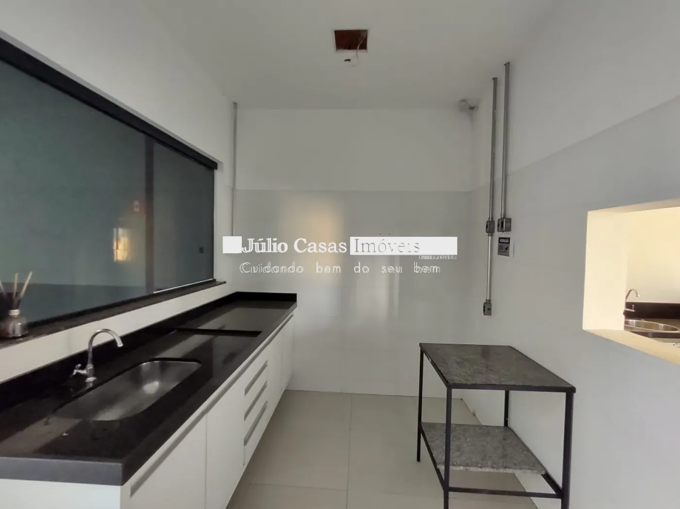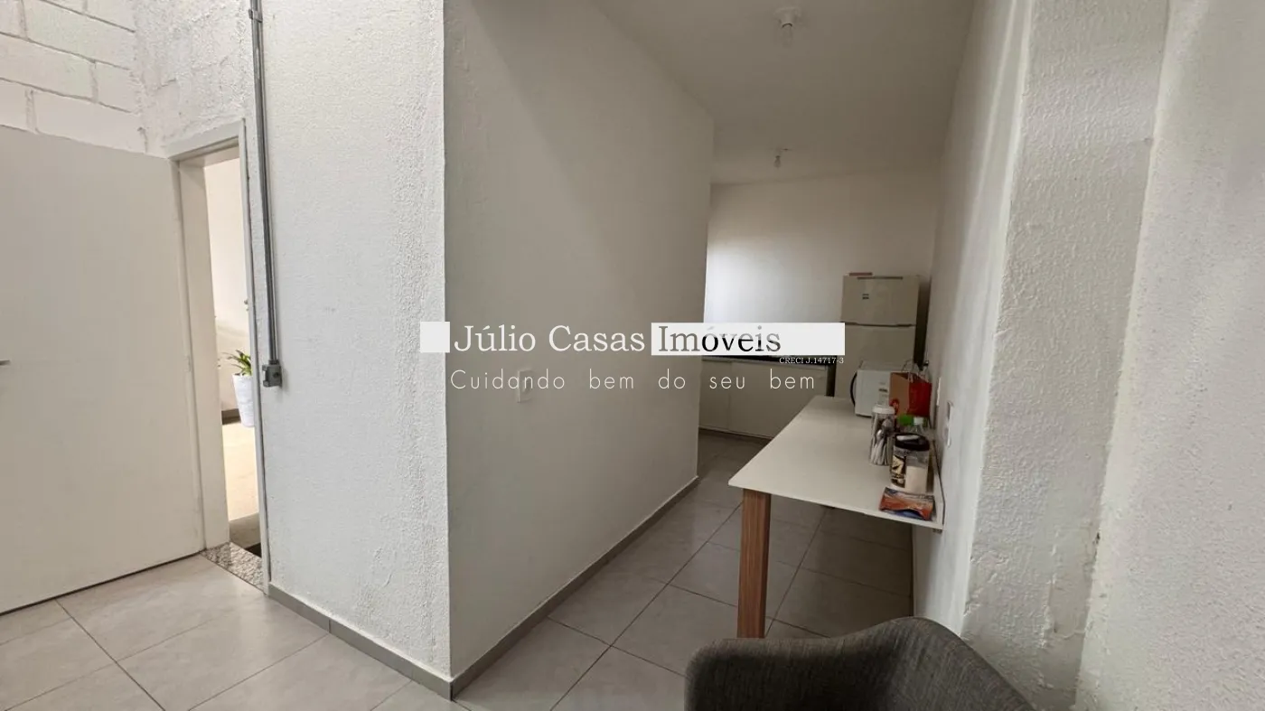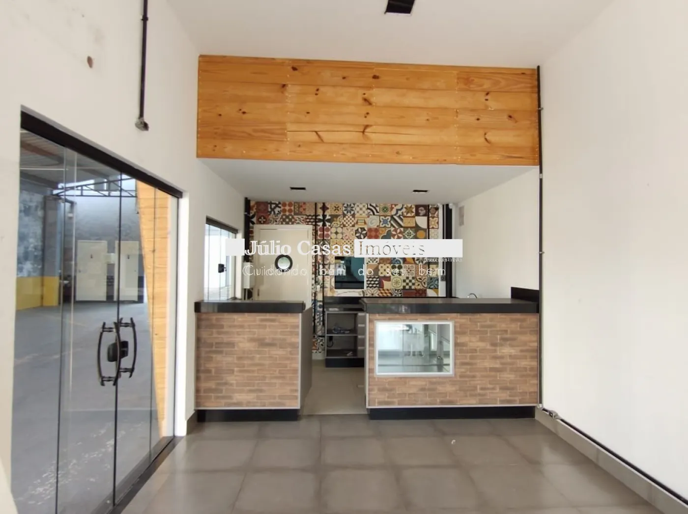Nos fundos, há dois banheiros, um deles com acessibilidade. O espaço também conta com um box coberto para lavagem de carros e duas salas que podem ser utilizadas como escritório ou depósito.
