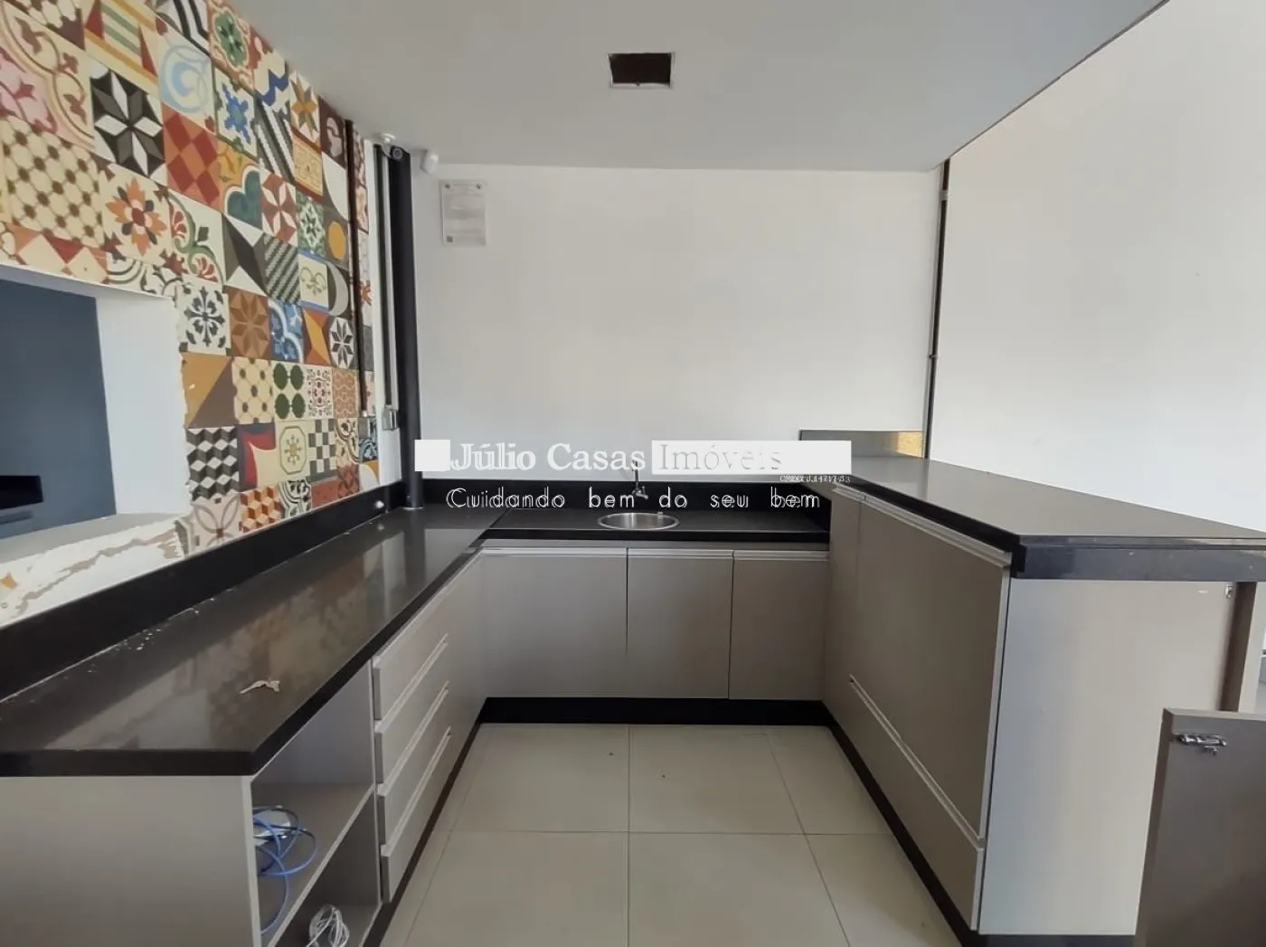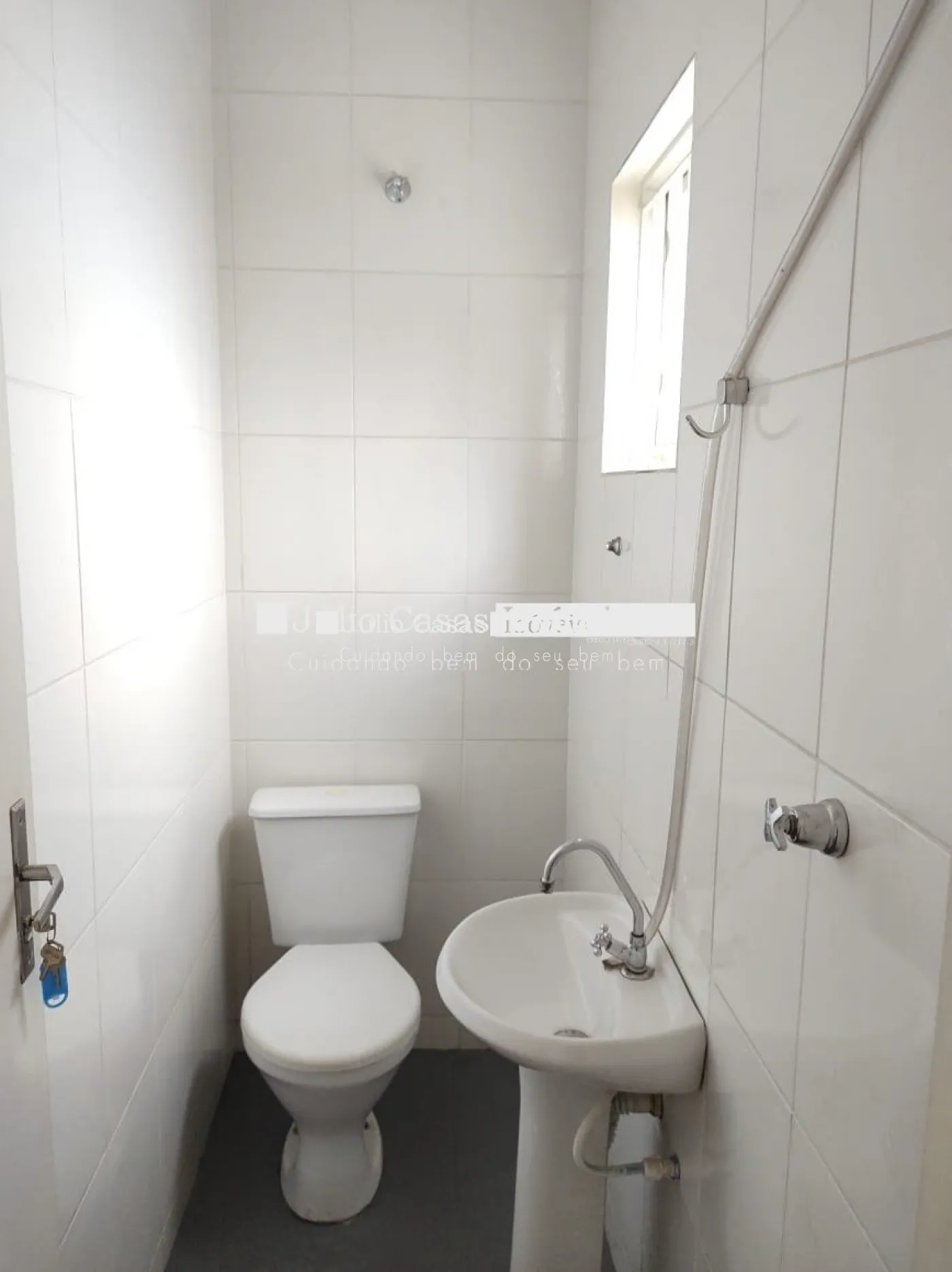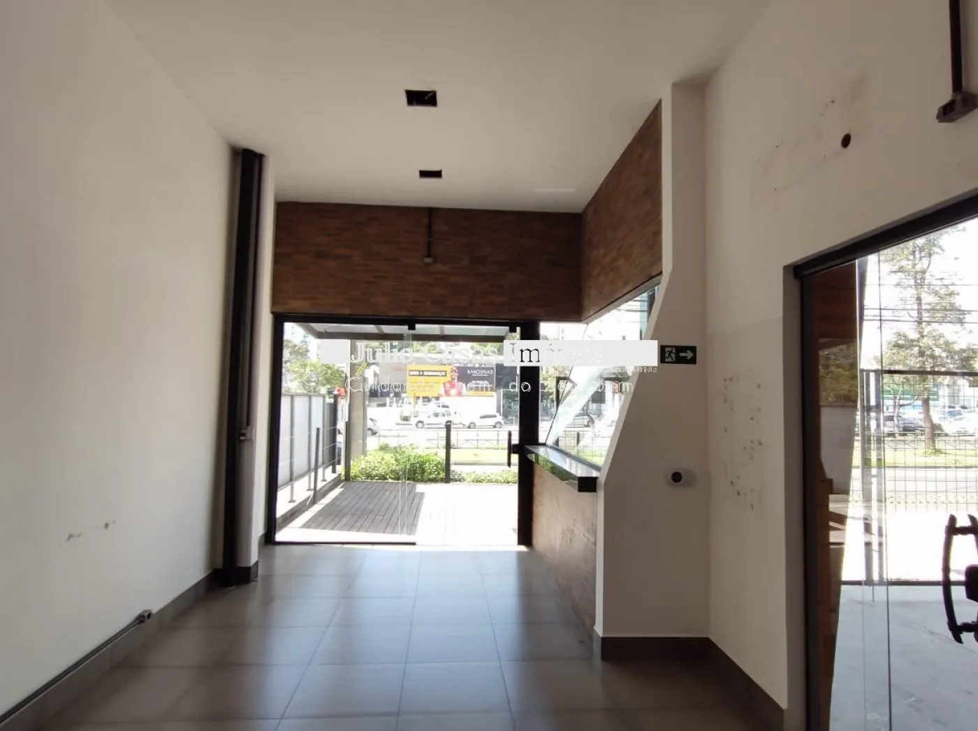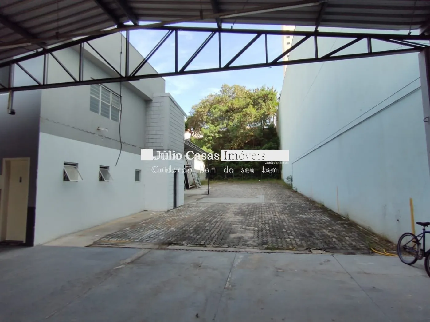Nos fundos, há dois banheiros, um deles com acessibilidade. O espaço também conta com um box coberto para lavagem de carros e duas salas que podem ser utilizadas como escritório ou depósito.