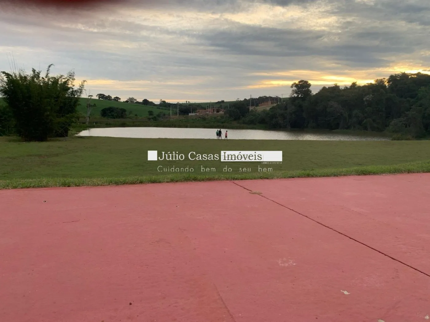 Área verde e lago em região tranquila com vista muito bonita.