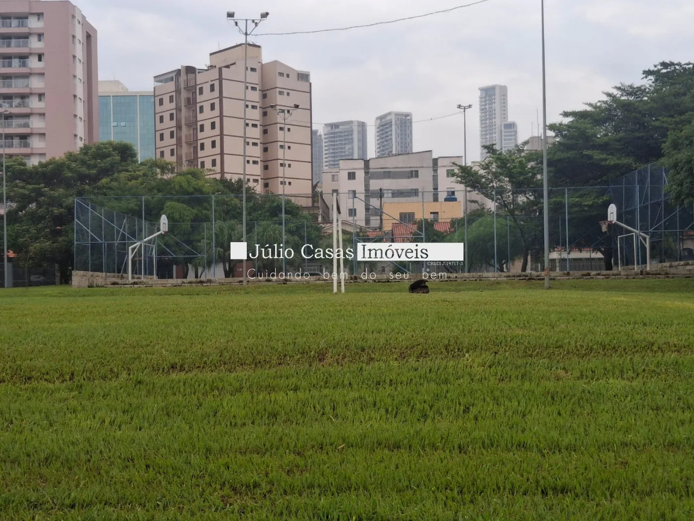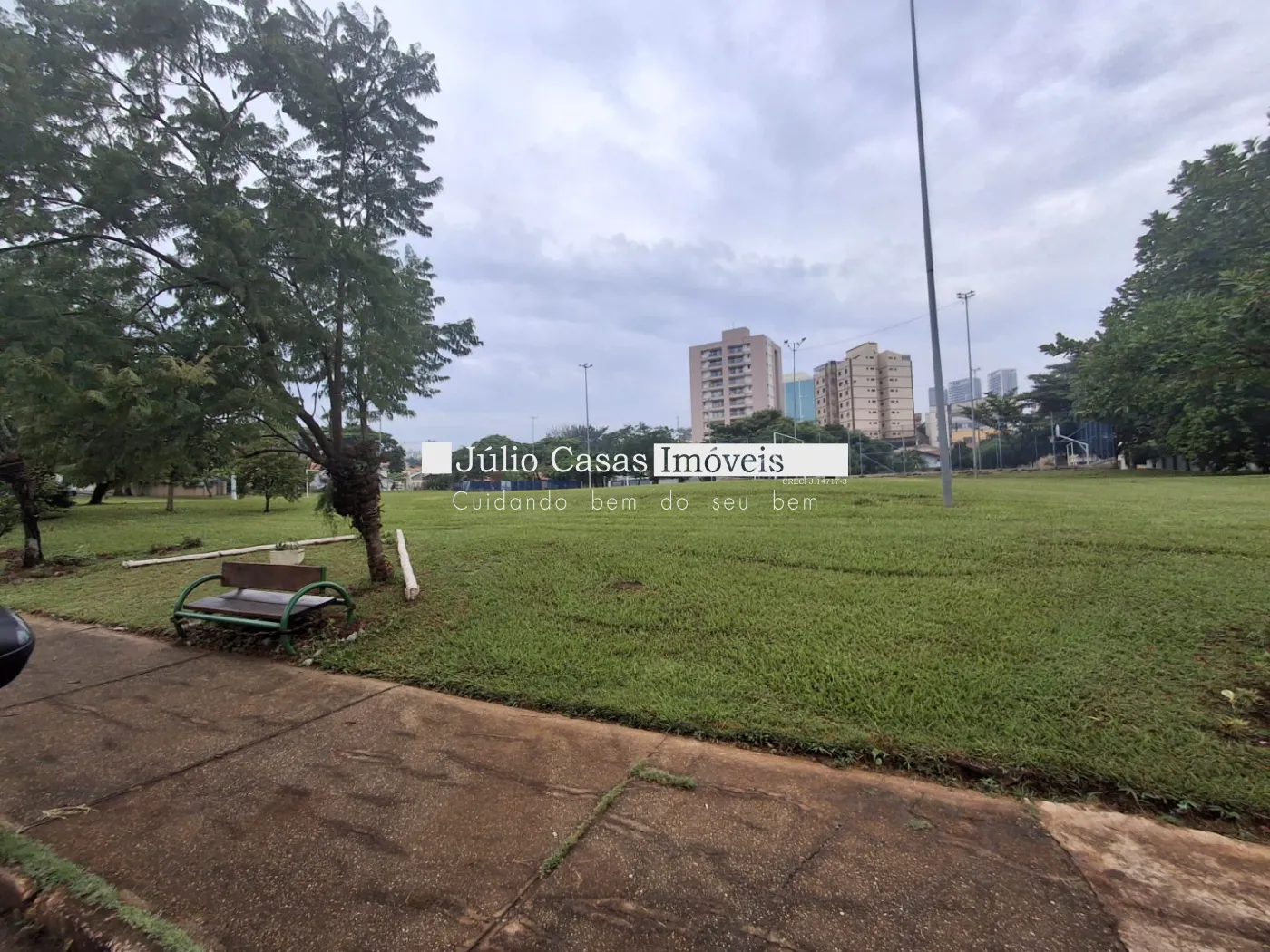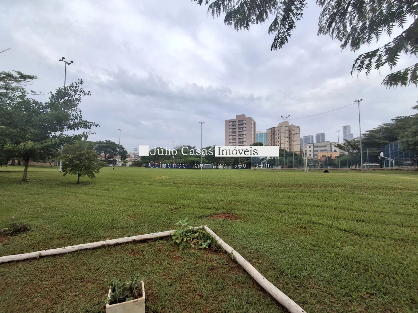 Em frente ao terreno fica uma praça muito bem cuidada com arvores e quadras poliesportiva.