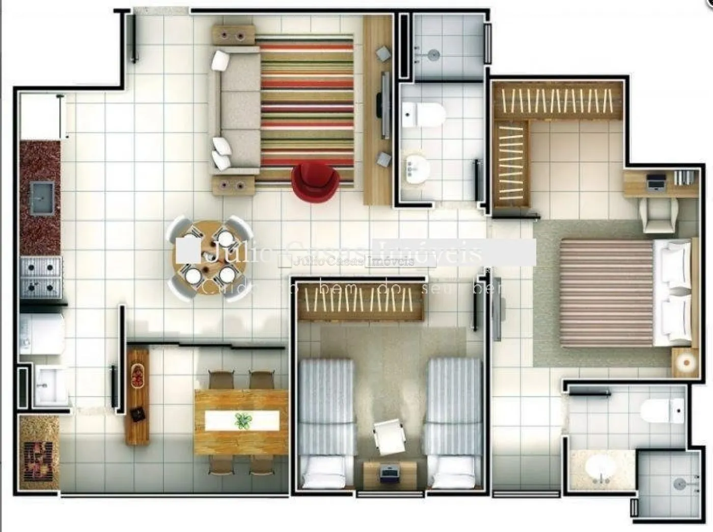 Apartamento com excelente localização, próximo a shopping, restaurantes, hipermercados e comércios em geral, sala 2 ambientes com varanda gourmet, cozinha com área de serviço, 2 dormitórios 1 sendo suíte e wc social.