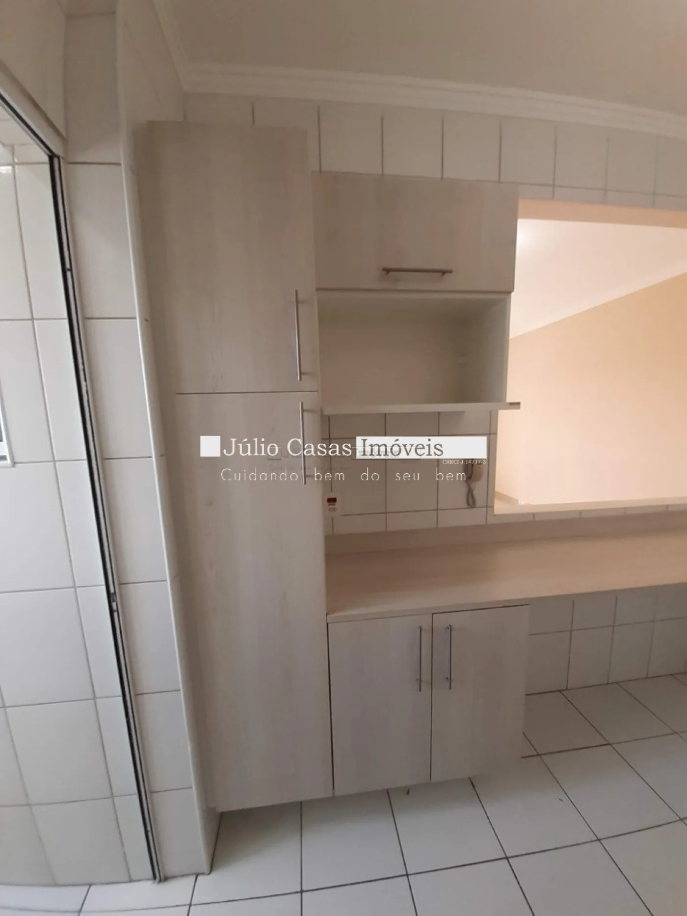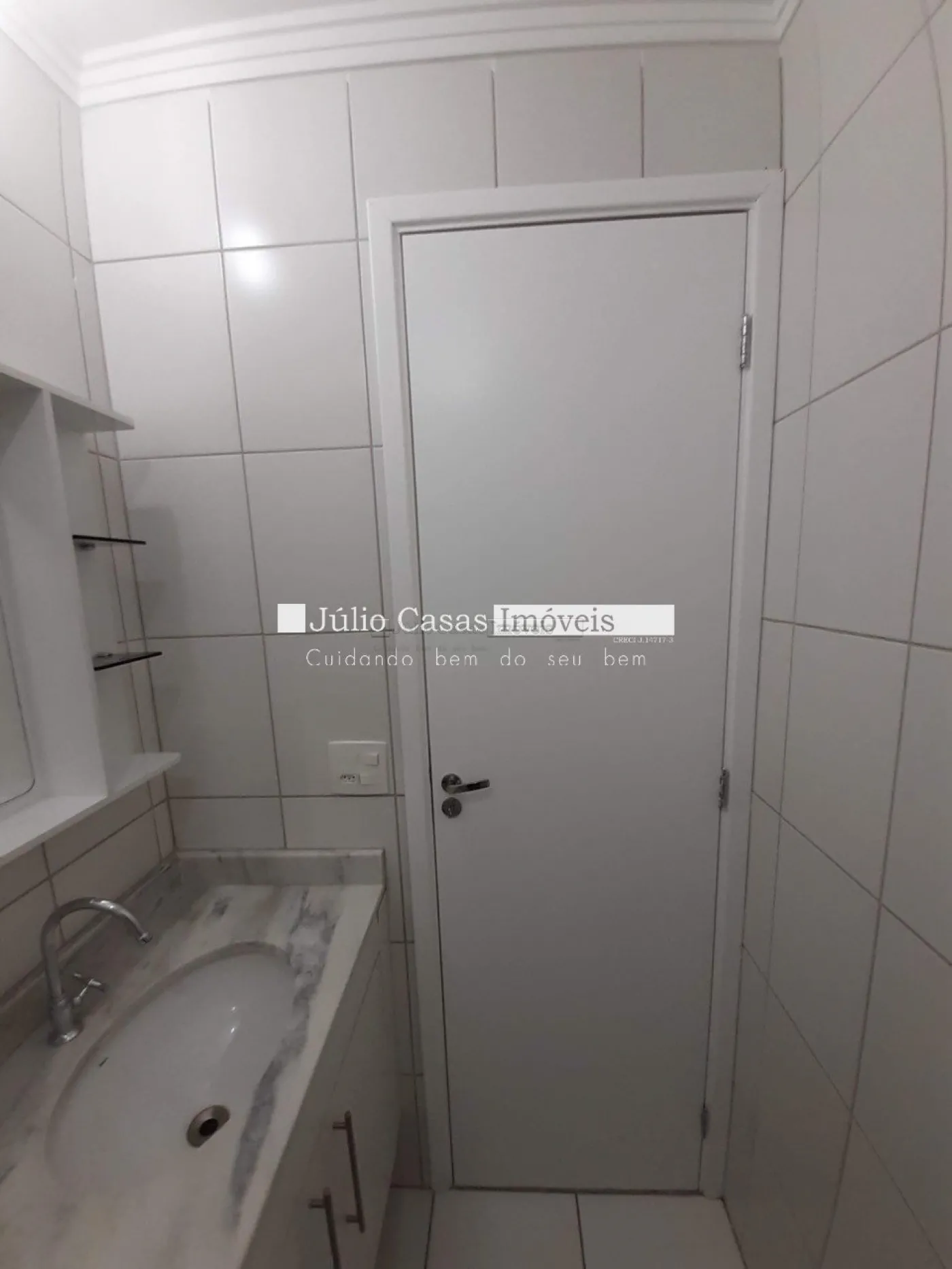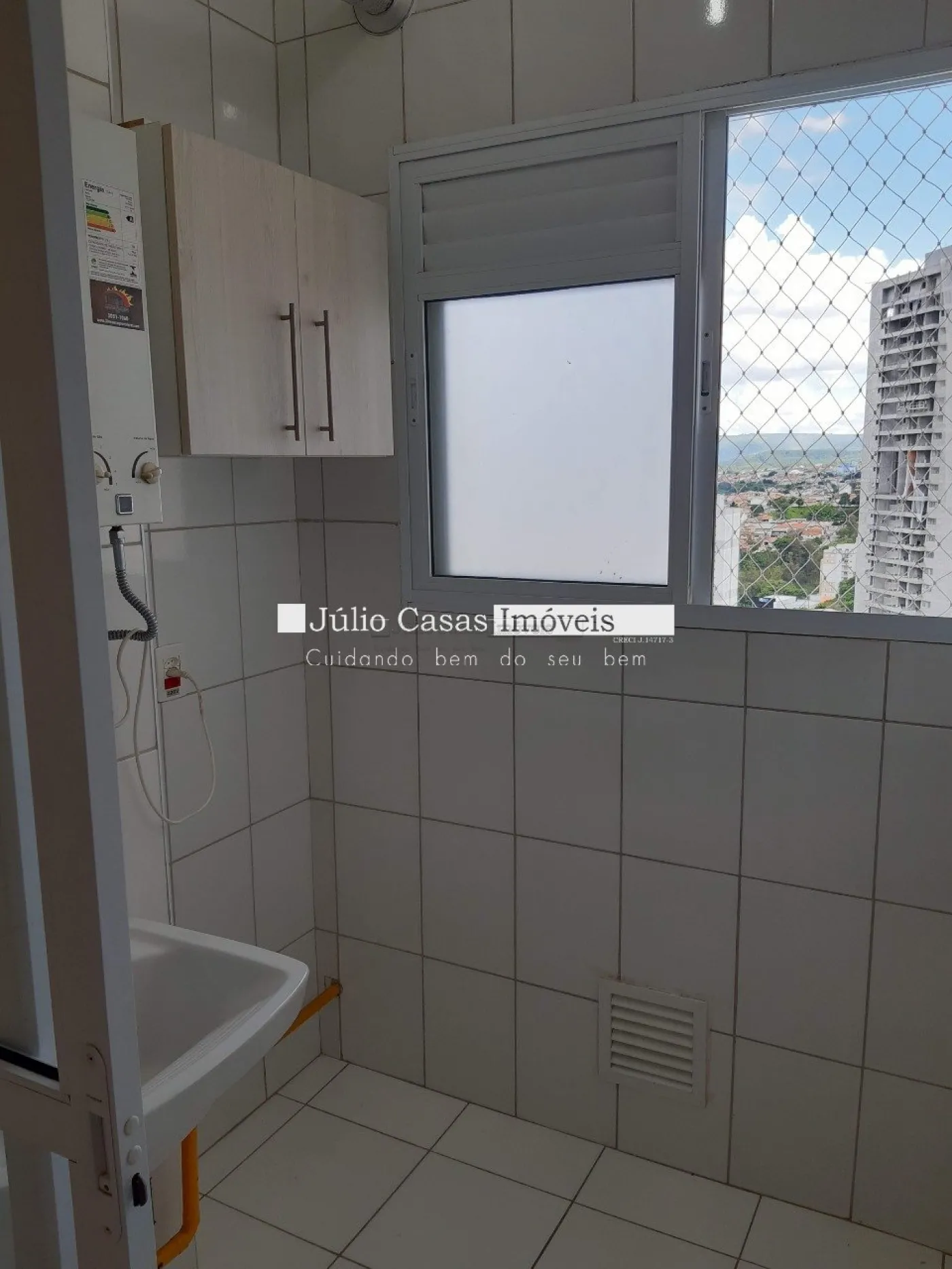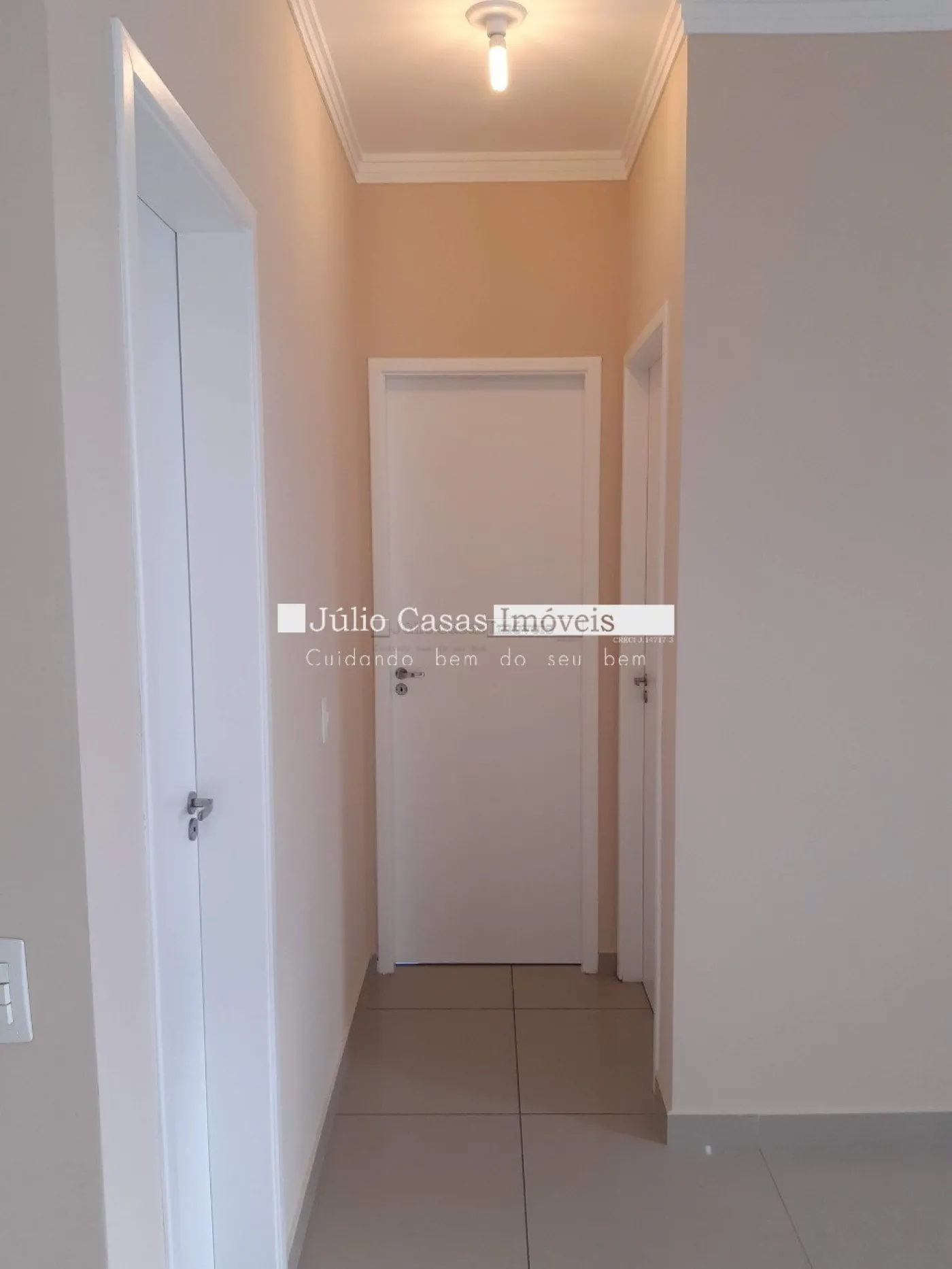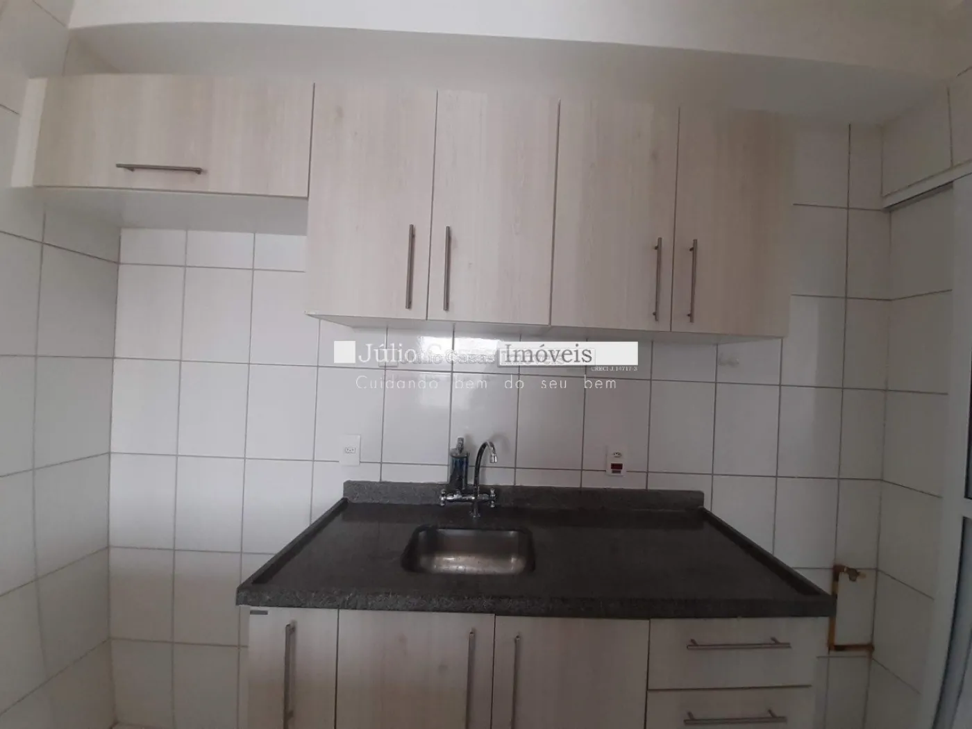 Apartamento moderno e bem planejado à venda no bairro Vossoroca, Votorantim. O imóvel possui sala de estar e jantar integradas com a cozinha estilo americana, criando um ambiente amplo e funcional, além de uma varanda com porta de alumínio e vidro temperado, com acabamento em moldura de gesso. A cozinha é equipada com armários modulados e piso frio, e conta com uma porta de correr em vidro que separa a cozinha da área de serviço. Esta última também possui armário e piso em cerâmica.