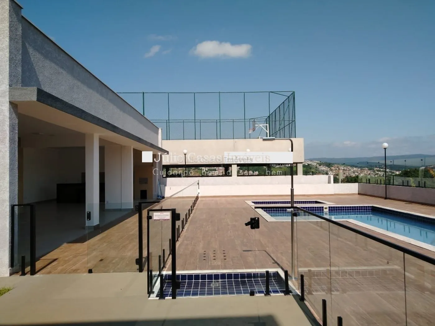 Condomínio com piscina, salão de festas, quadra poliesportiva, playground e churrasqueira.