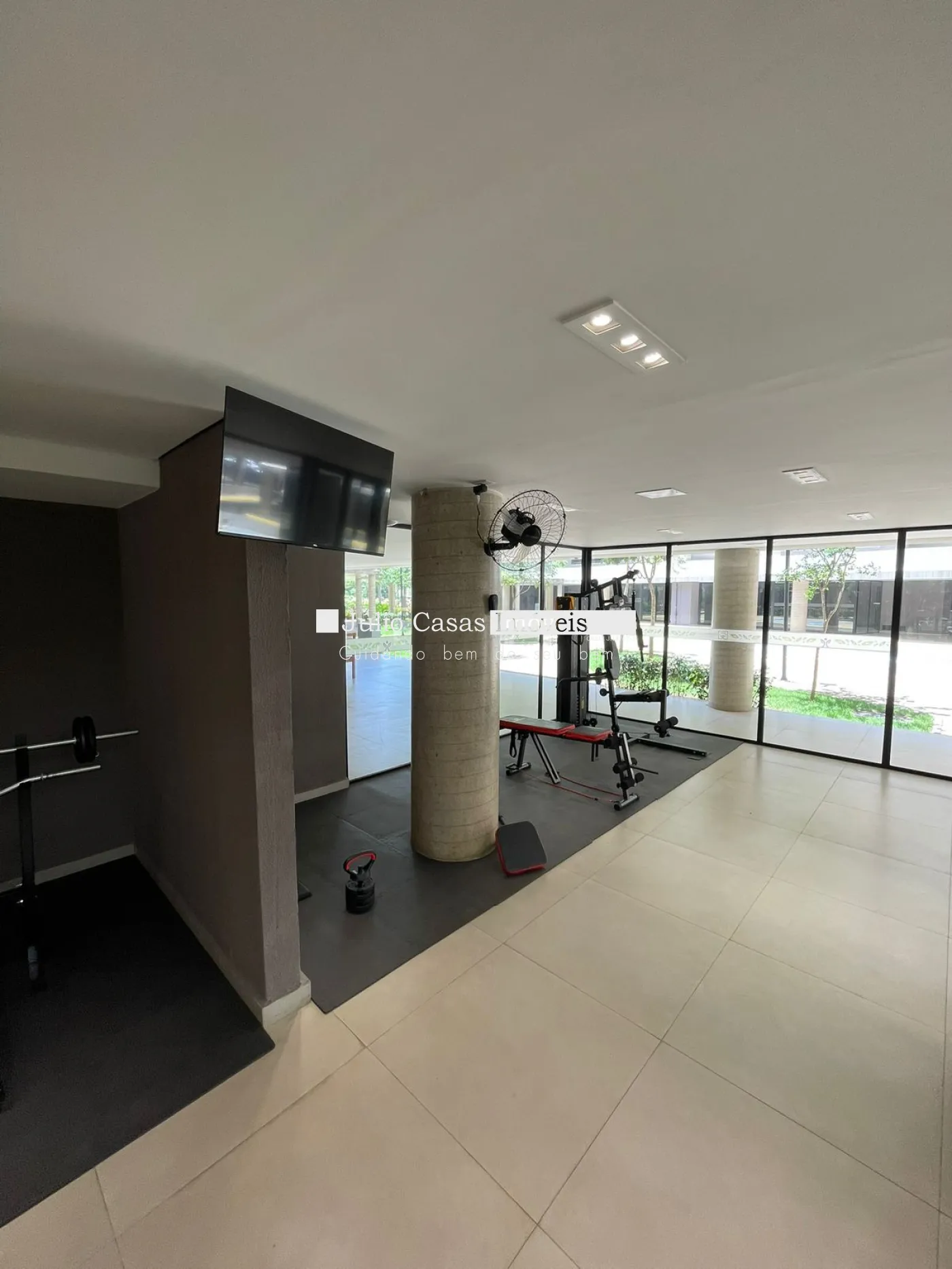 - Academia equipada com som Bluetooth e Smart TV