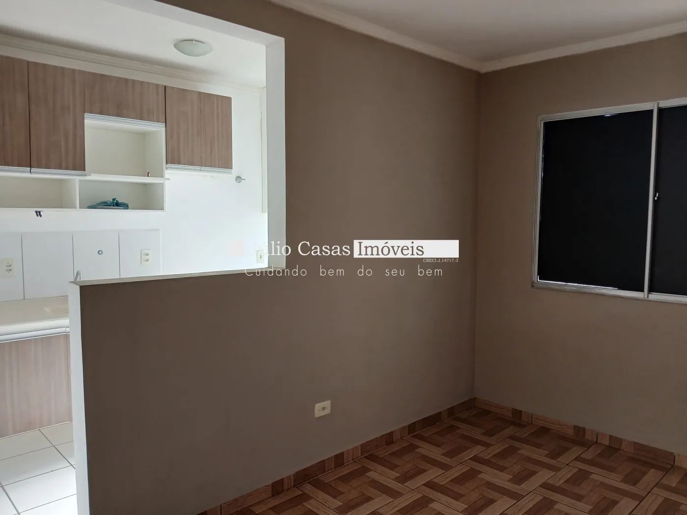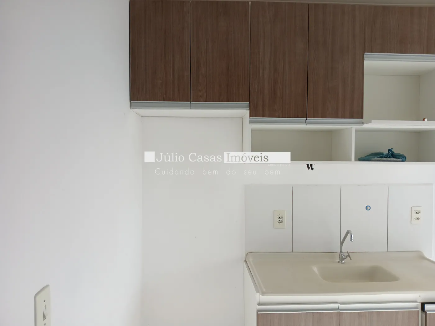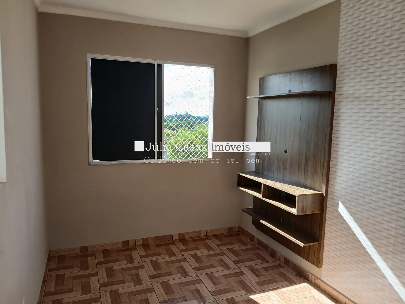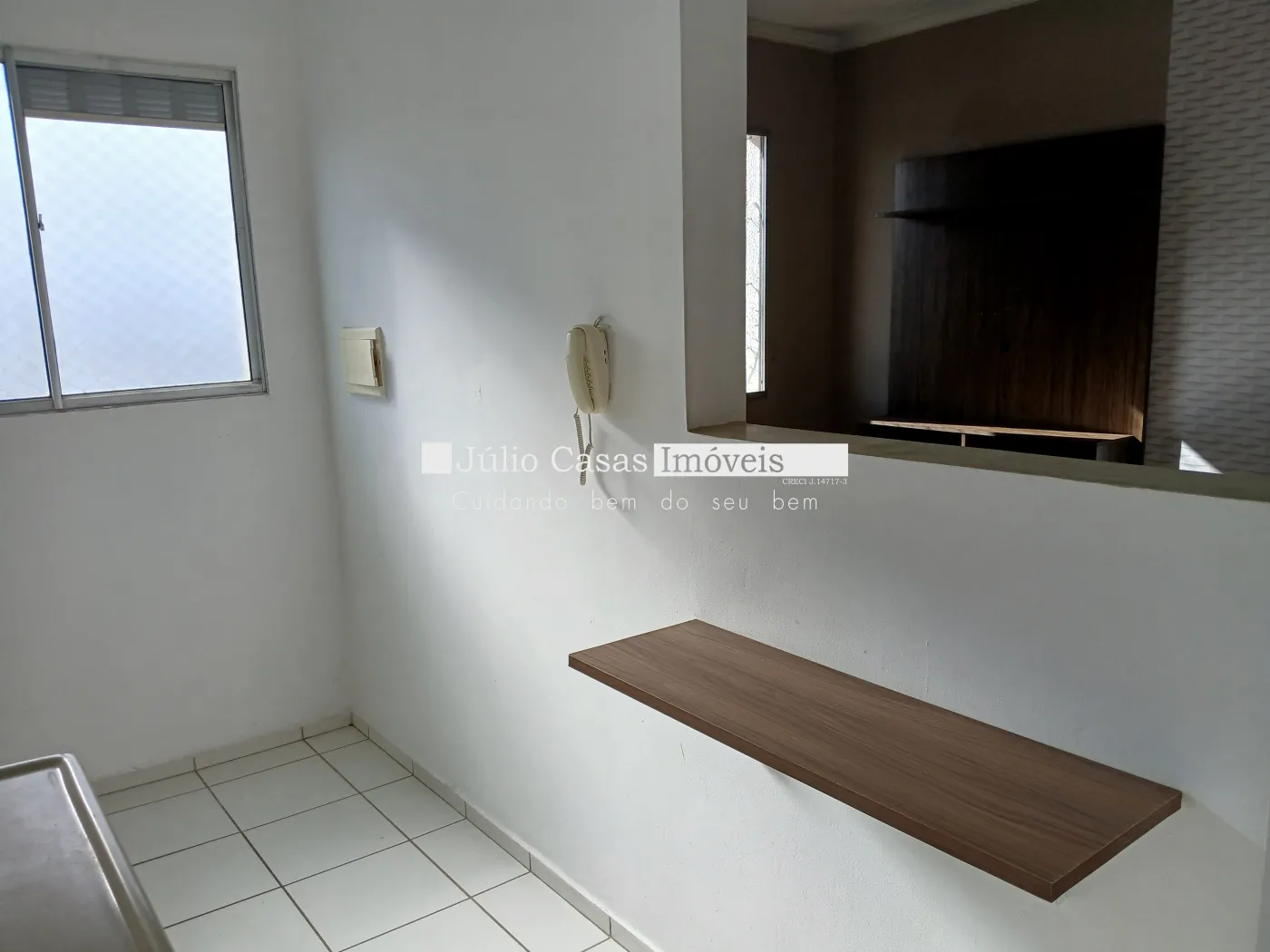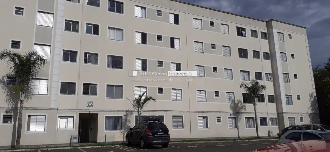 Apartamento próximo ao Campolim. Apto de 2 Dormitórios, Sala com vista para a rua, com Painel de Televisão, Cozinha com armário planejado, balcão de madeira, Lavanderia com armário, Banheiro com Box de Vidro.