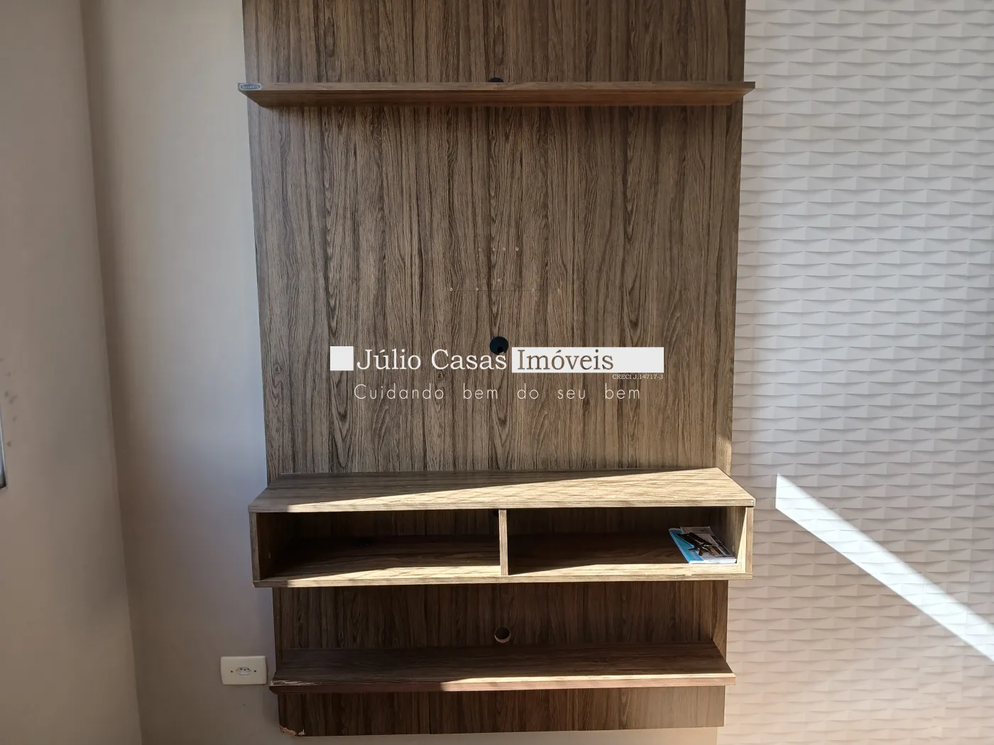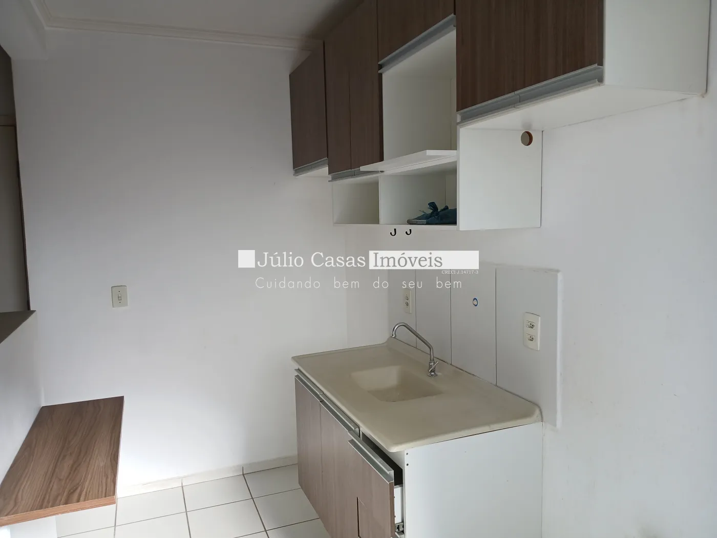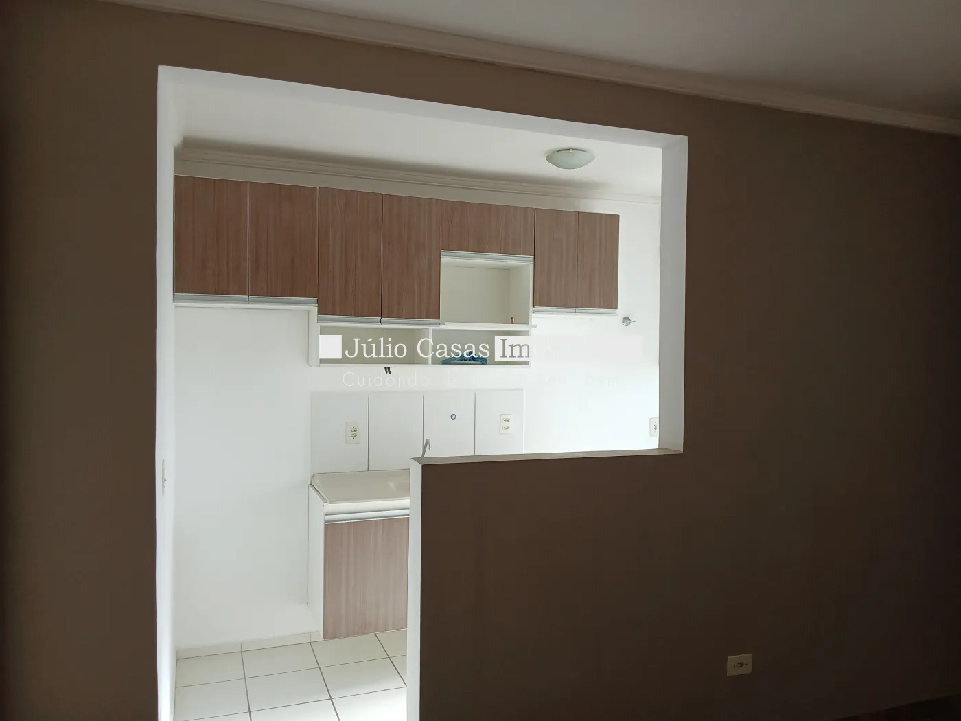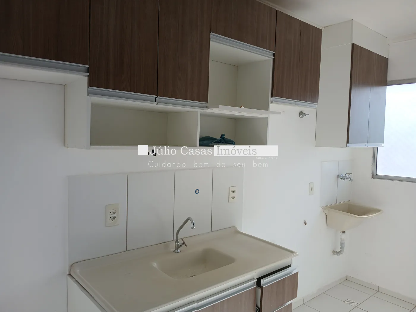 Apartamento próximo ao Campolim. Apto de 2 Dormitórios, Sala com vista para a rua, com Painel de Televisão, Cozinha com armário planejado, balcão de madeira, Lavanderia com armário, Banheiro com Box de Vidro.