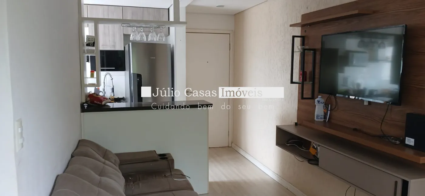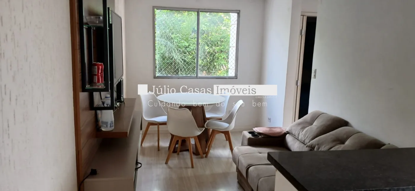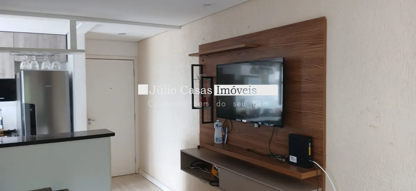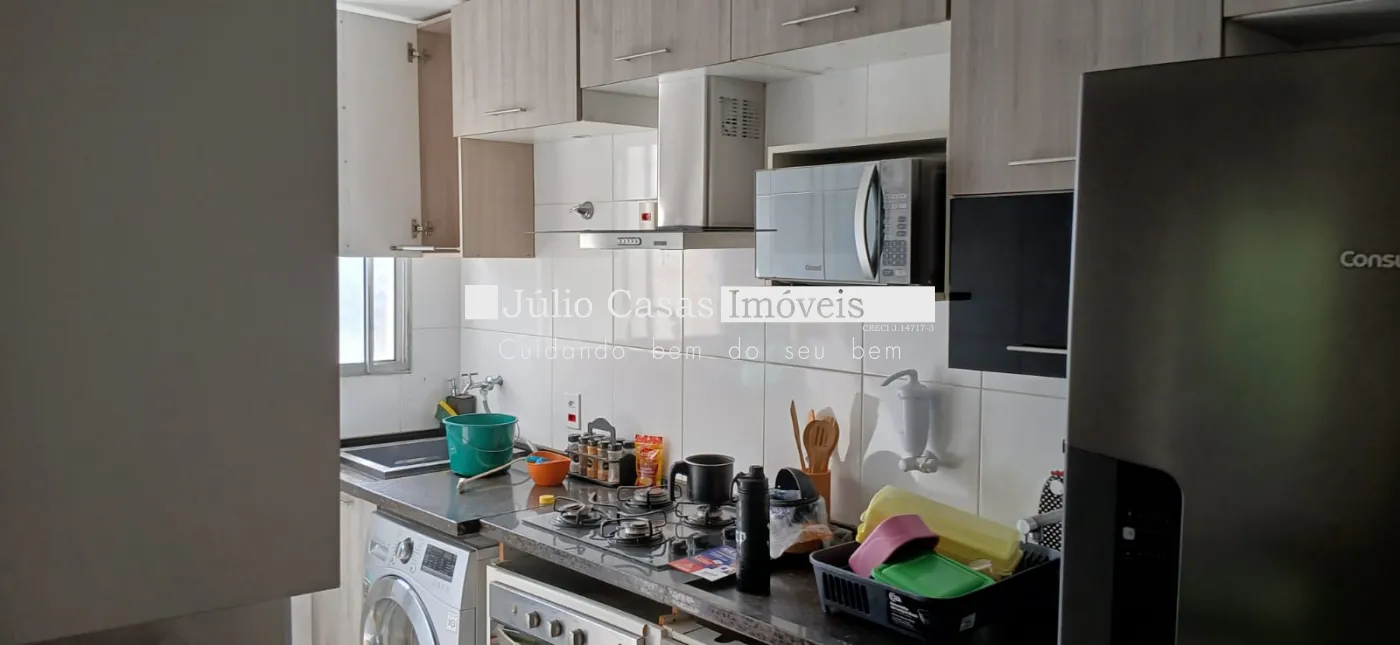 Imóvel com sala dois ambientes, com móveis planejados, piso revestido em laminado de madeira, teto em gesso e luminárias embutidas. Cozinha americana com piso e azulejos cerâmicos, balcão com tampo em granito com cooktop, forno embutido e armários modulados, área de serviço, dois dormitórios com armários planejados, ventilador de teto, piso em laminado de madeira e banheiro social com box em vidro temperado. Todas as janelas são em alumínio, uma vaga de garagem descoberta. O Condomínio possui piscina coletiva, academia, salão de festas, quiosques, feira-livre às sextas feiras e muita área verde. Em excelente localização, há 5 minutos do Shopping Esplanada e Tauste Campolim.
