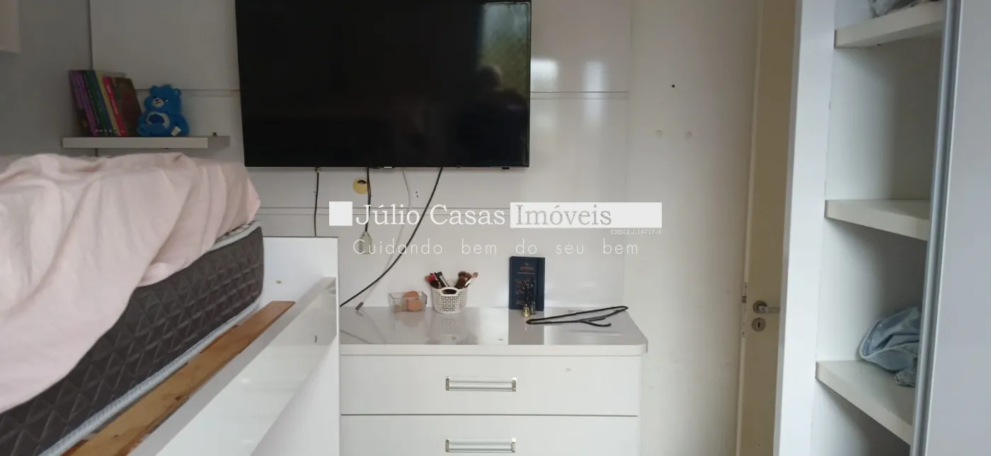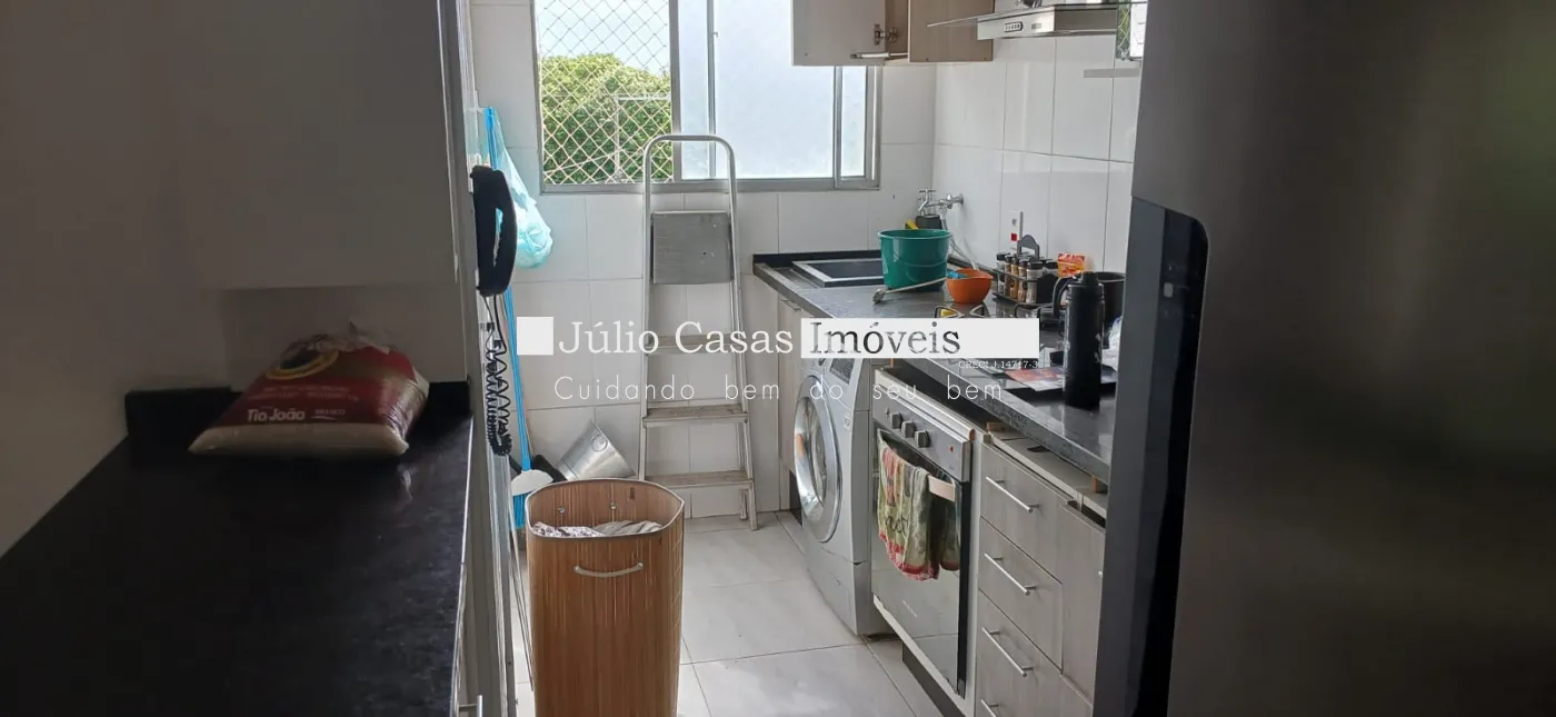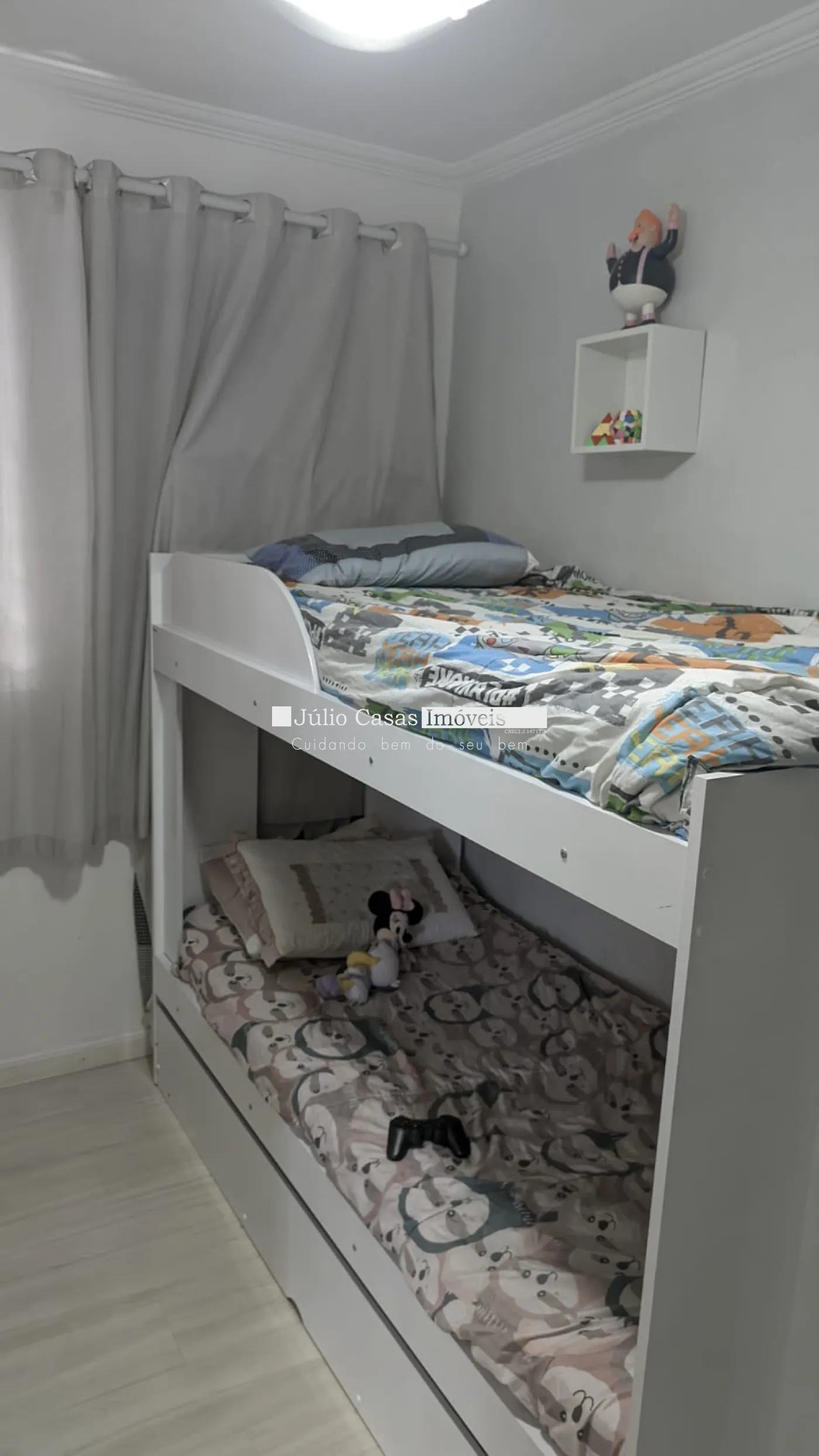 Imóvel com sala dois ambientes, com móveis planejados, piso revestido em laminado de madeira, teto em gesso e luminárias embutidas. Cozinha americana com piso e azulejos cerâmicos, balcão com tampo em granito com cooktop, forno embutido e armários modulados, área de serviço, dois dormitórios com armários planejados, ventilador de teto, piso em laminado de madeira e banheiro social com box em vidro temperado. Todas as janelas são em alumínio, uma vaga de garagem descoberta. O Condomínio possui piscina coletiva, academia, salão de festas, quiosques, feira-livre às sextas feiras e muita área verde. Em excelente localização, há 5 minutos do Shopping Esplanada e Tauste Campolim.