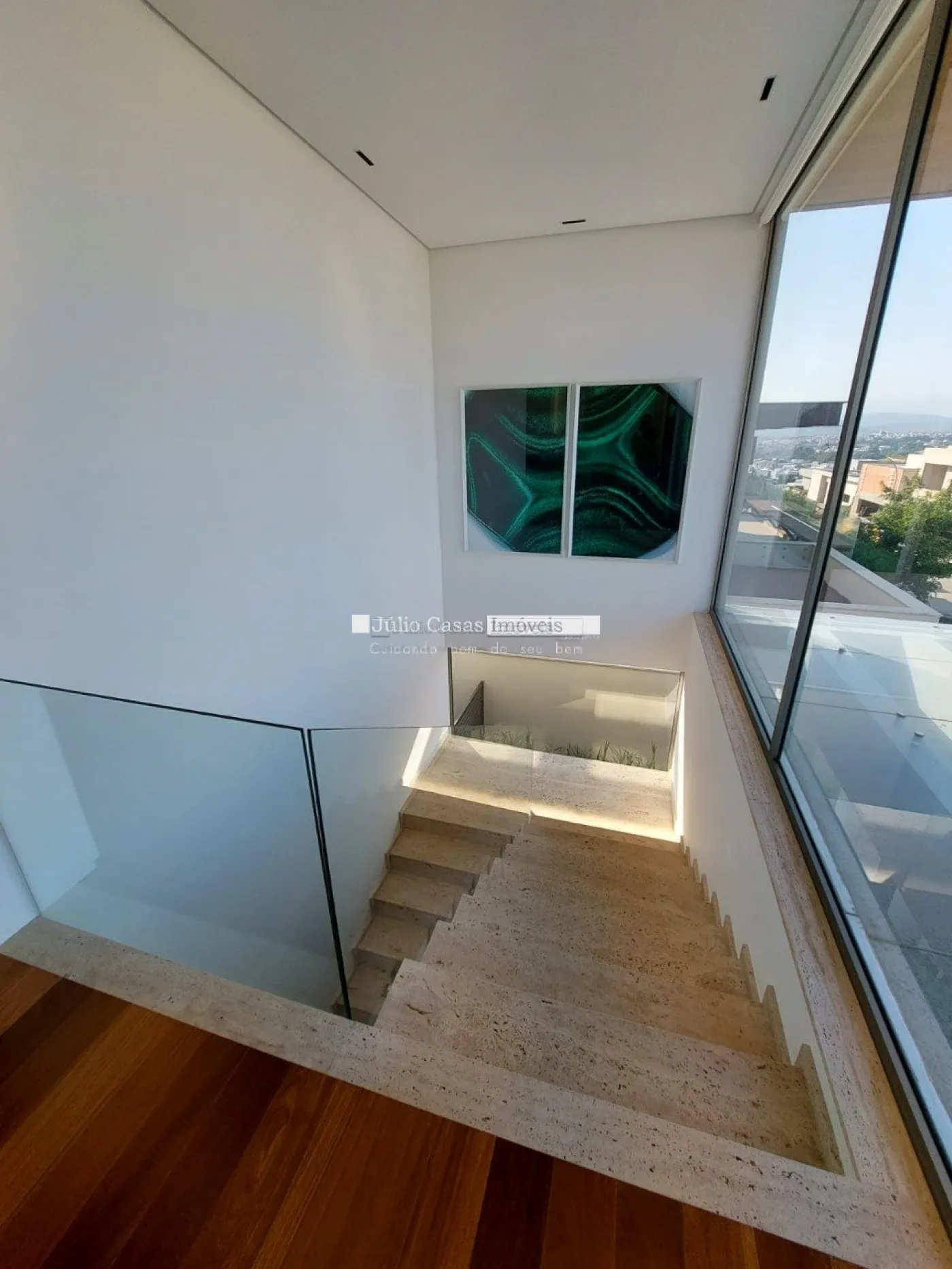 Escada e lareira em travertino