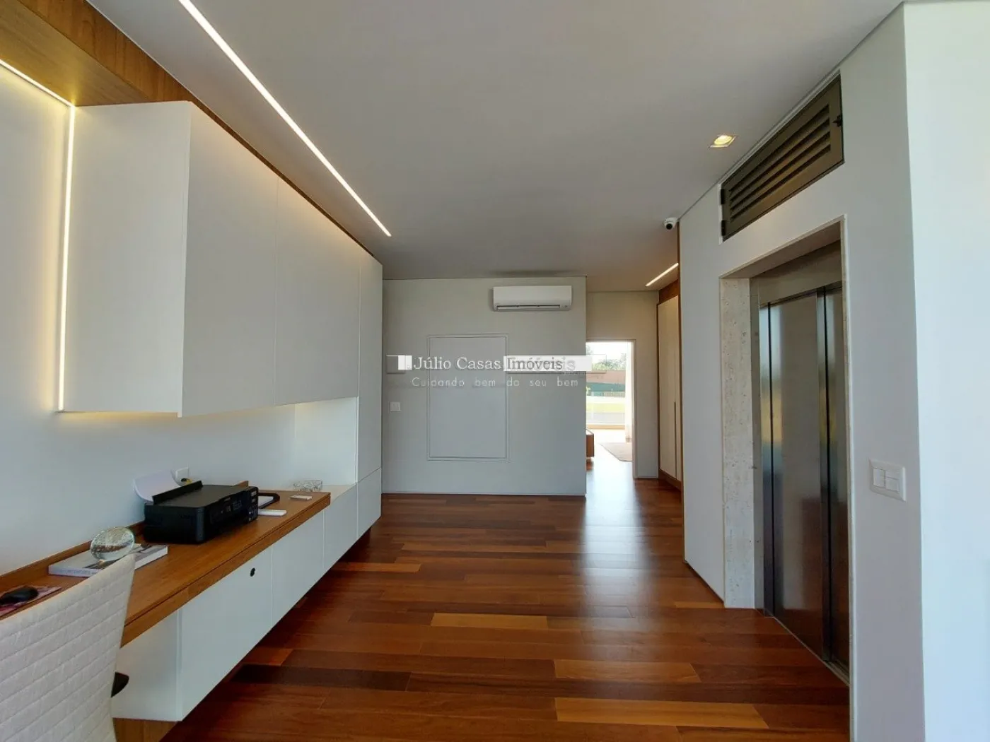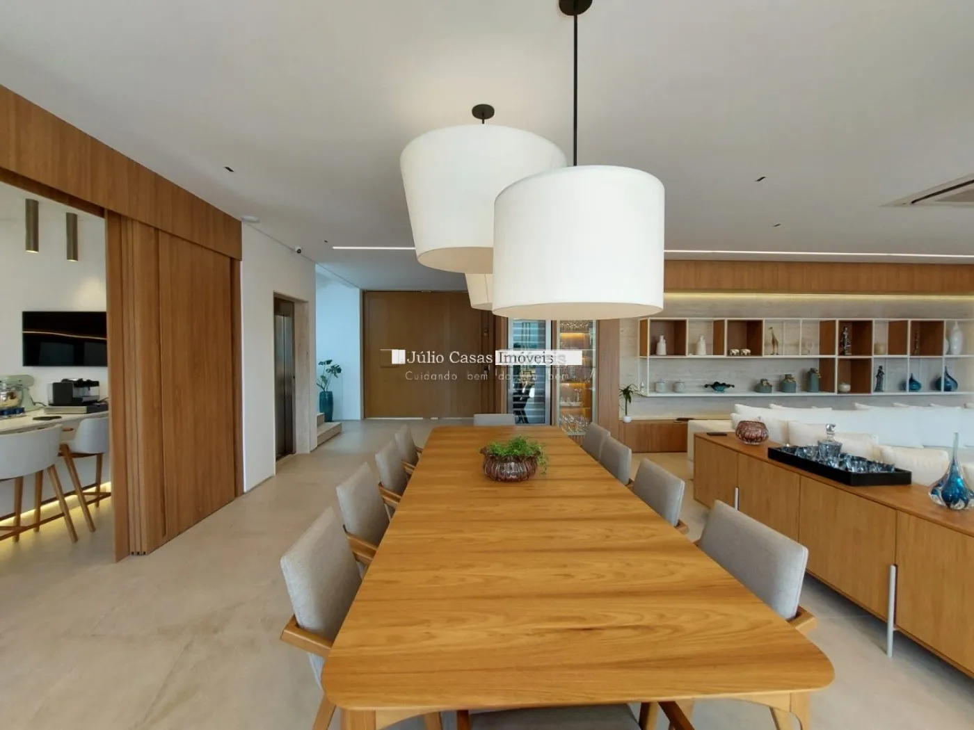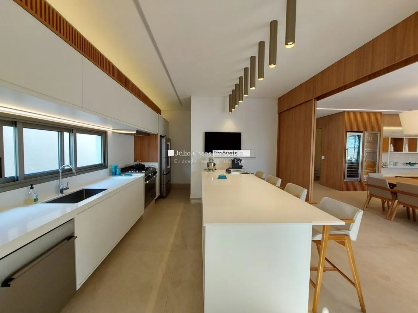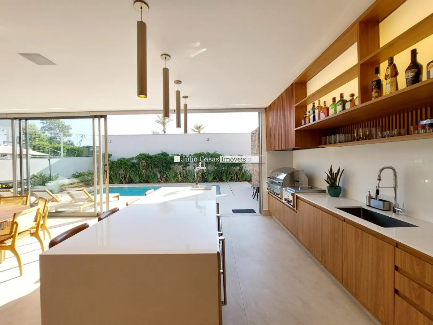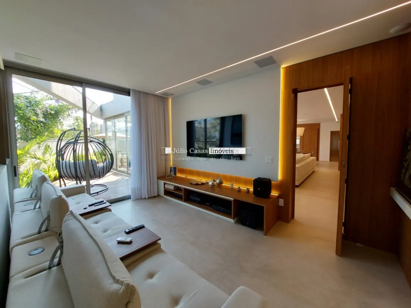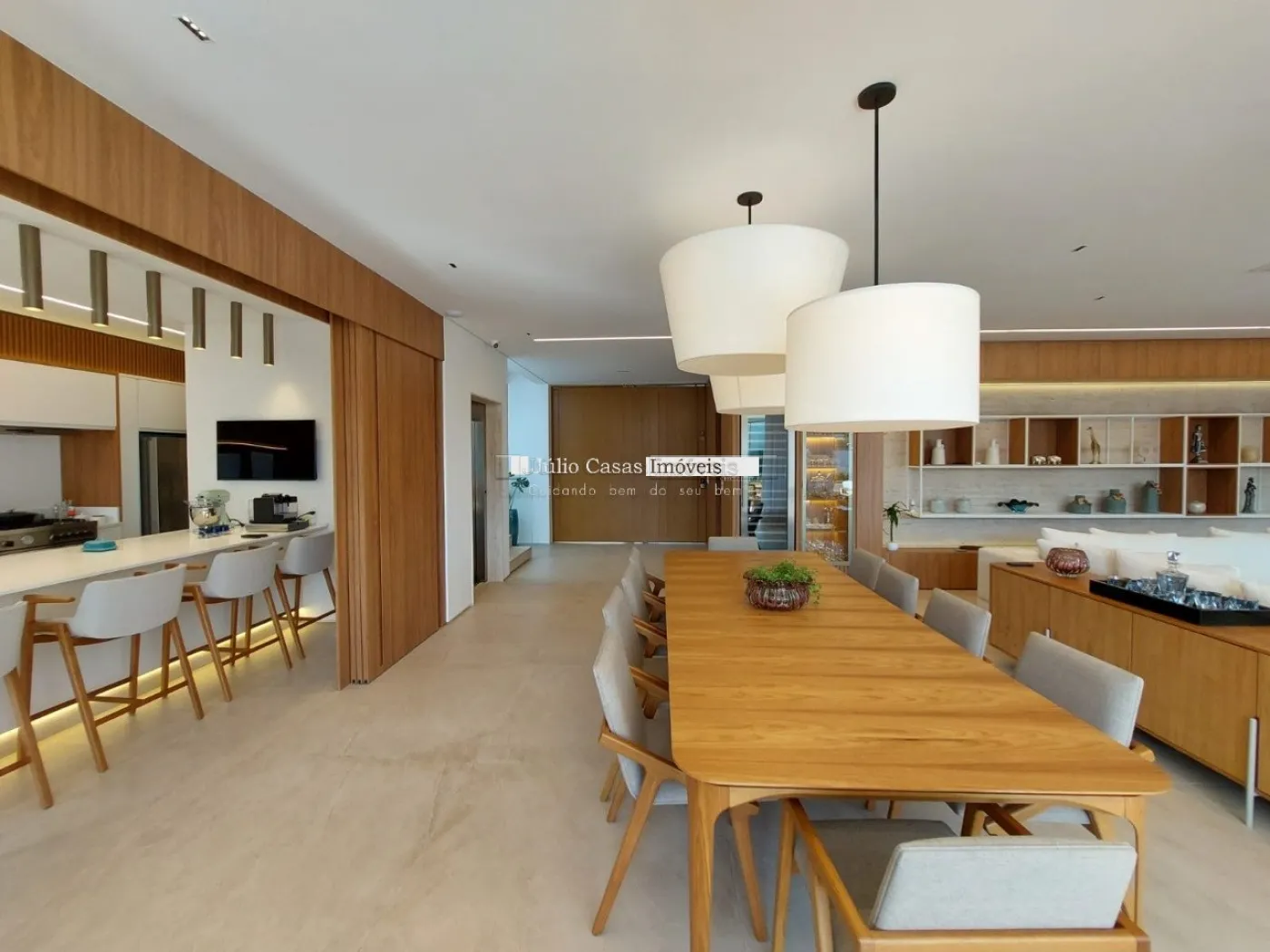 chopeira retrátil no teto, lareira ecológica, ar condicionado split Casset e cortinas automatizadas.