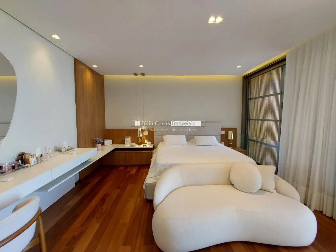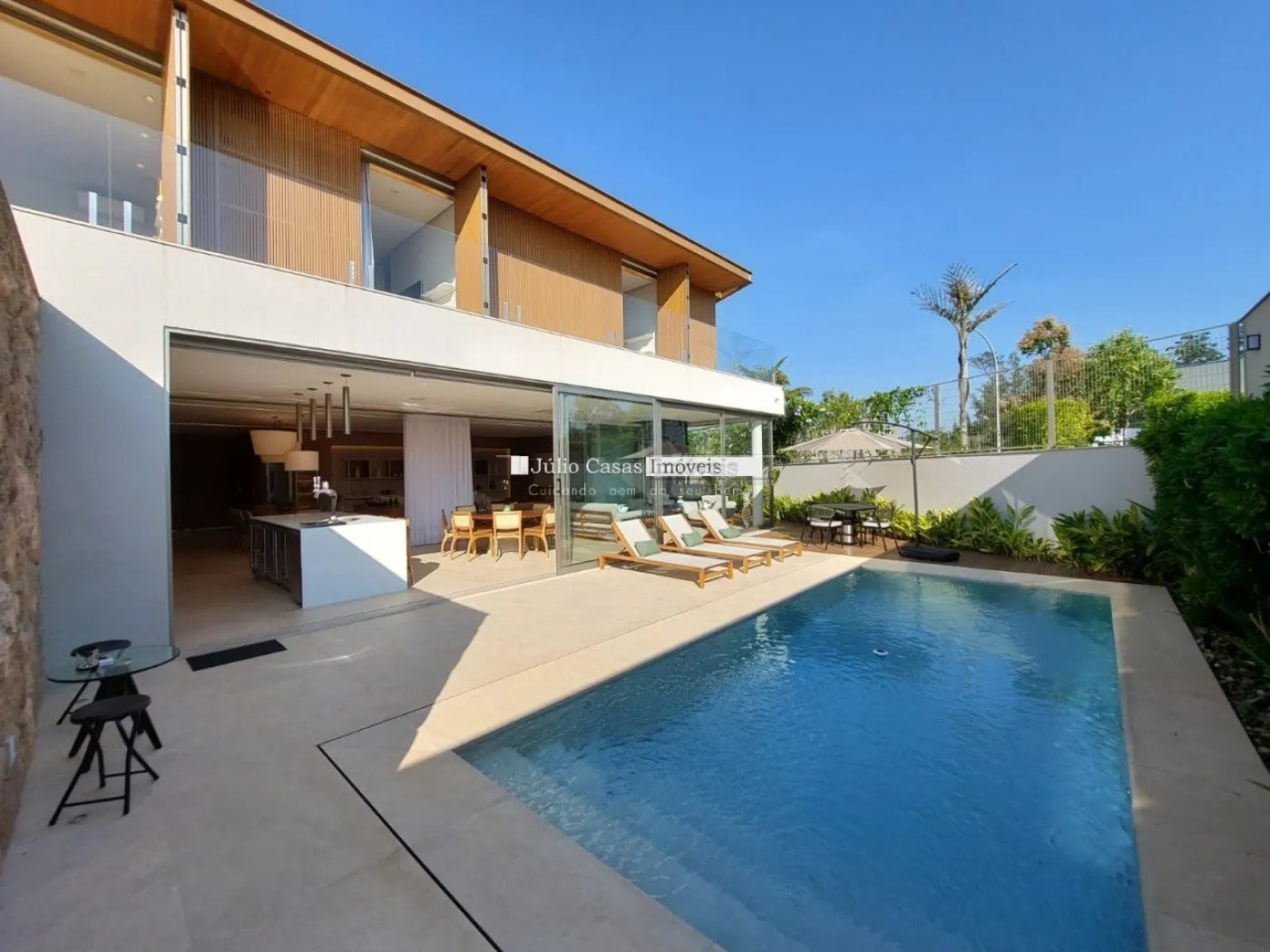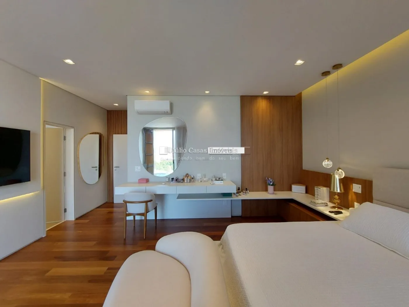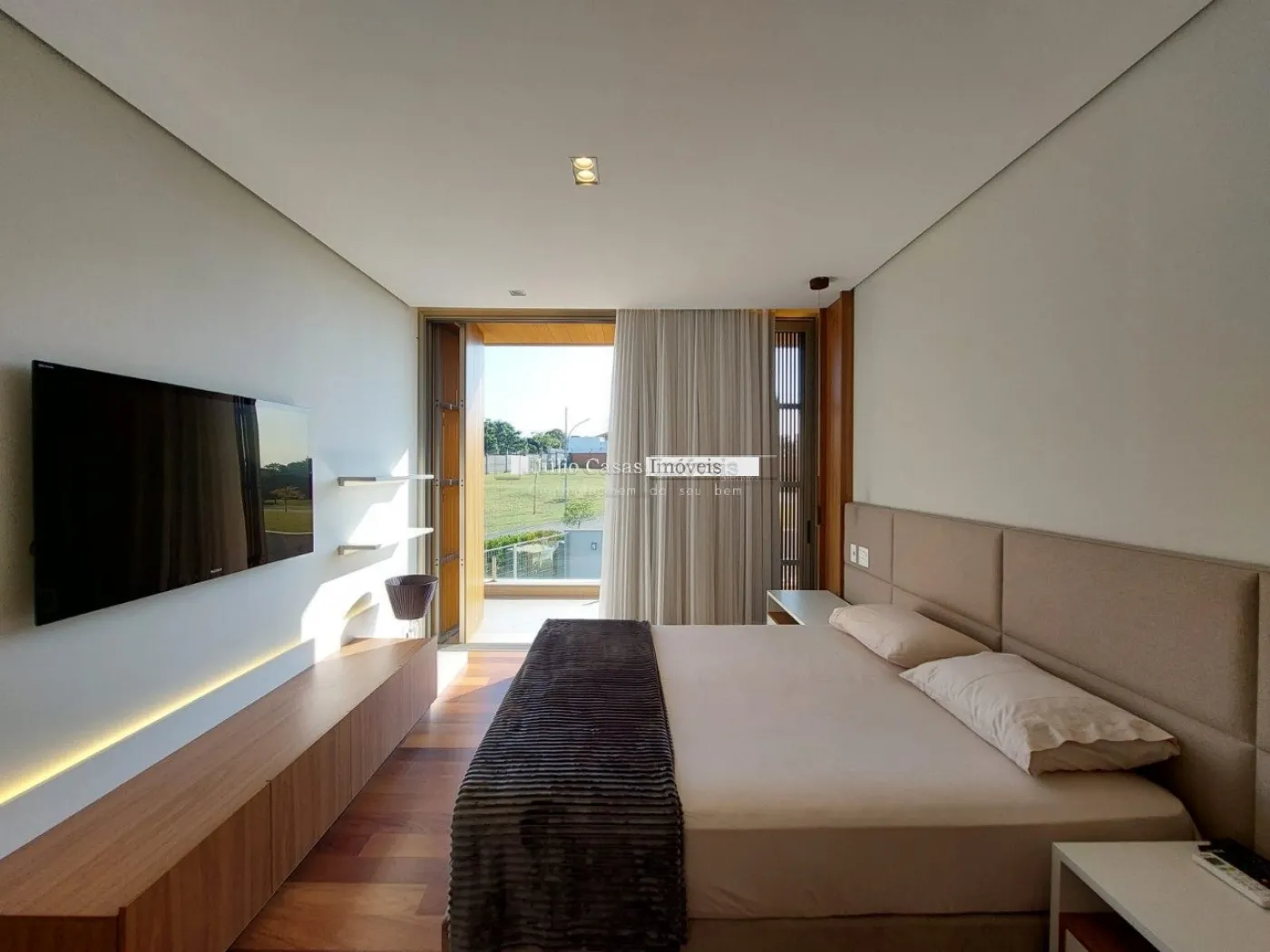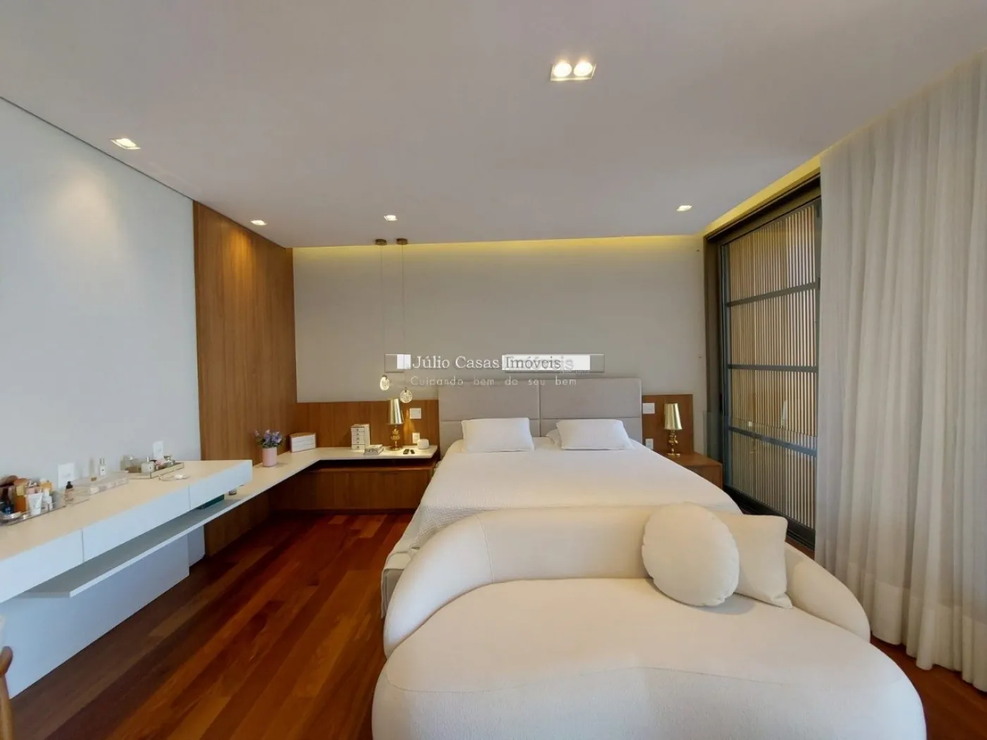 chopeira retrátil no teto, lareira ecológica, ar condicionado split Casset e cortinas automatizadas.