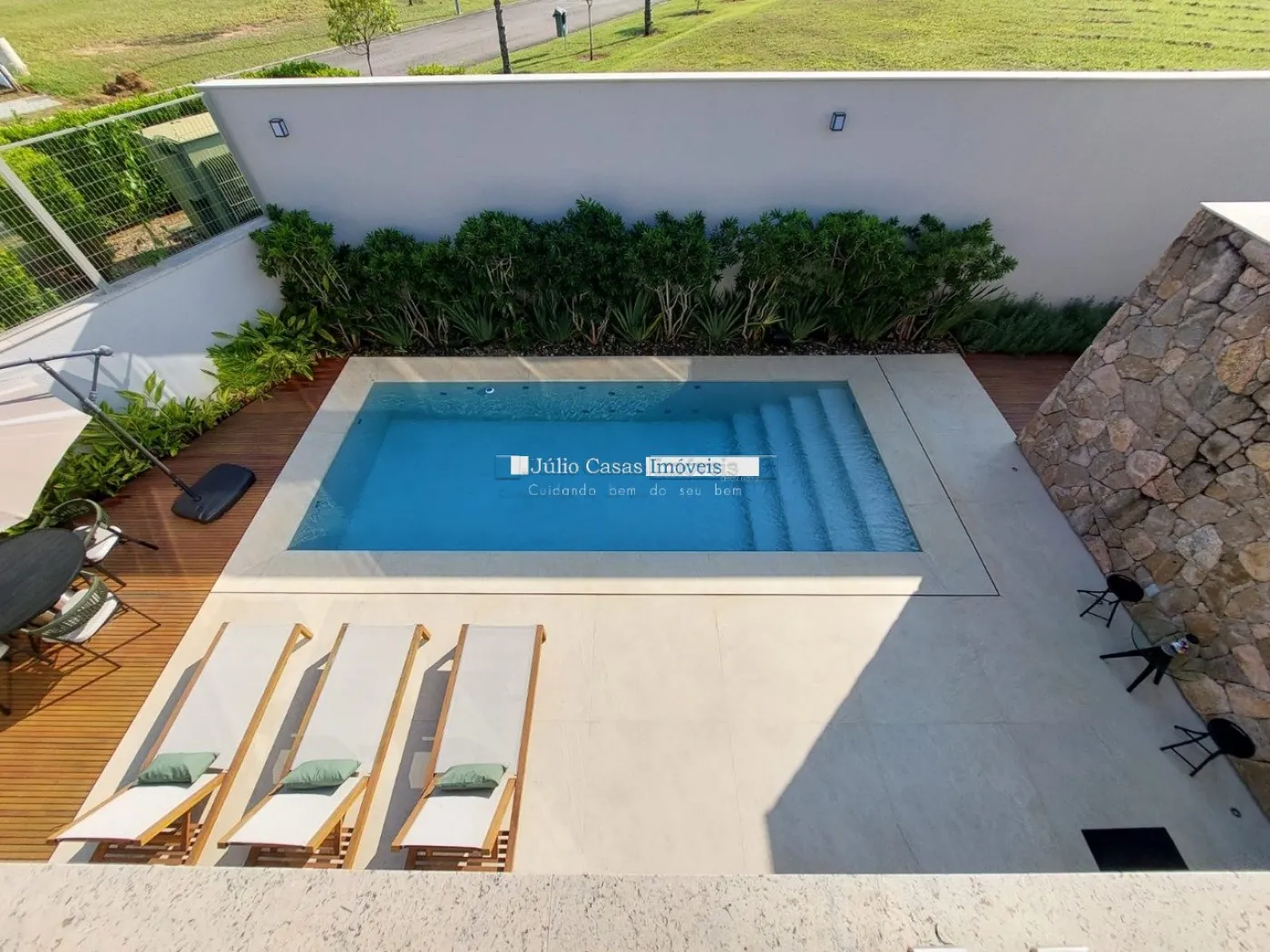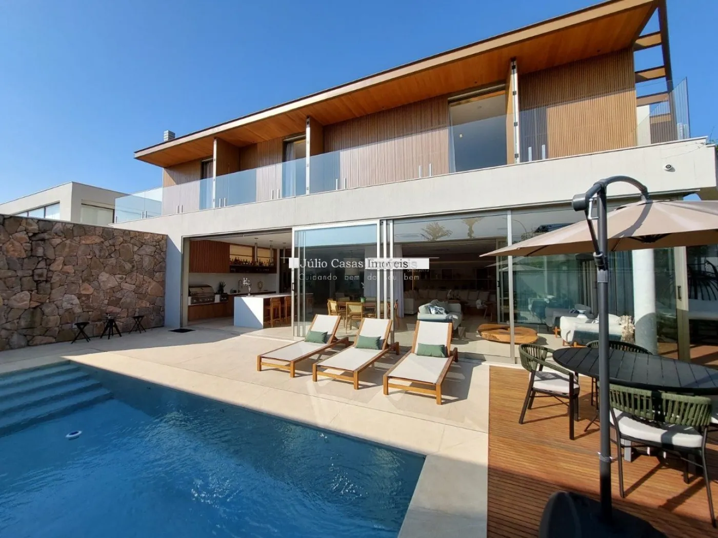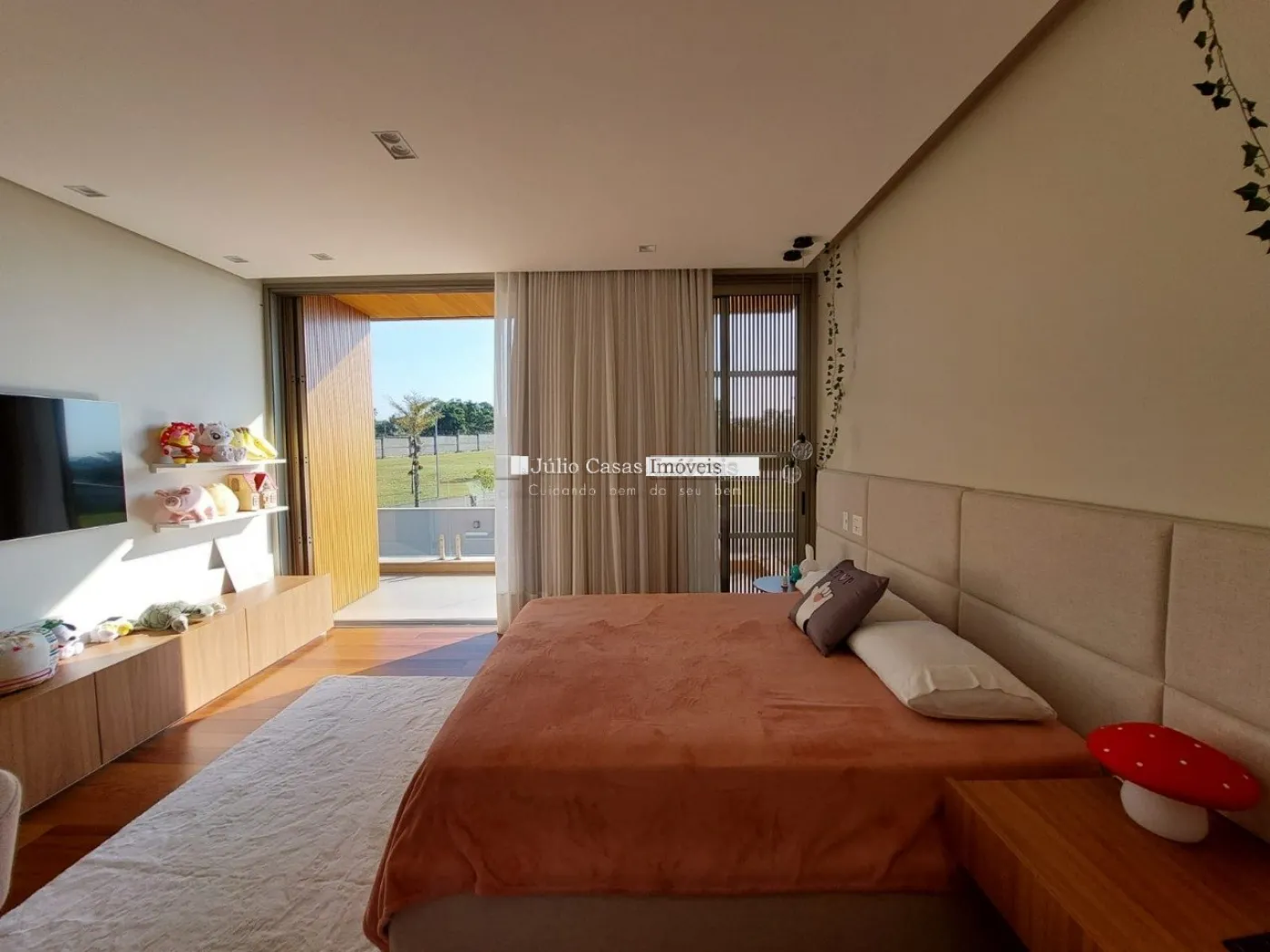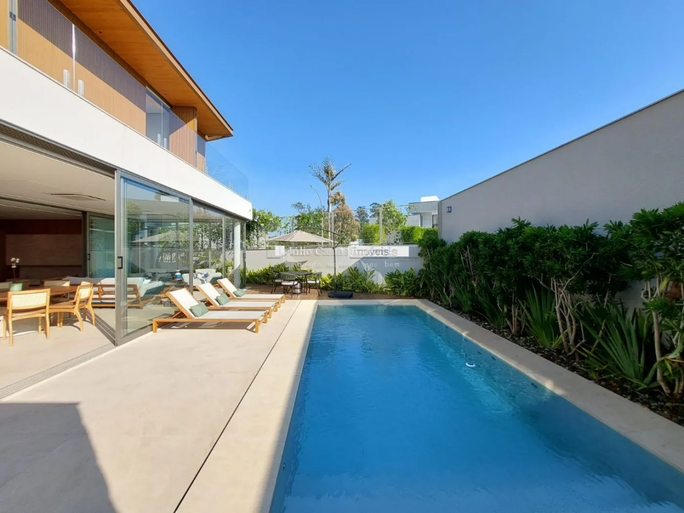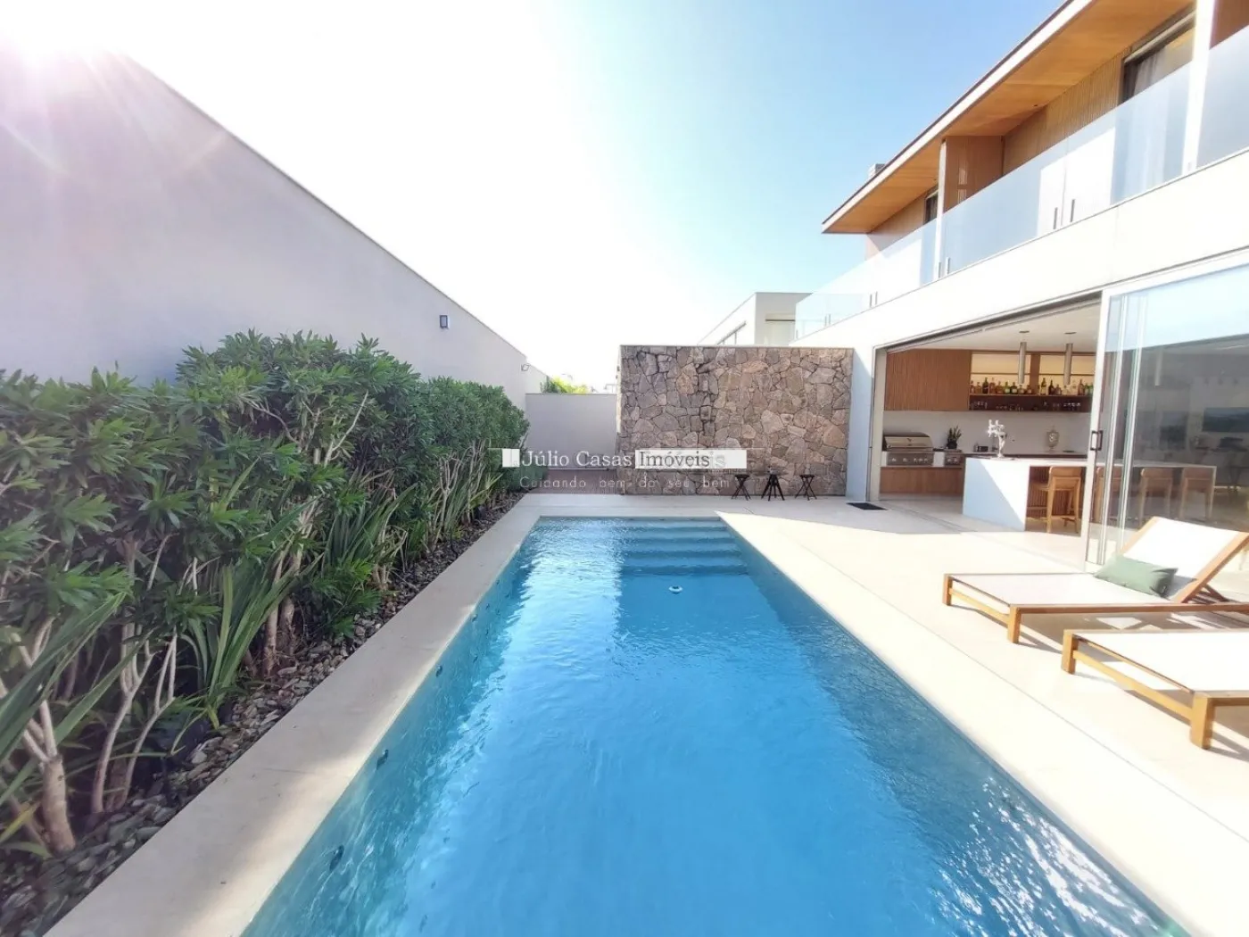 chopeira retrátil no teto, lareira ecológica, ar condicionado split Casset e cortinas automatizadas.