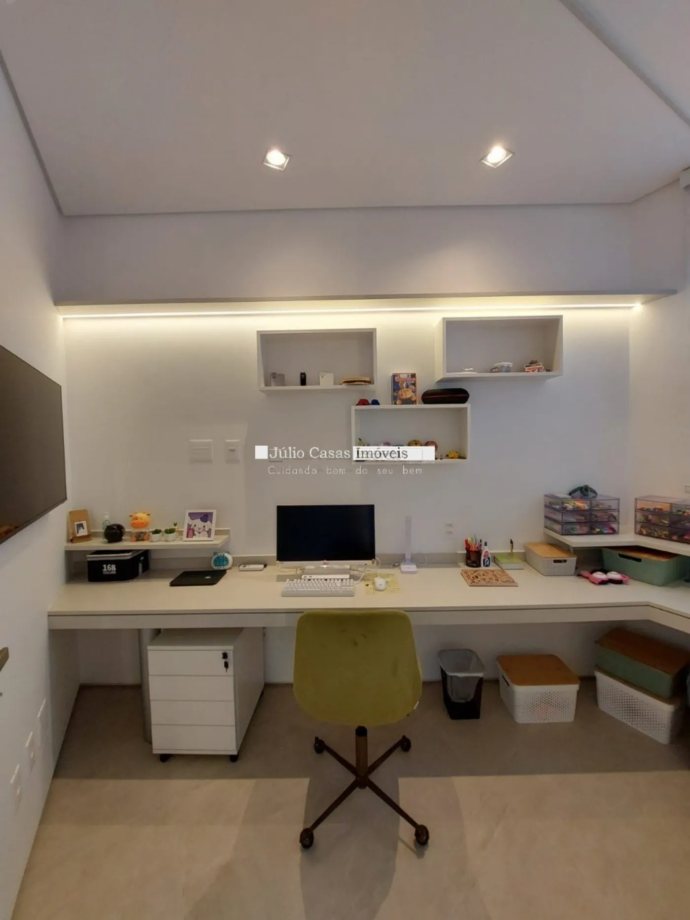 Escritório com cortinas automatizadas