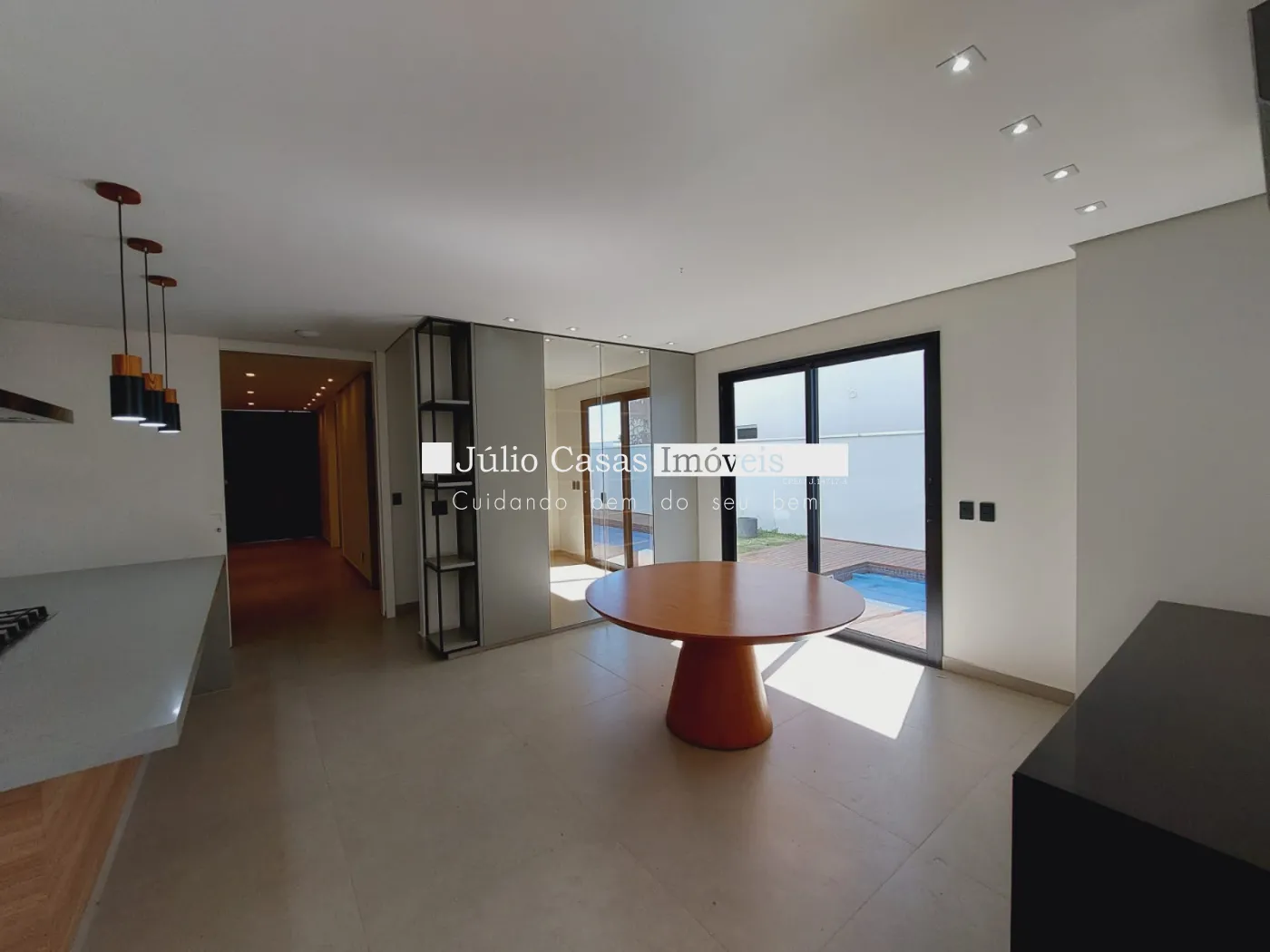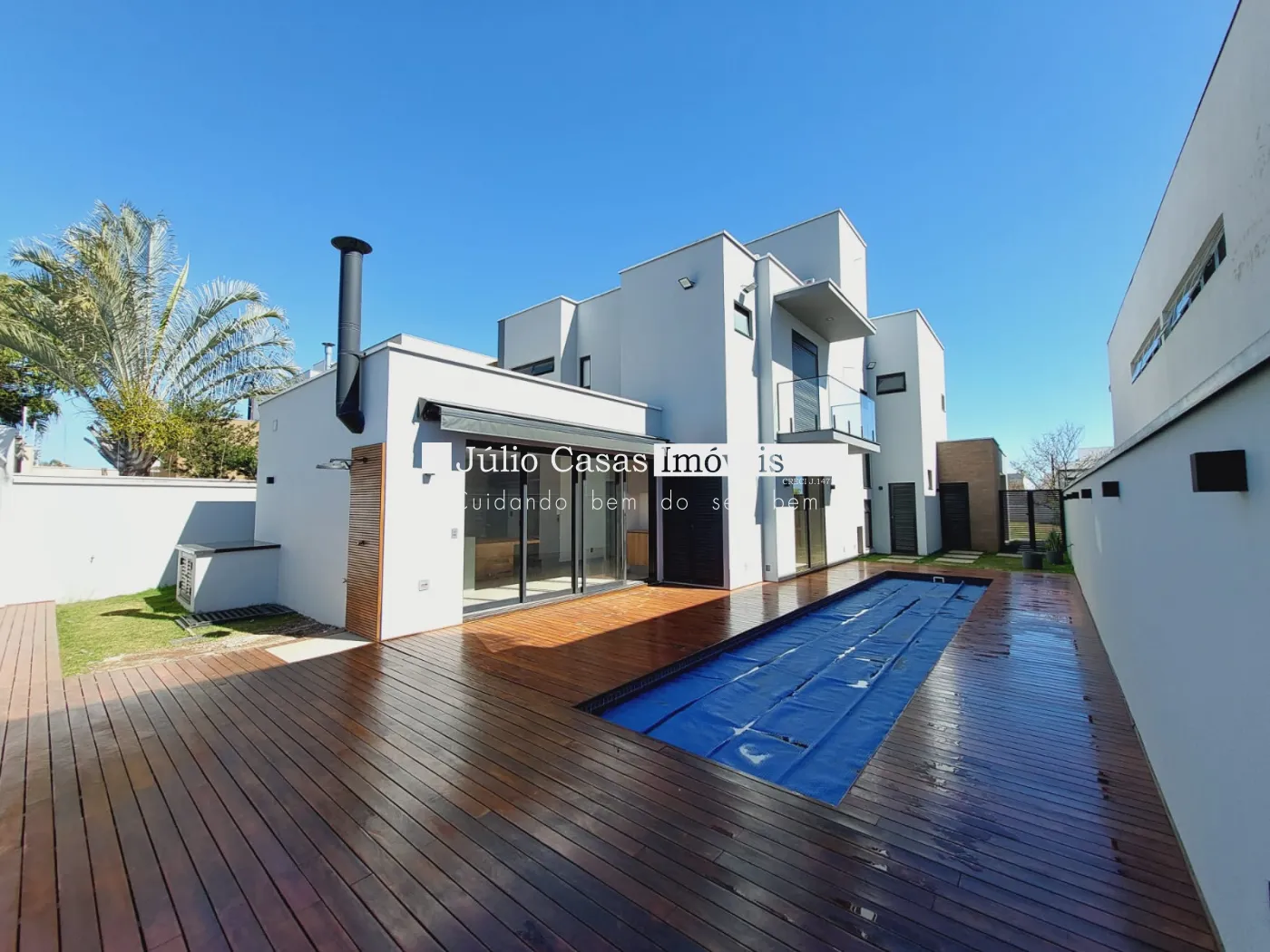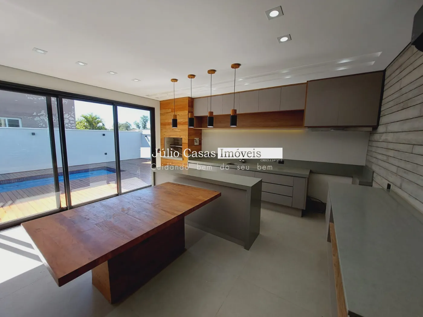 Linda casa com sala de estar ampla, integrada com sala de jantar e área gourmet, ambientes modulados, piso em porcelanato, lavabo, cozinha modulada com área de serviço com armários, área gourmet totalmente integrada com a piscina, quintal e wc para apoio, sala de tv, escritório, 3 suítes amplas moduladas , tudo em acabamento de primeira, todas com ar condicionados,, entrada de serviço independente, garagem para 6 veículos, sendo 3 cobertas